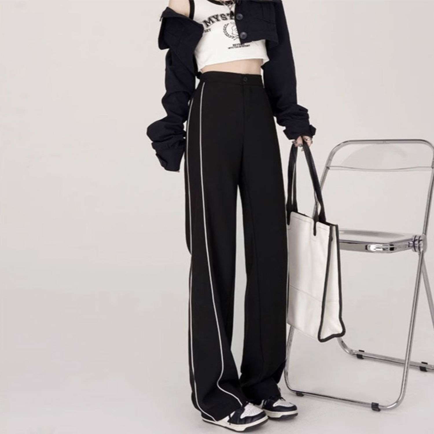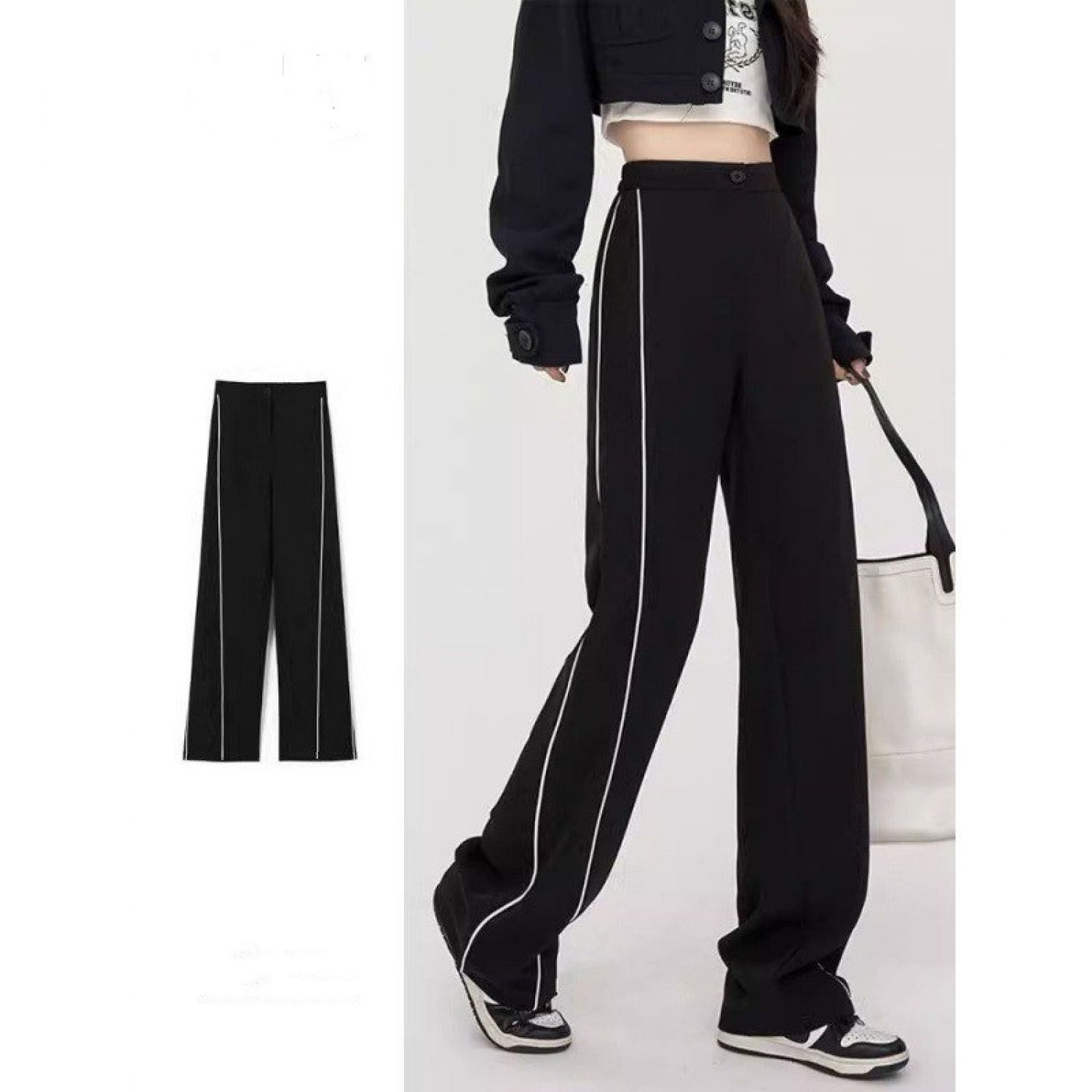 Women's Fashion Loose High Waist Straight Casual Sports Pants Black S