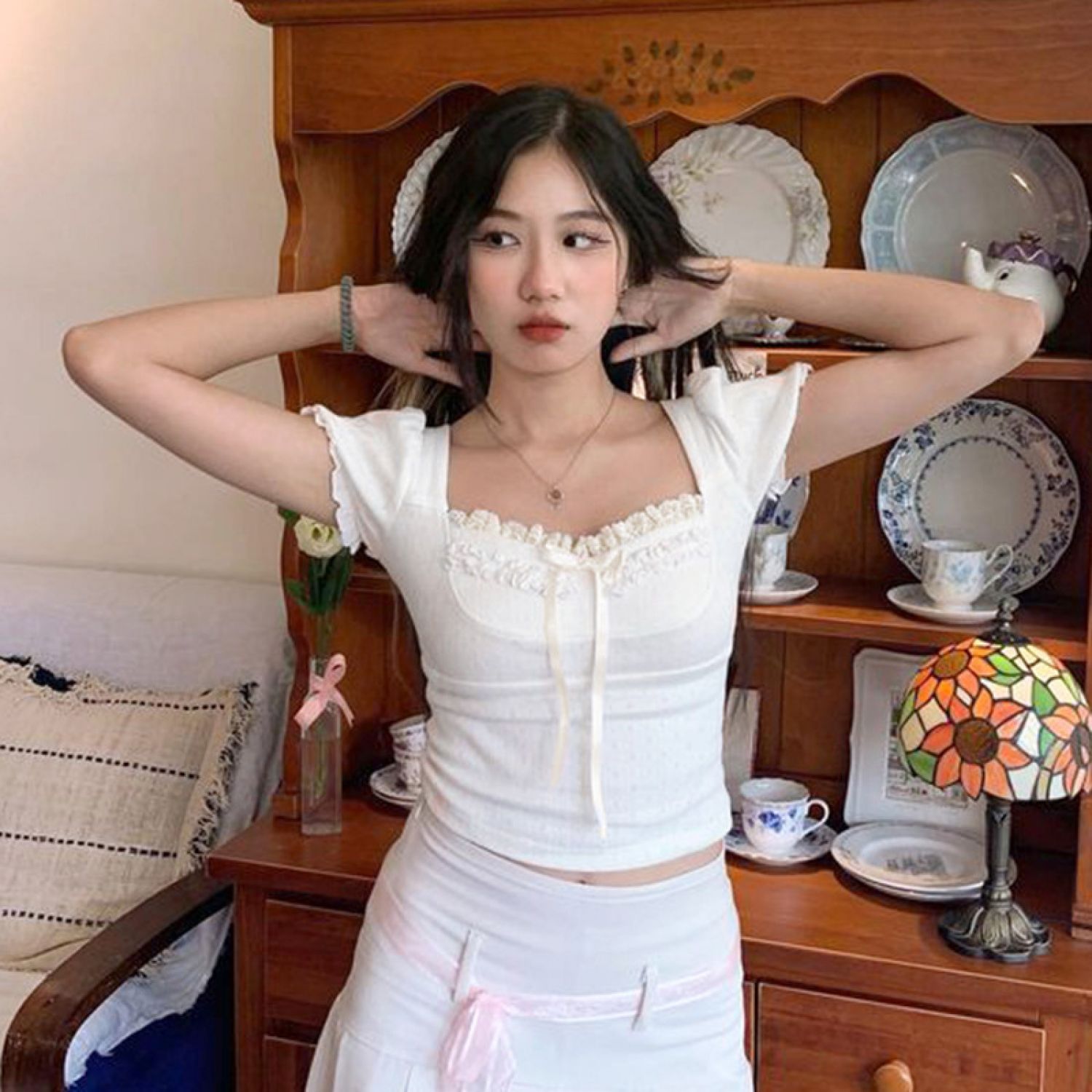 Popular elements: pleated lace slit