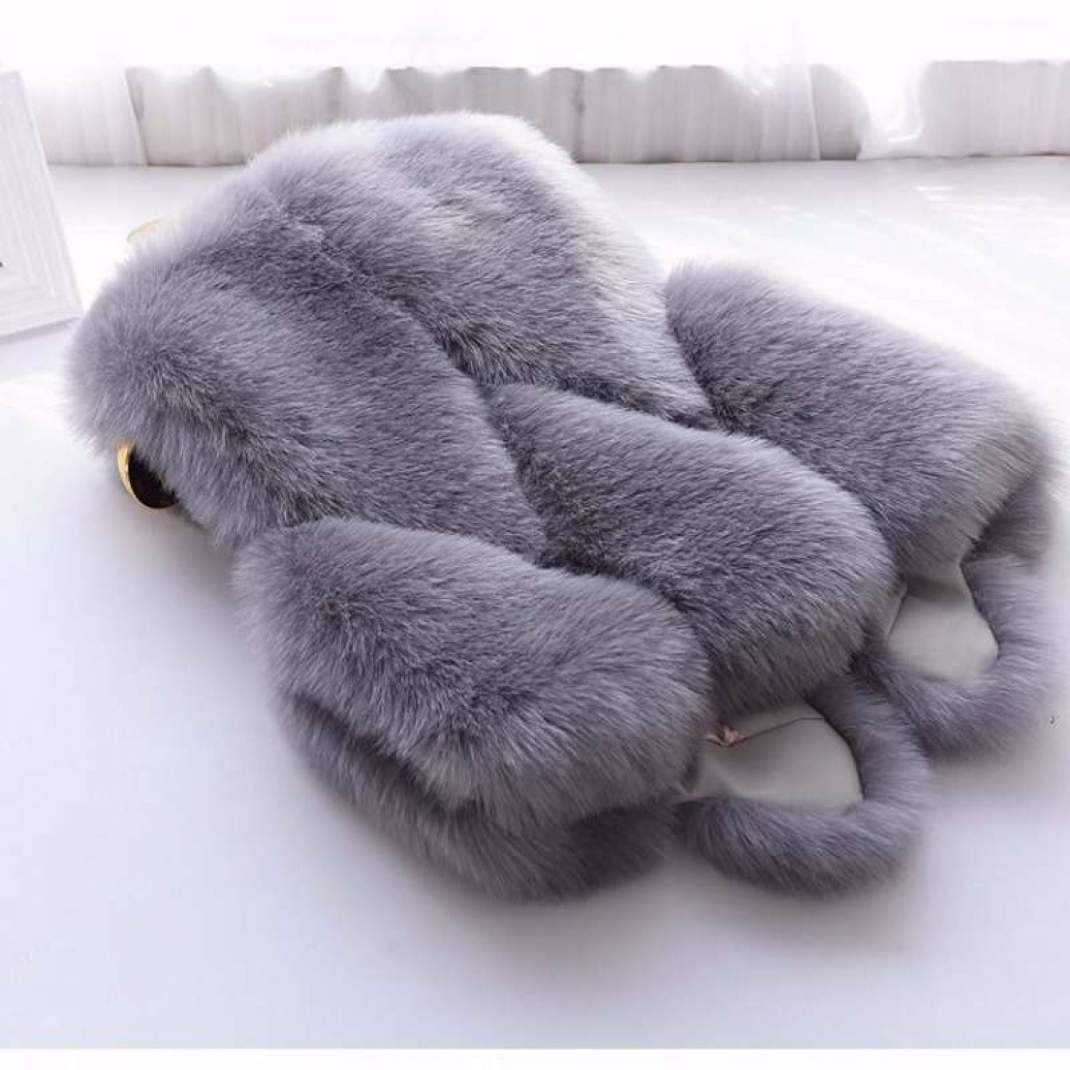 Women's Faux Fox Fur Thickening Fashion All-match Vest White S