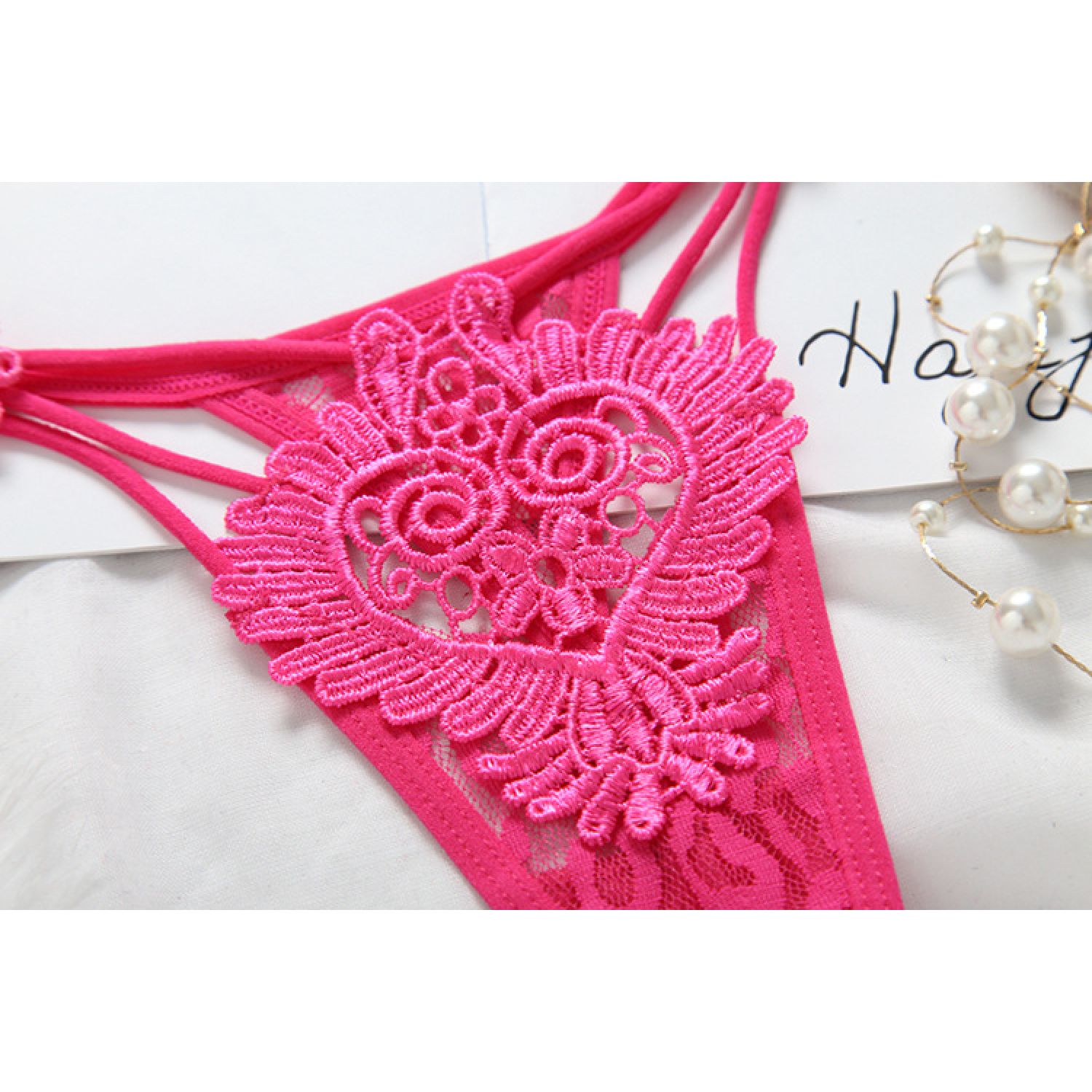 Women's Hollow Low Waist Water Soluble Flower Embroidery T-back Underwear Red Free Size