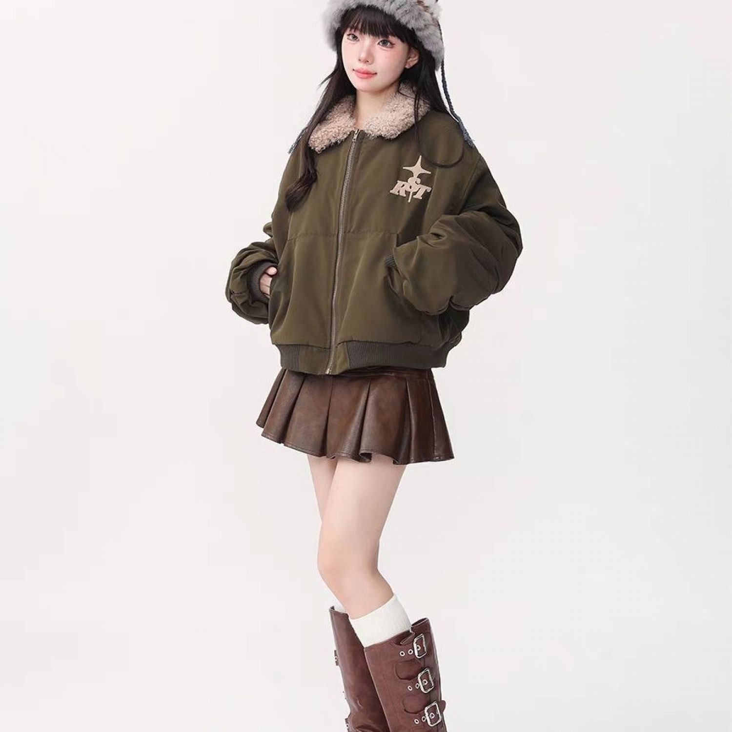 With fur collar: with fur collar