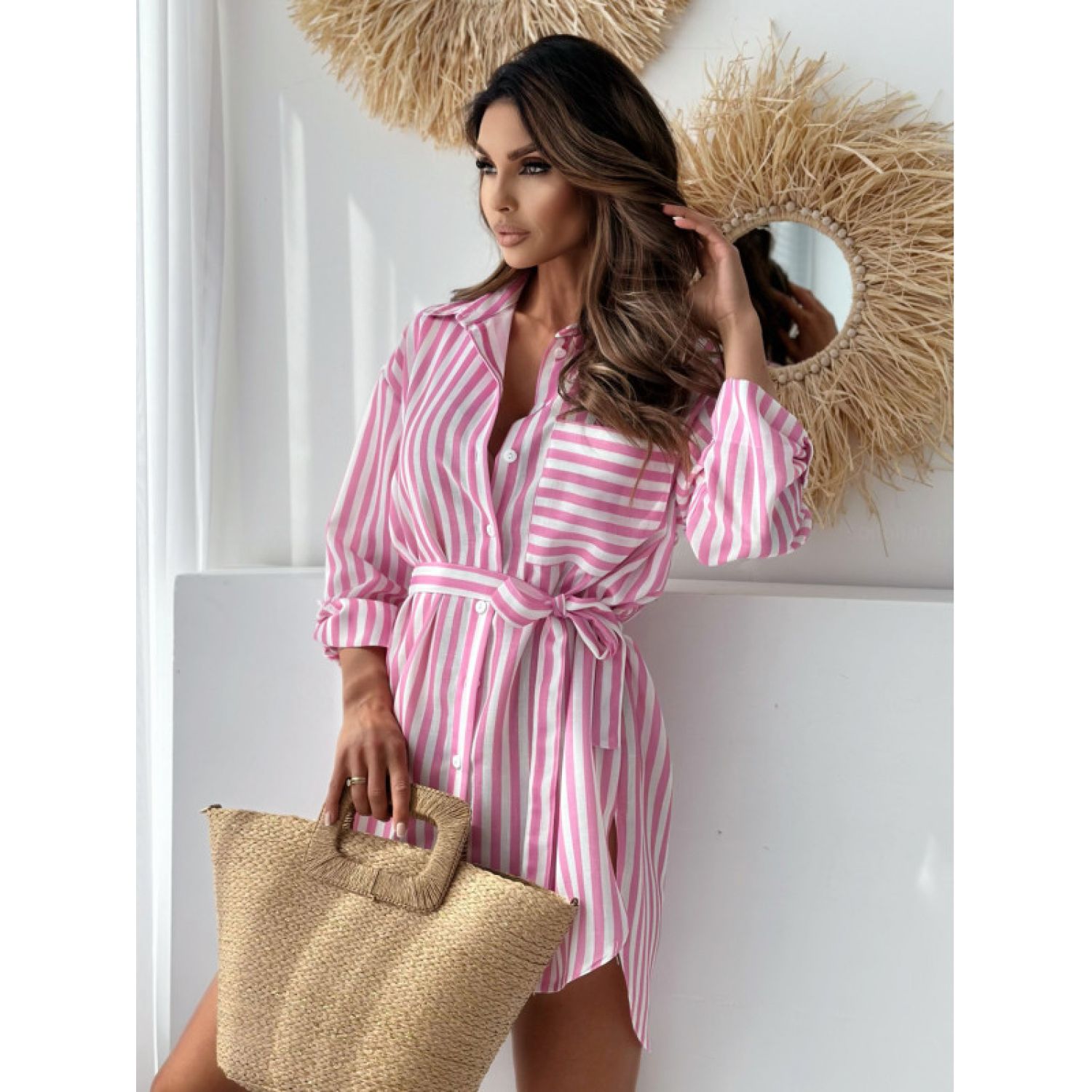 Color: khaki, blue stripes, pink stripes