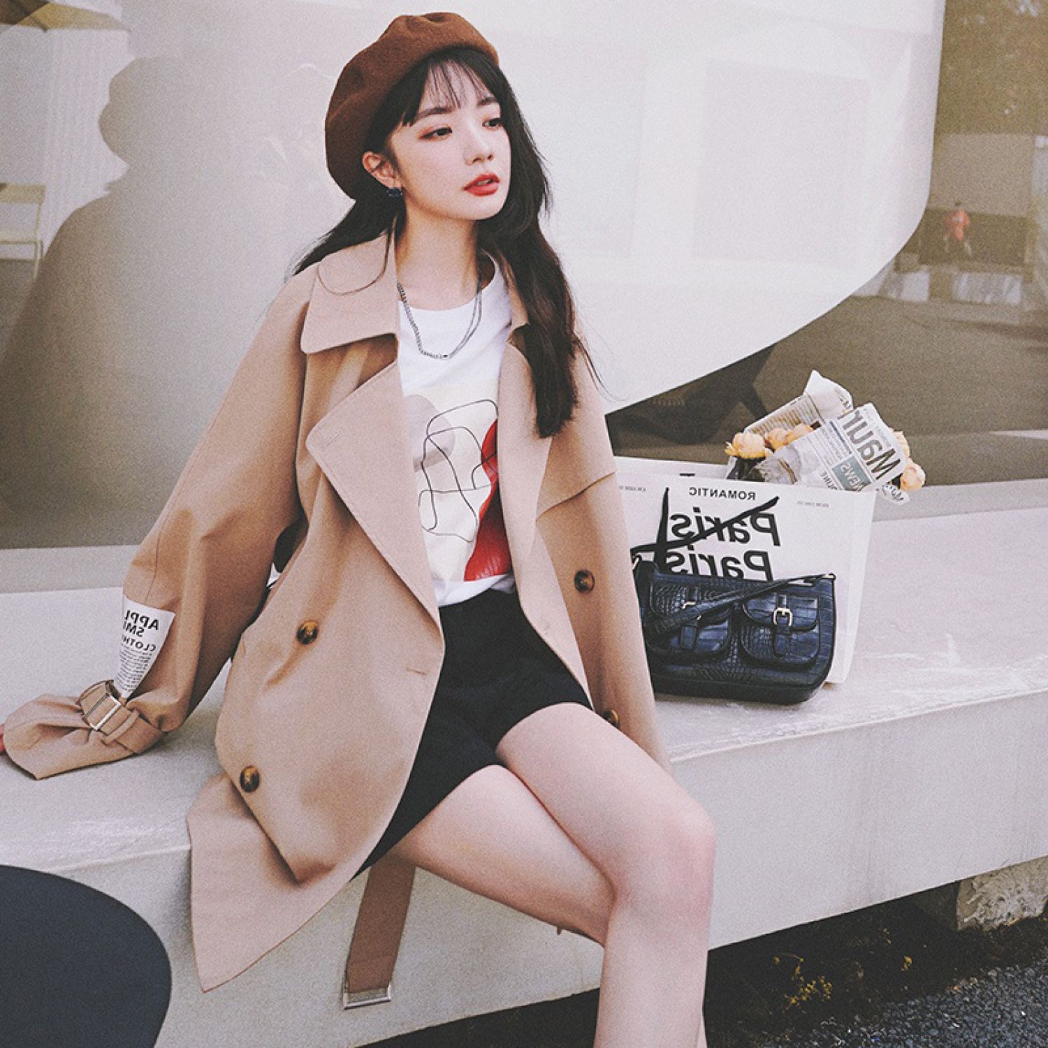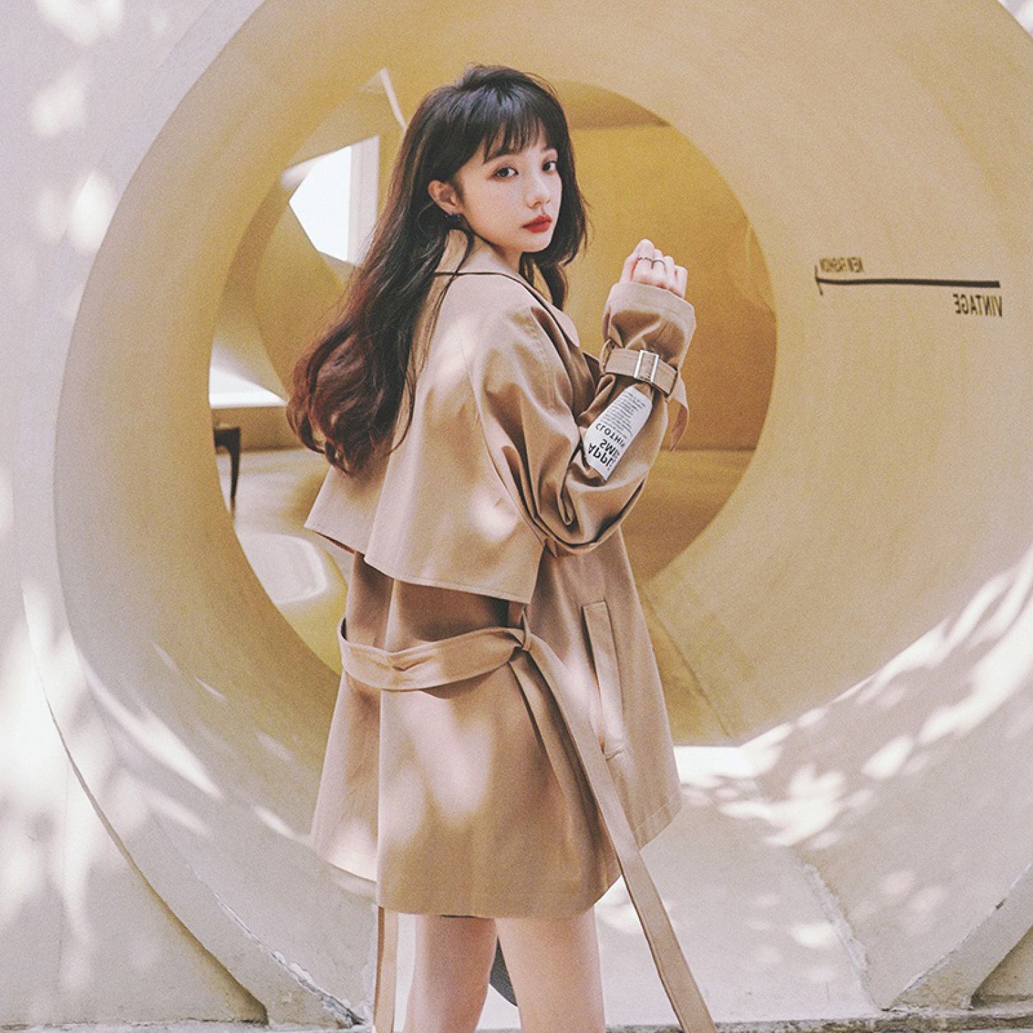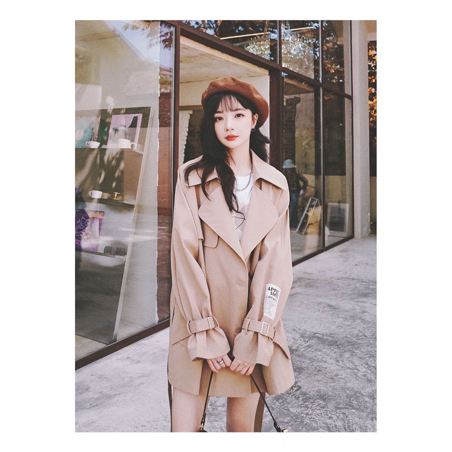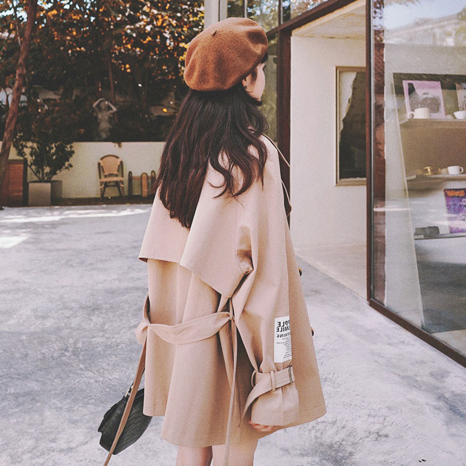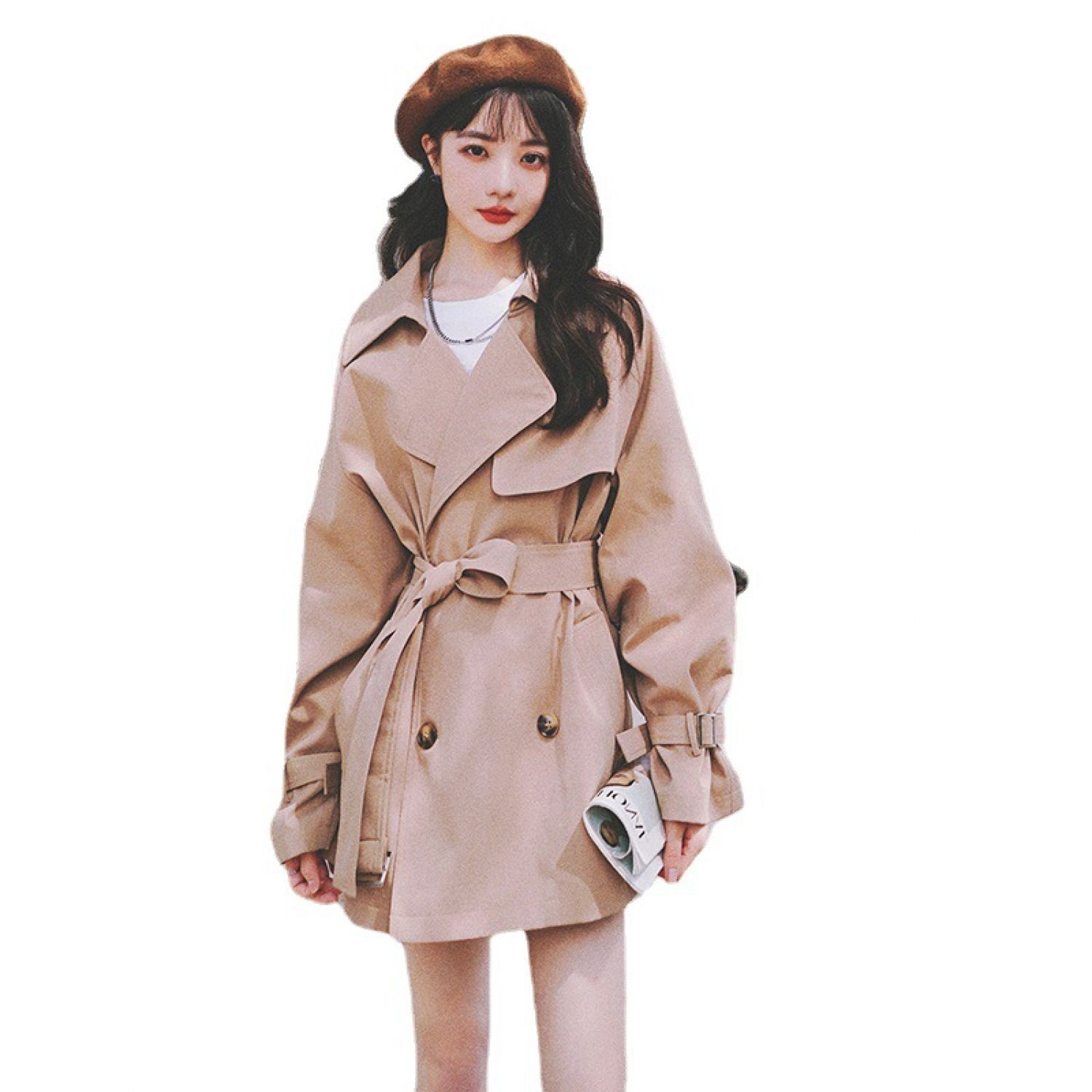 Women's Loose Windbreaker Jacket Khaki S