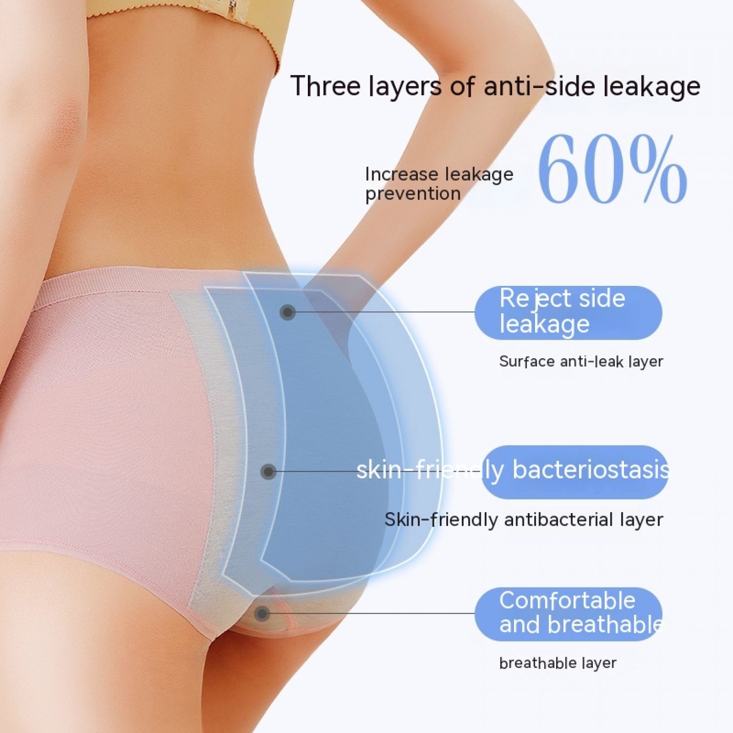 Color: light yellow menstrual panties, pink menstrual panties, coffee color, gouache menstrual panties, skin color menstrual panties, black menstrual panties