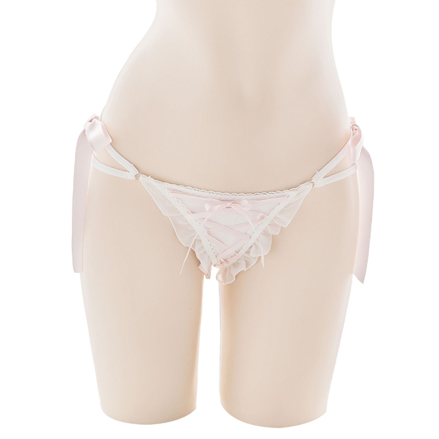 Women's Satin Ribbon Bow Cute Double Layer Thin Strap Panties White One size