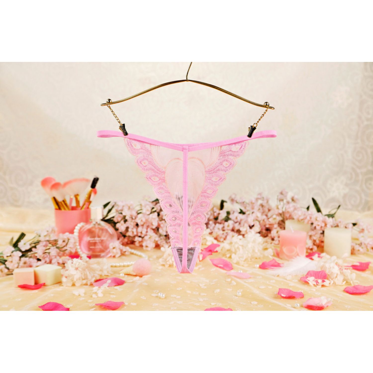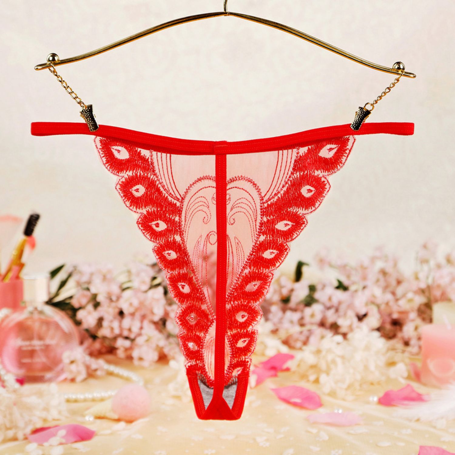 Women's Sheer Mesh Embroidered Peacock Tail Simple Briefs Black One size 1PC