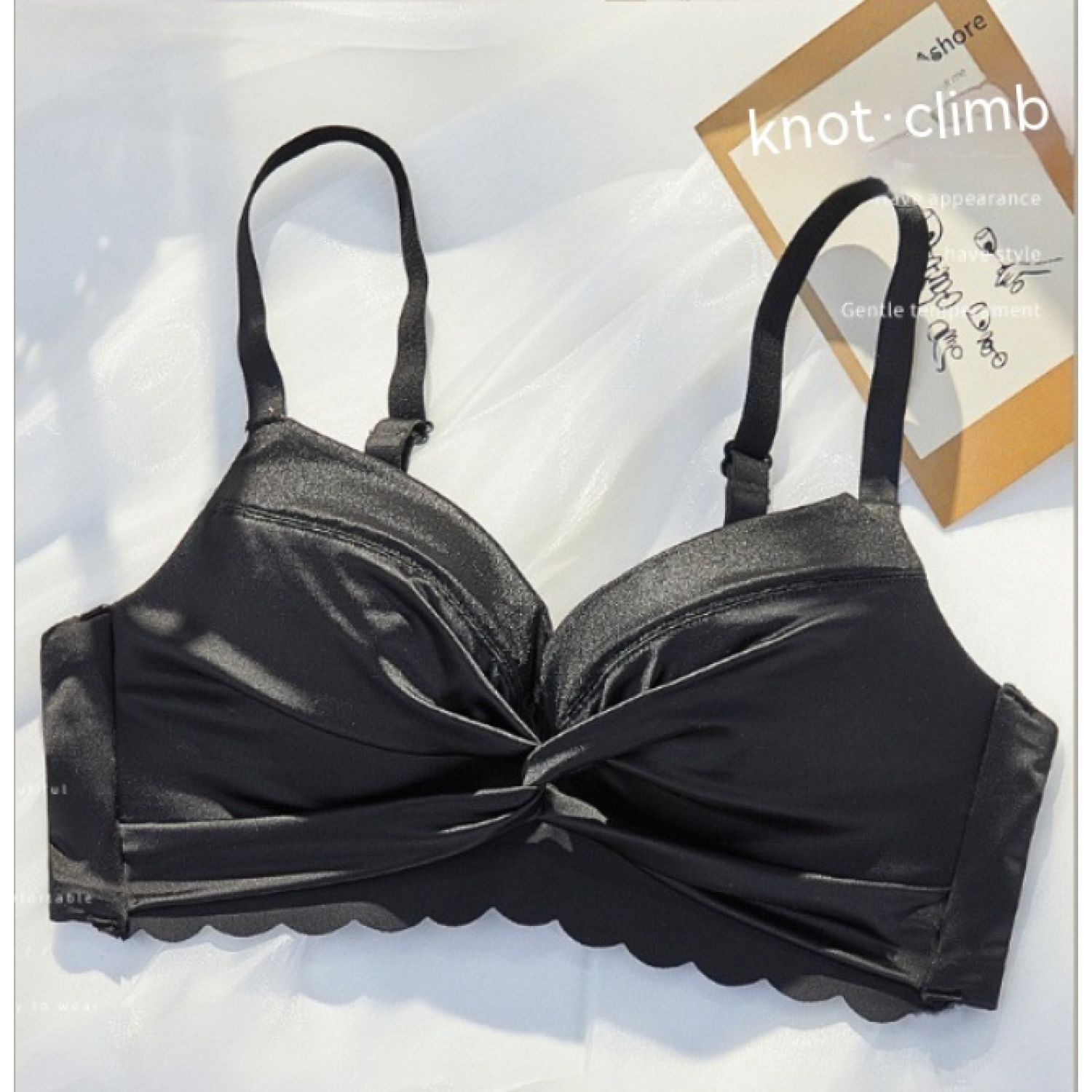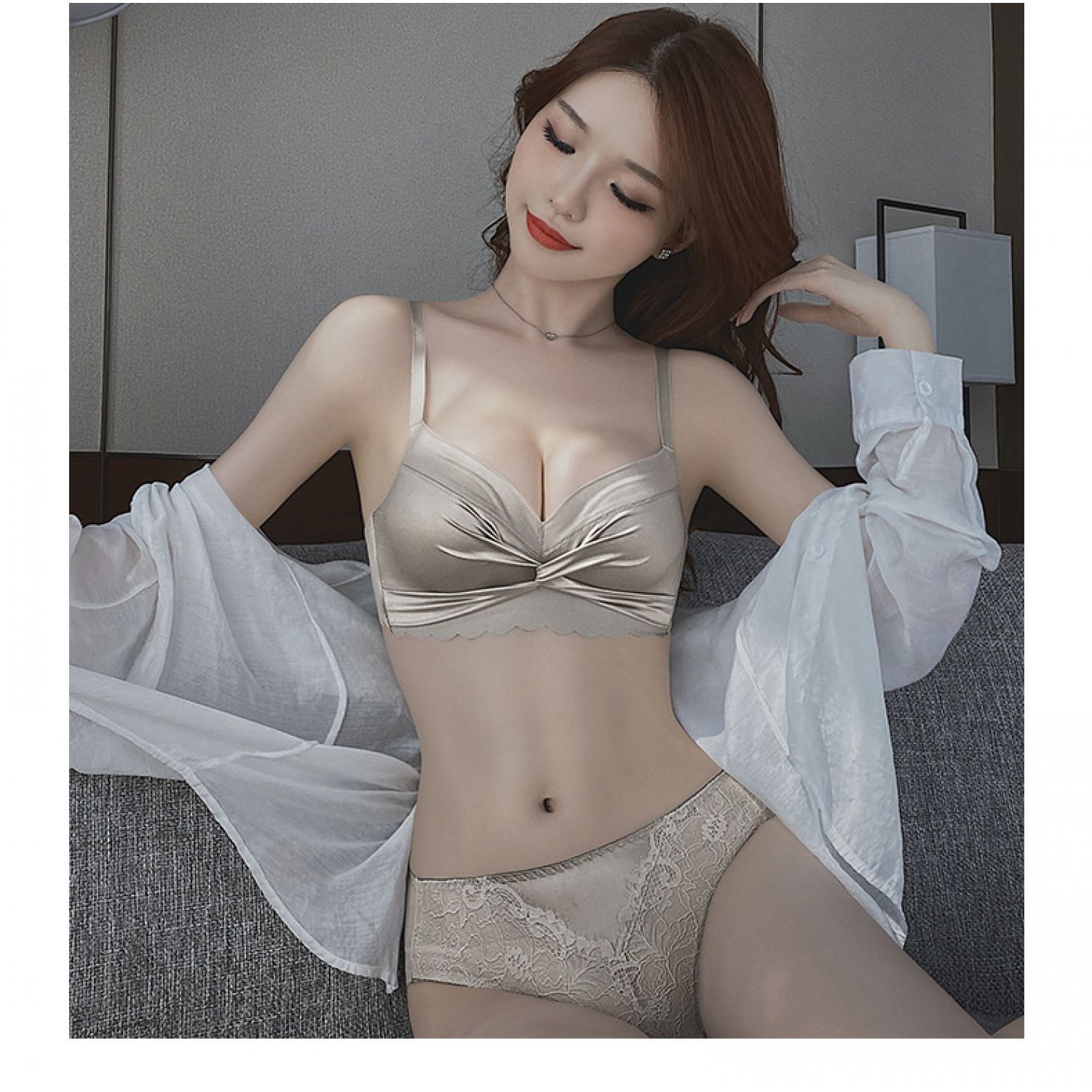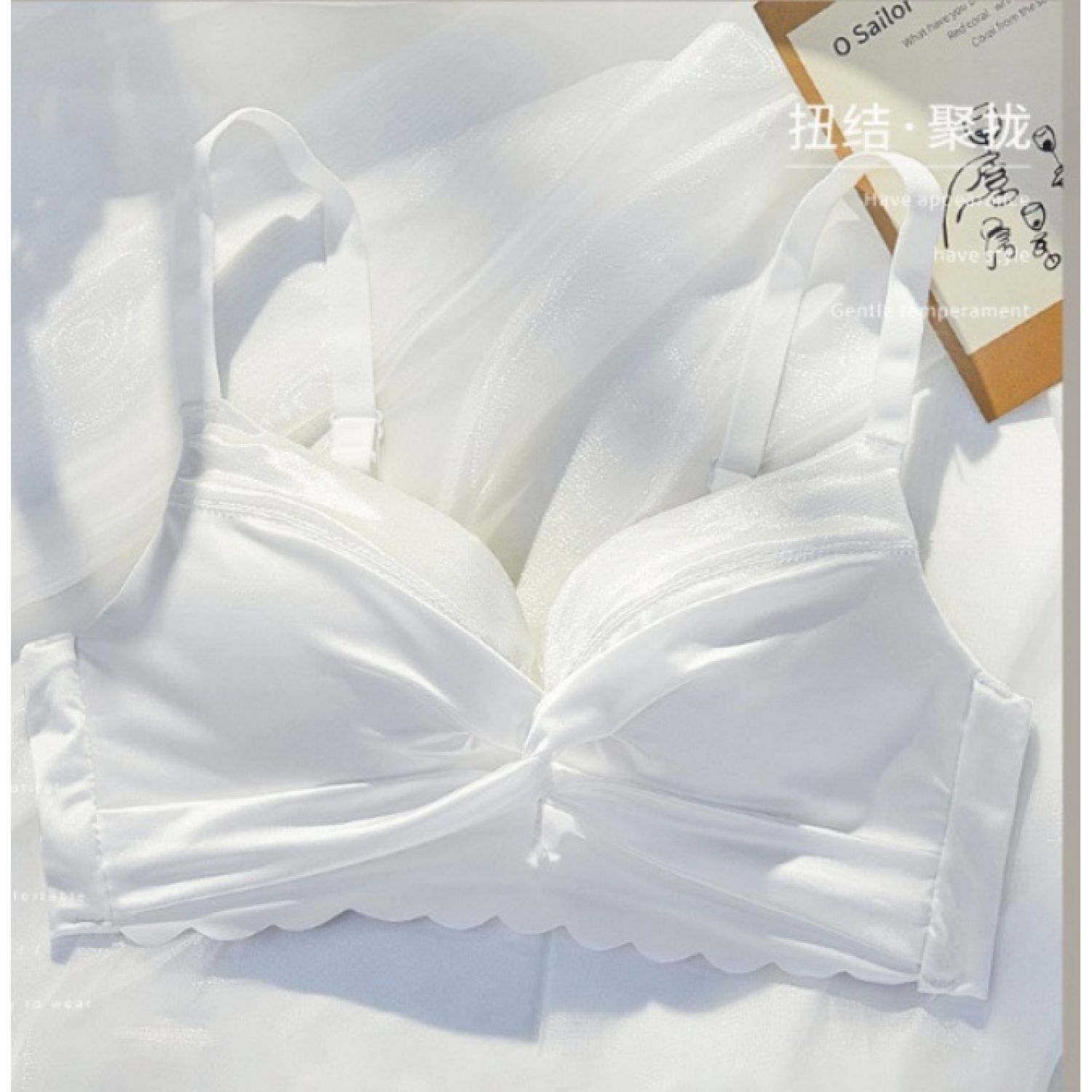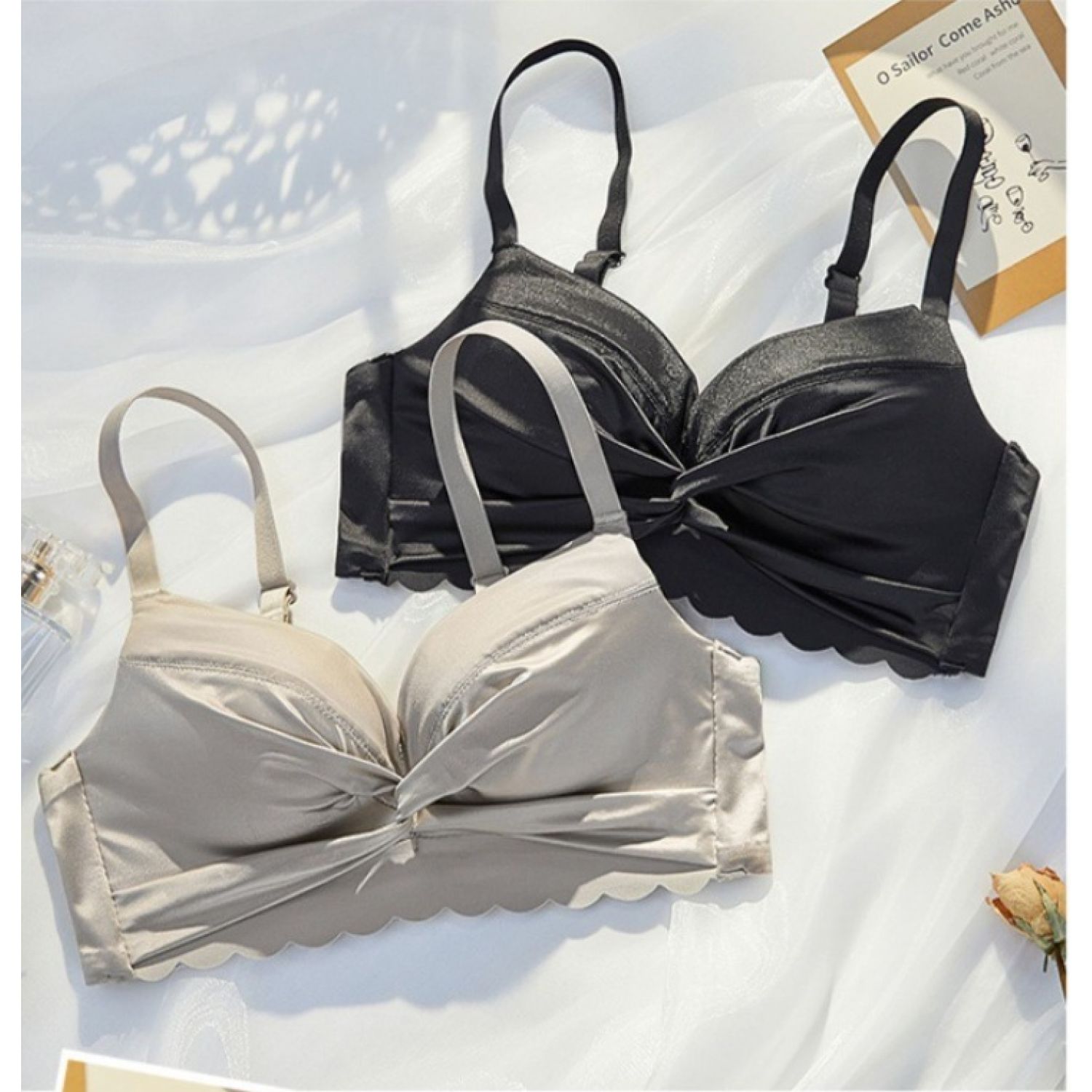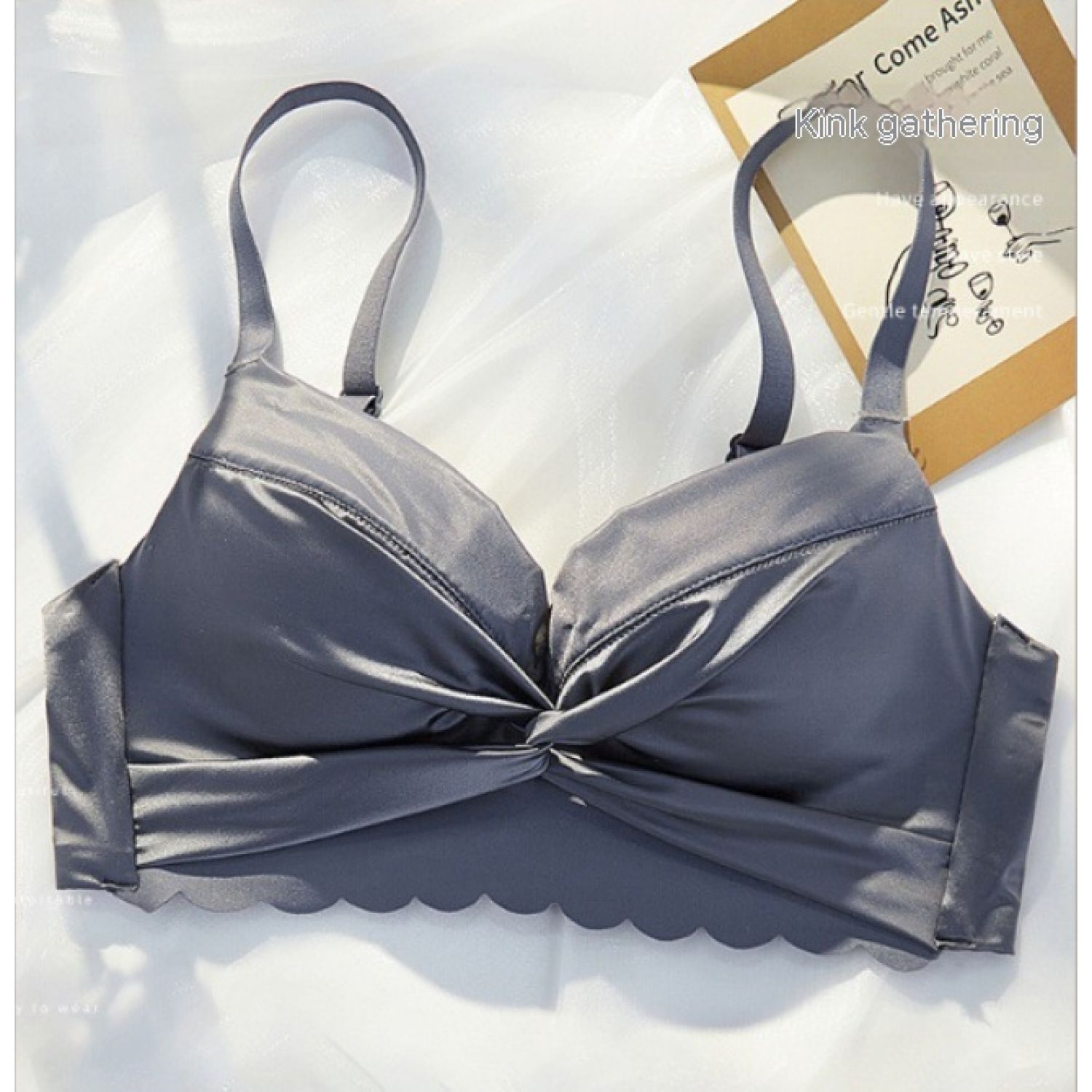 Women's Small Chest Gathered Wireless Satin Seamless Underwear Champagne Gold 32 70AB Cup
