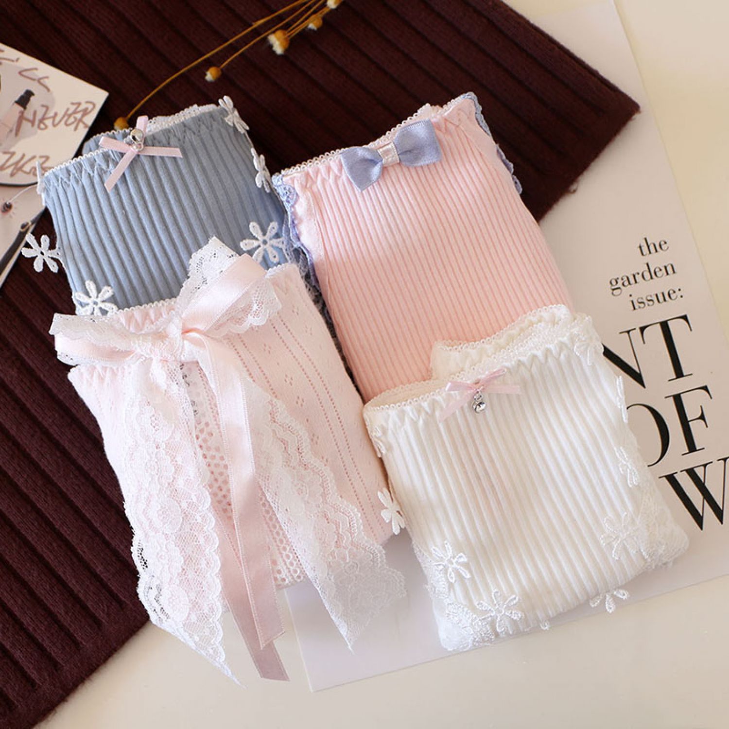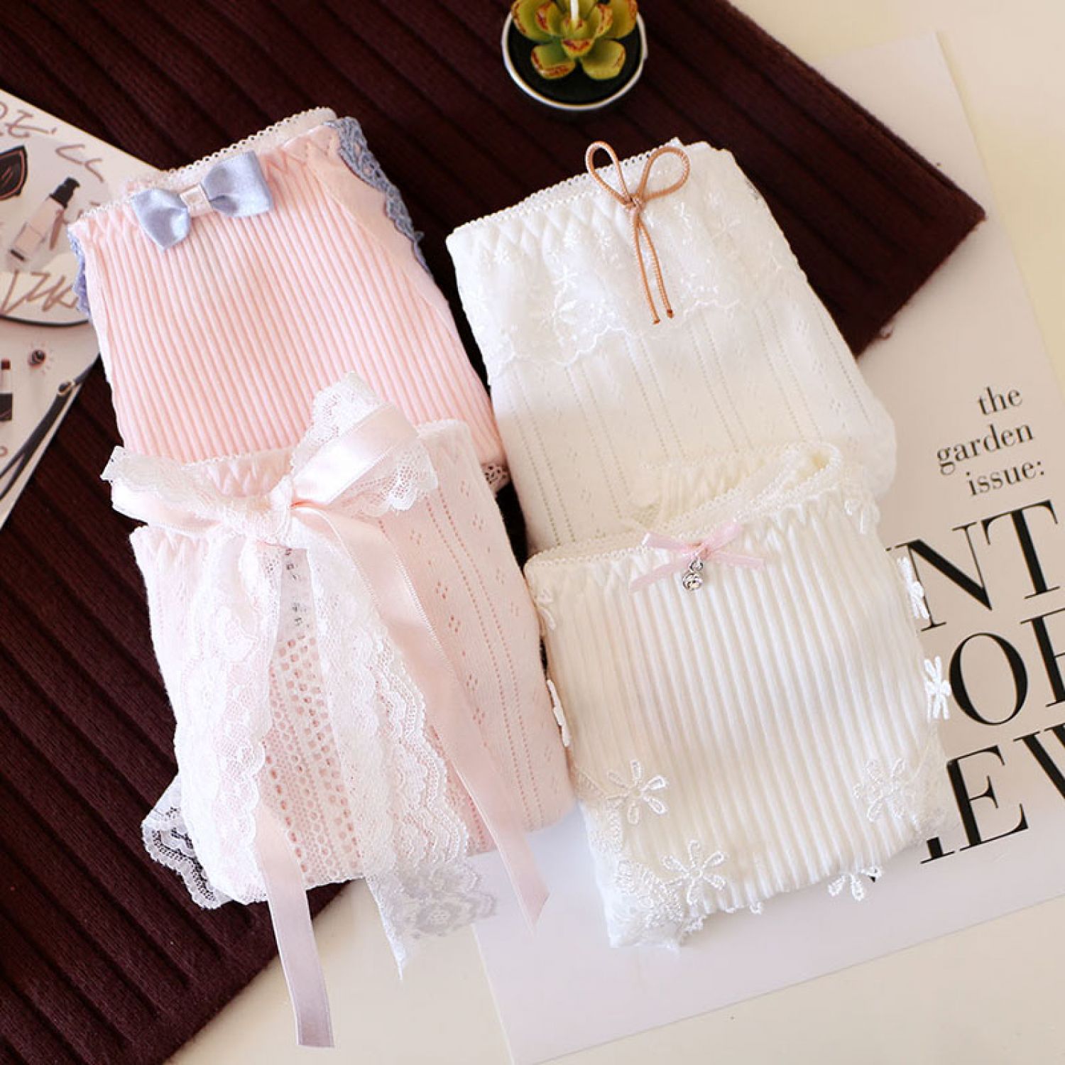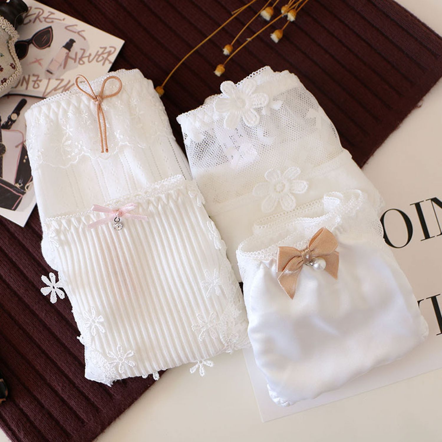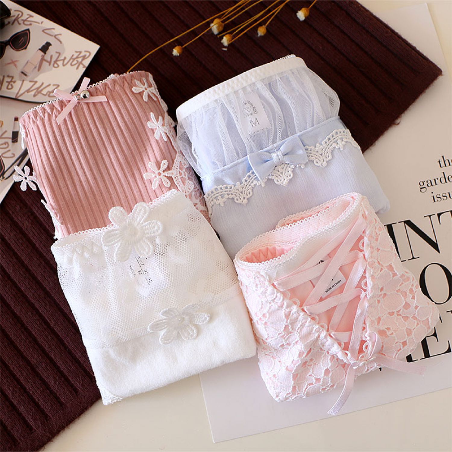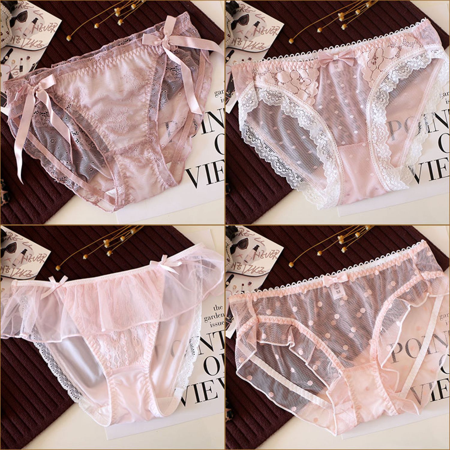Women's Solid Color Cotton Shorts Sexy Lace Cute Low Waist Transparent Hollow 1 Style M