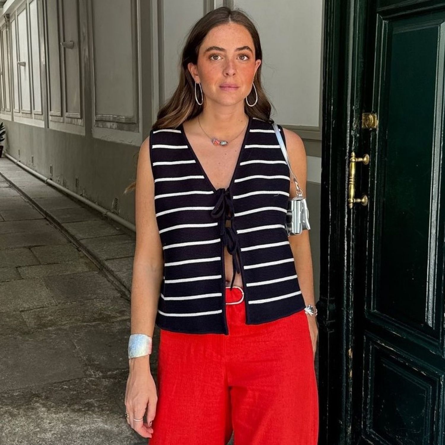 Color: white, red, black and white stripes
