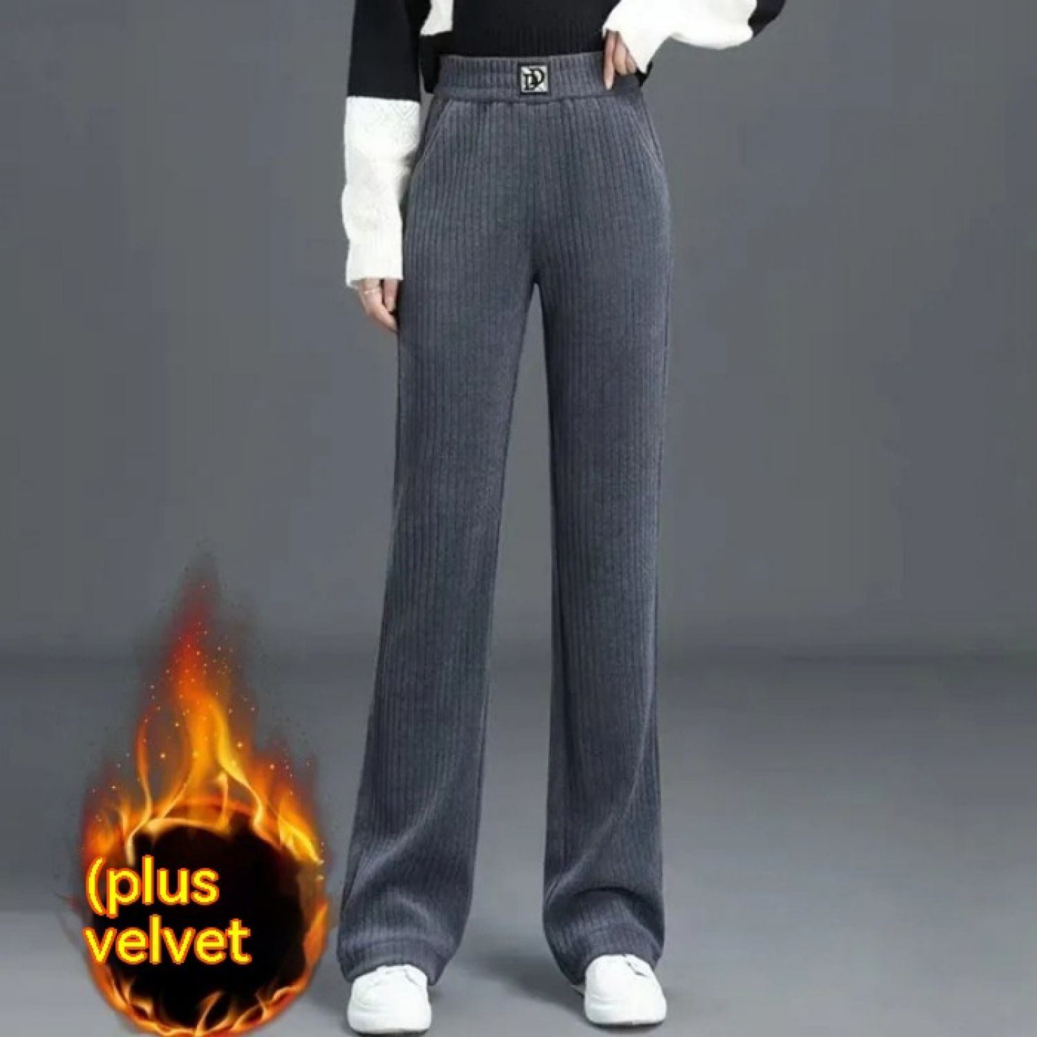 Women's Wide-leg Pants Fallwinter High Waist Drooping DD Label Black M