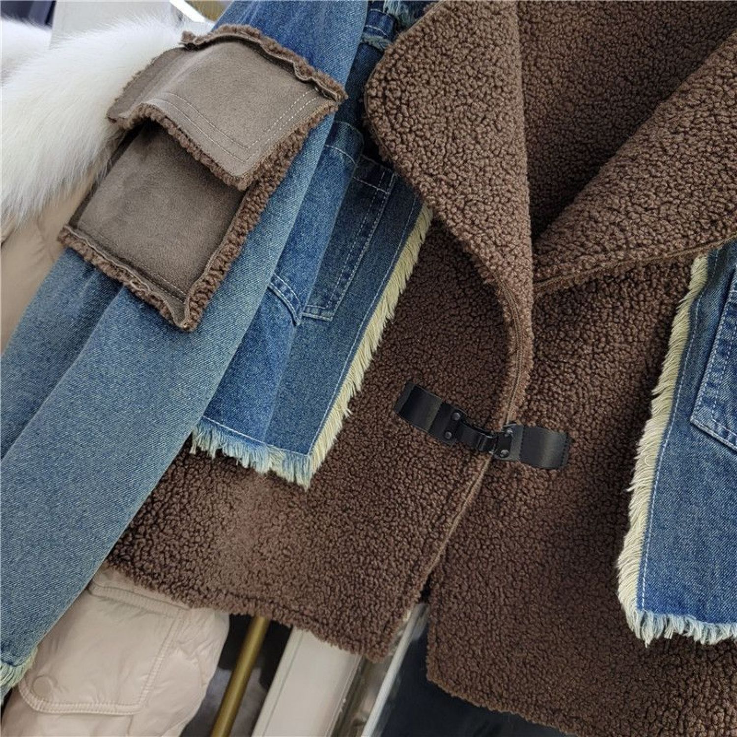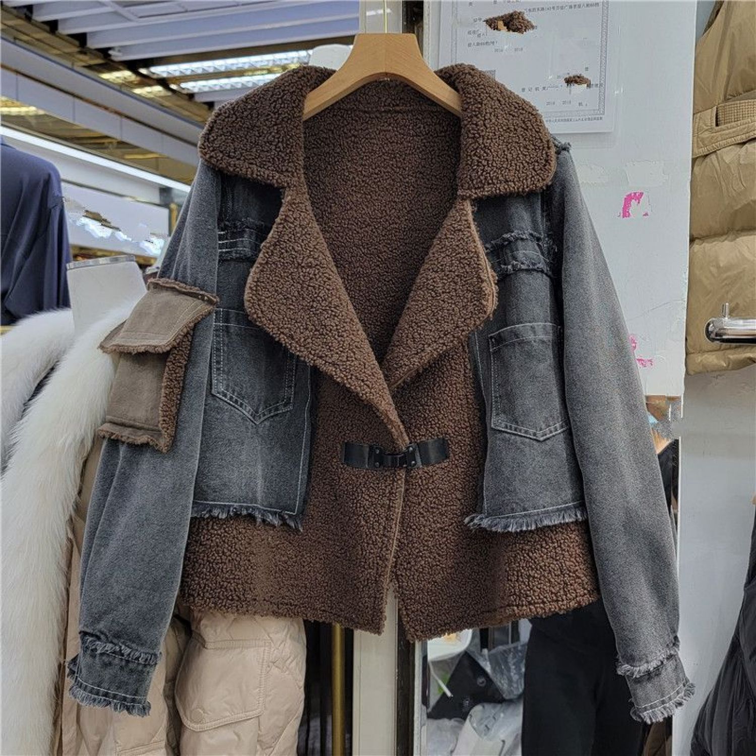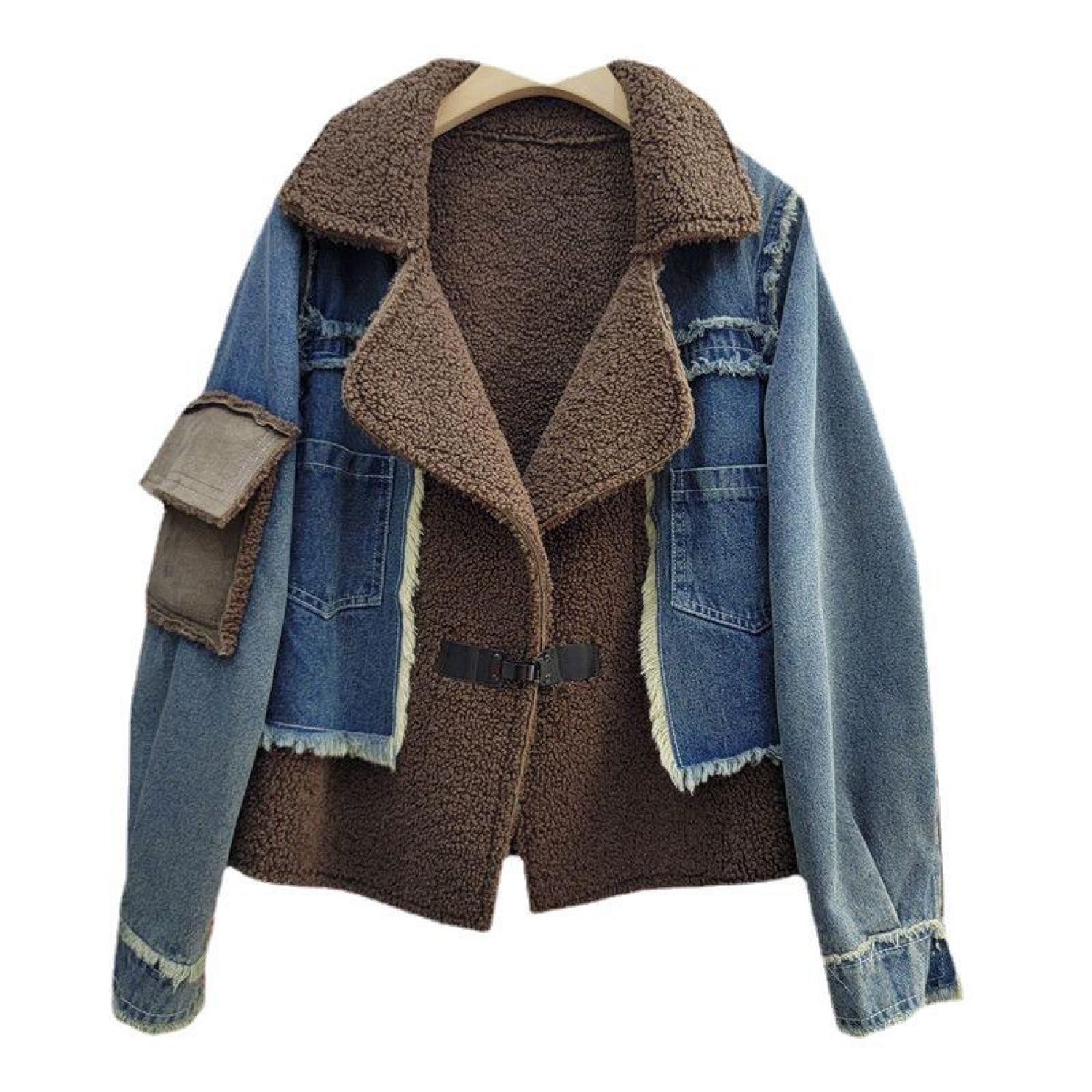 Women's Winter Design Stitching Lamb Wool Denim Coat Black And Gray S