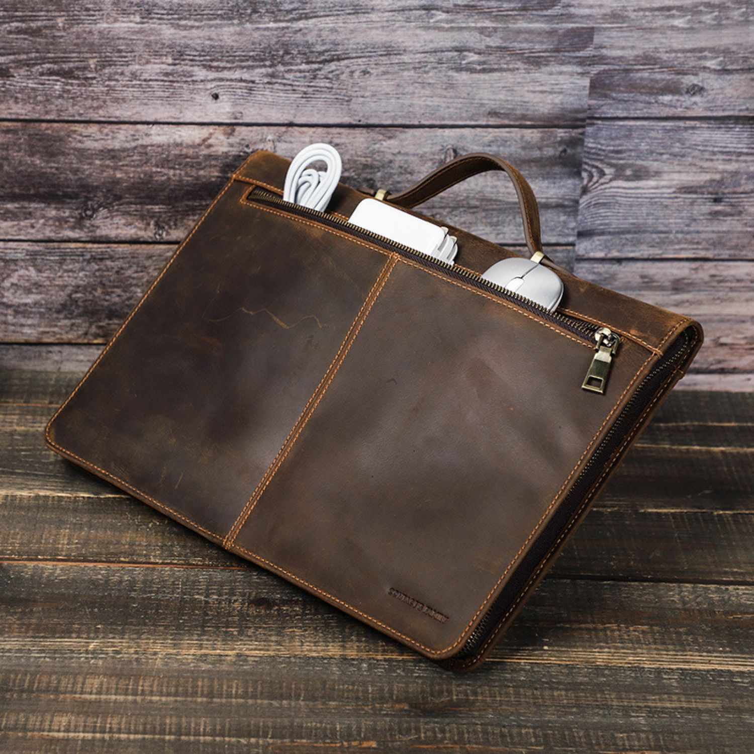 14.2-inch Genuine Leather Protective Case Laptop Handbag Brown 14inch
