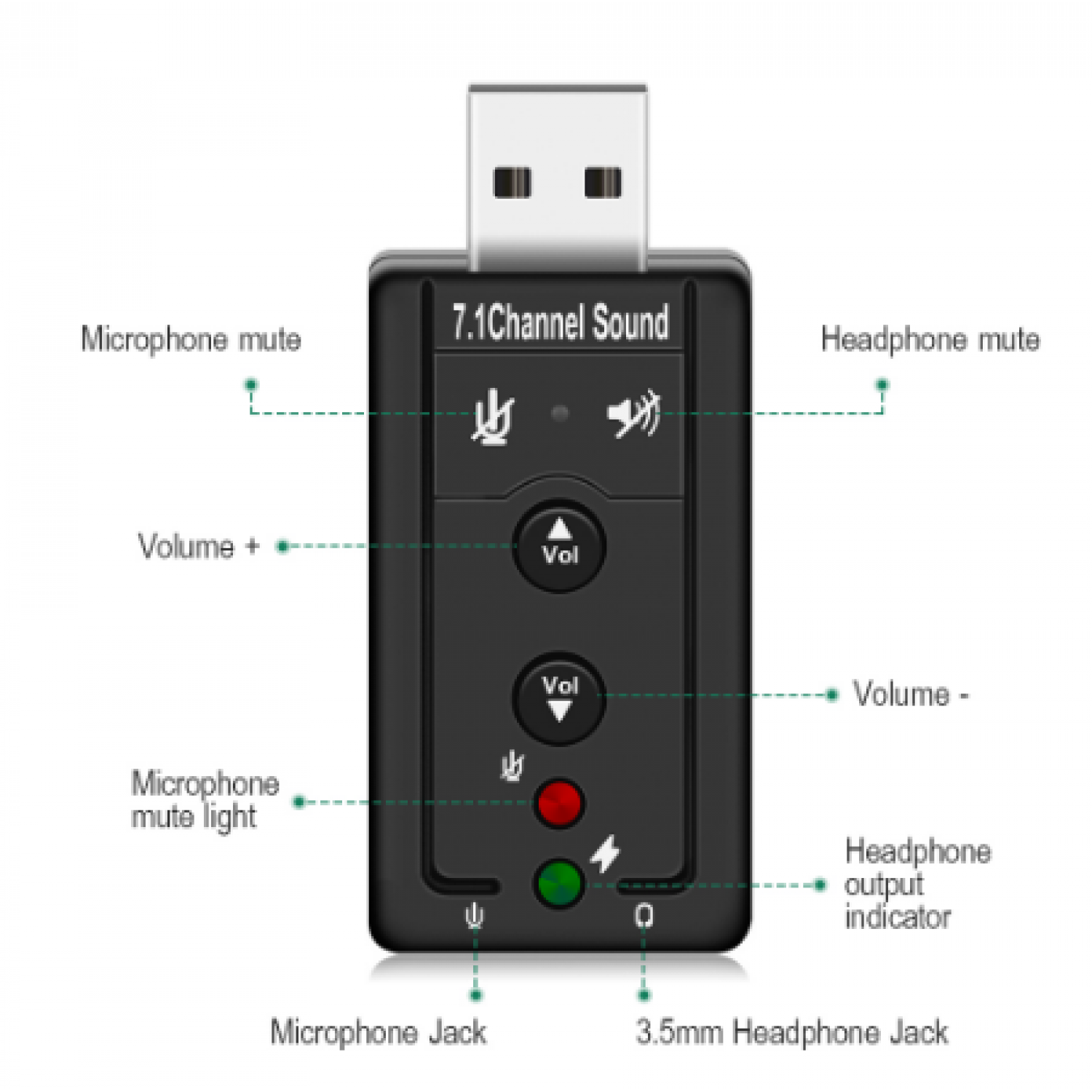 7.1 External USB Sound Card USB to Jack 3.5mm Headphone Audio Adapter Micphone Sound Card default