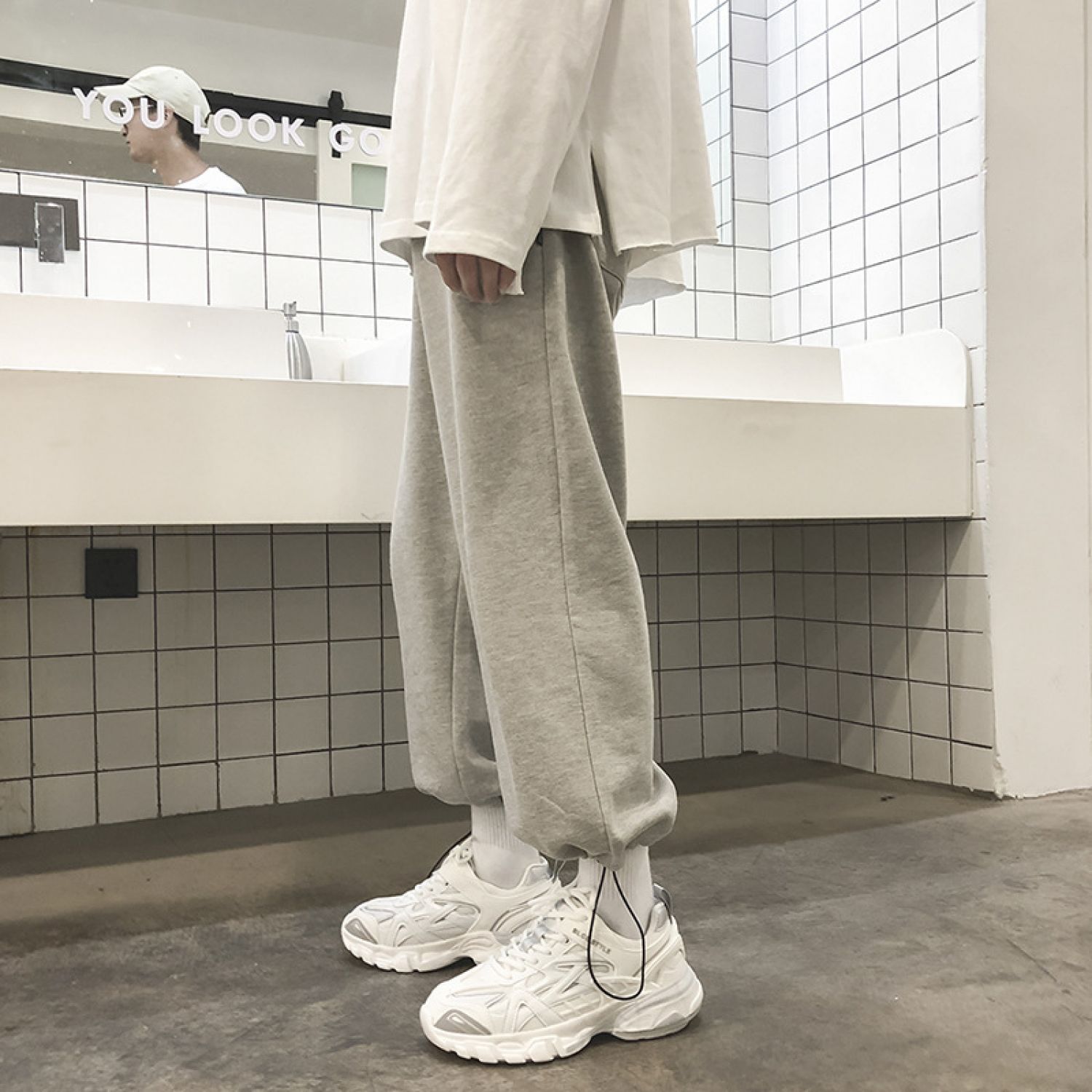 Product information: Fabric name: Polyester Color: gray green [high quality], black, gray, pure black Pants length: trousers Waist type: wide waist Size: S,M,L,XL,2XL,3XL Applicable Gender: Female Style: urban style