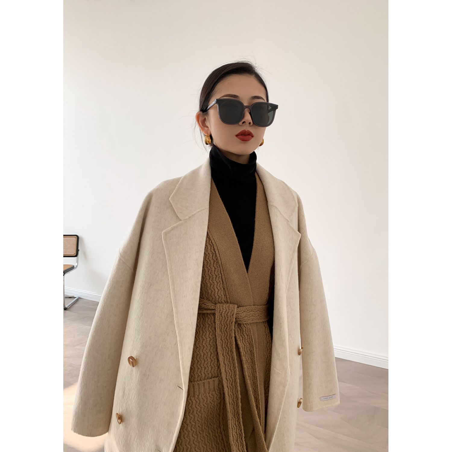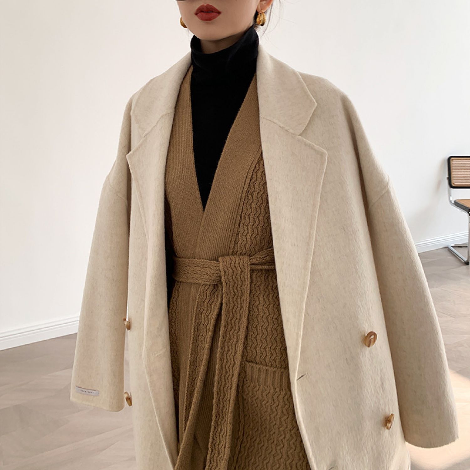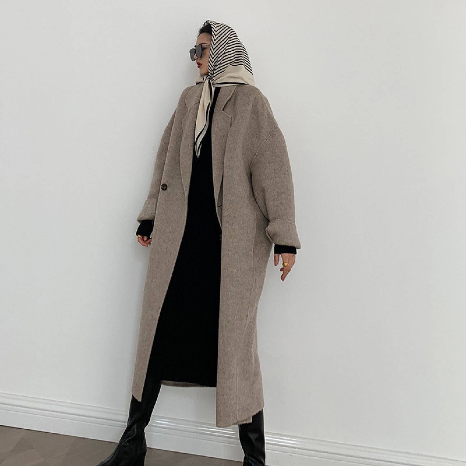 Atmospheric Long Double-sided Wool Coat Picture color One size
