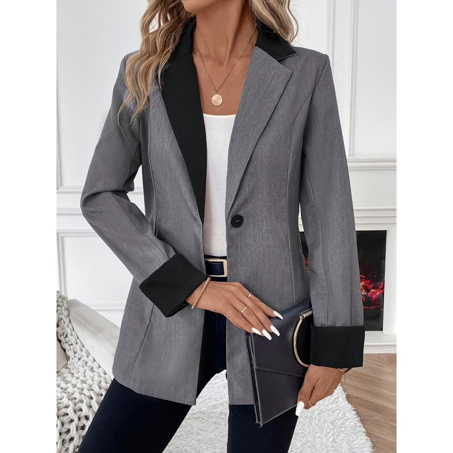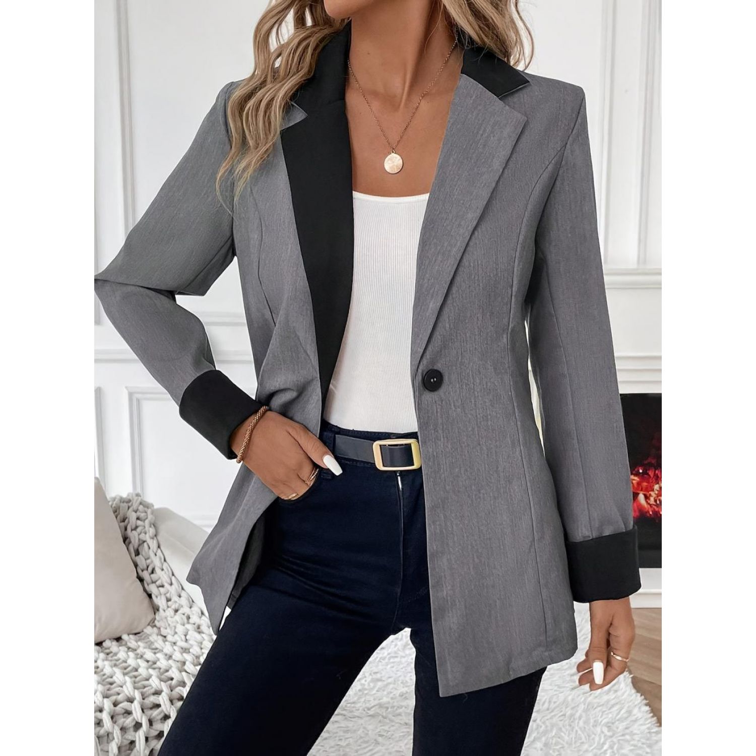 Product information: Color: smoky gray Size: S,M,L,XL Version: Loose Gender: Female Style type: Street hipster Size: L Sleeve length: long sleeve Popular elements: Buttons Craft: Pocket