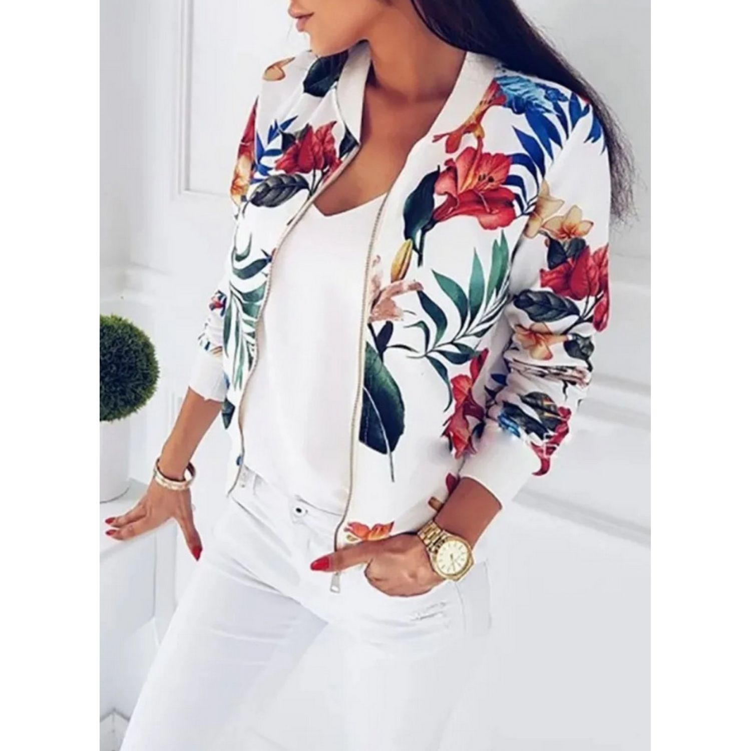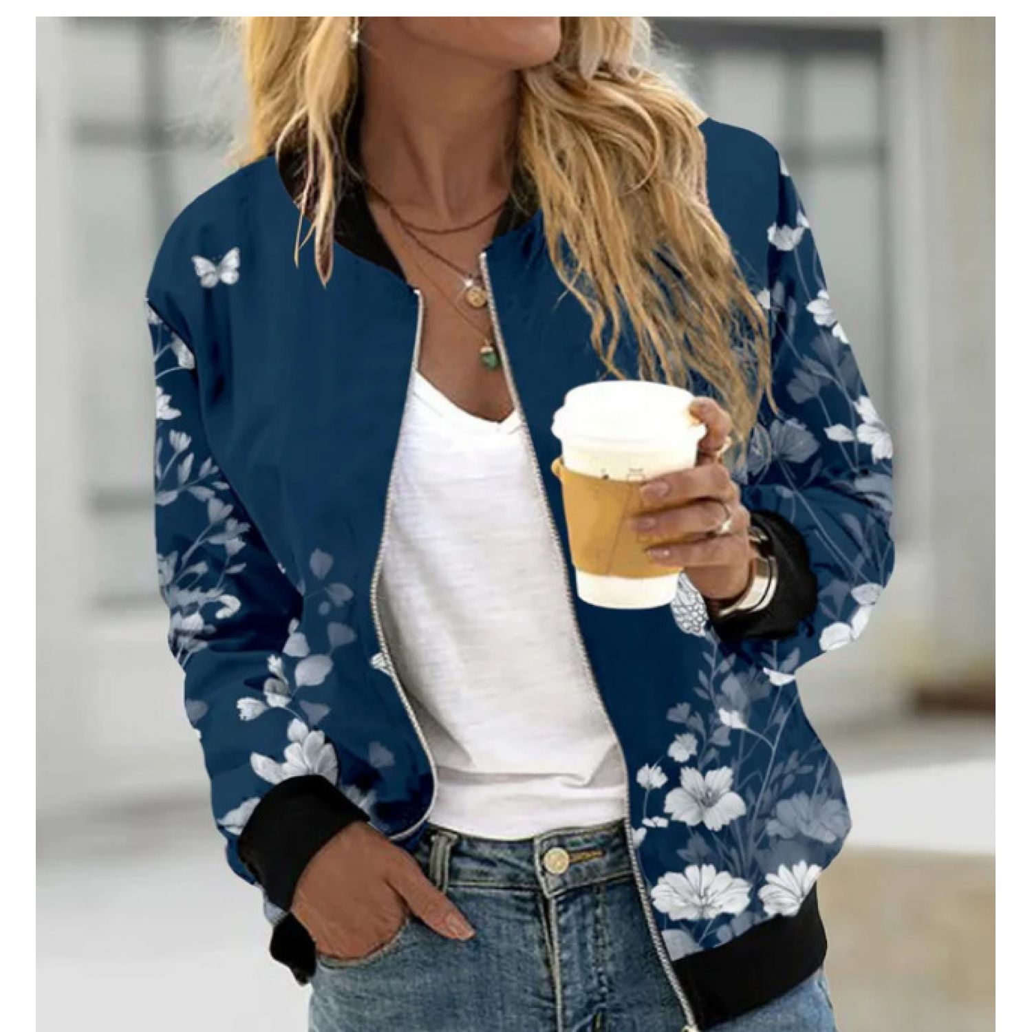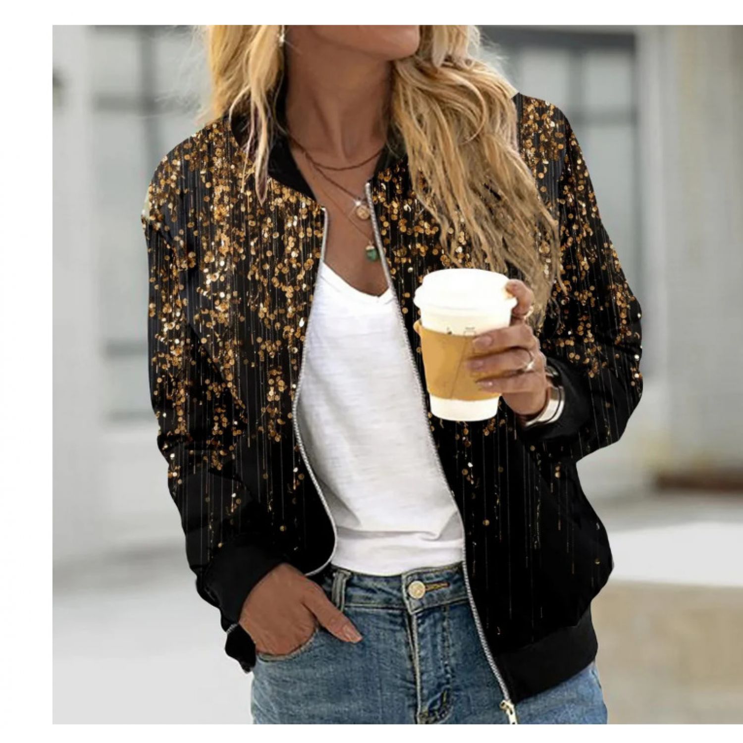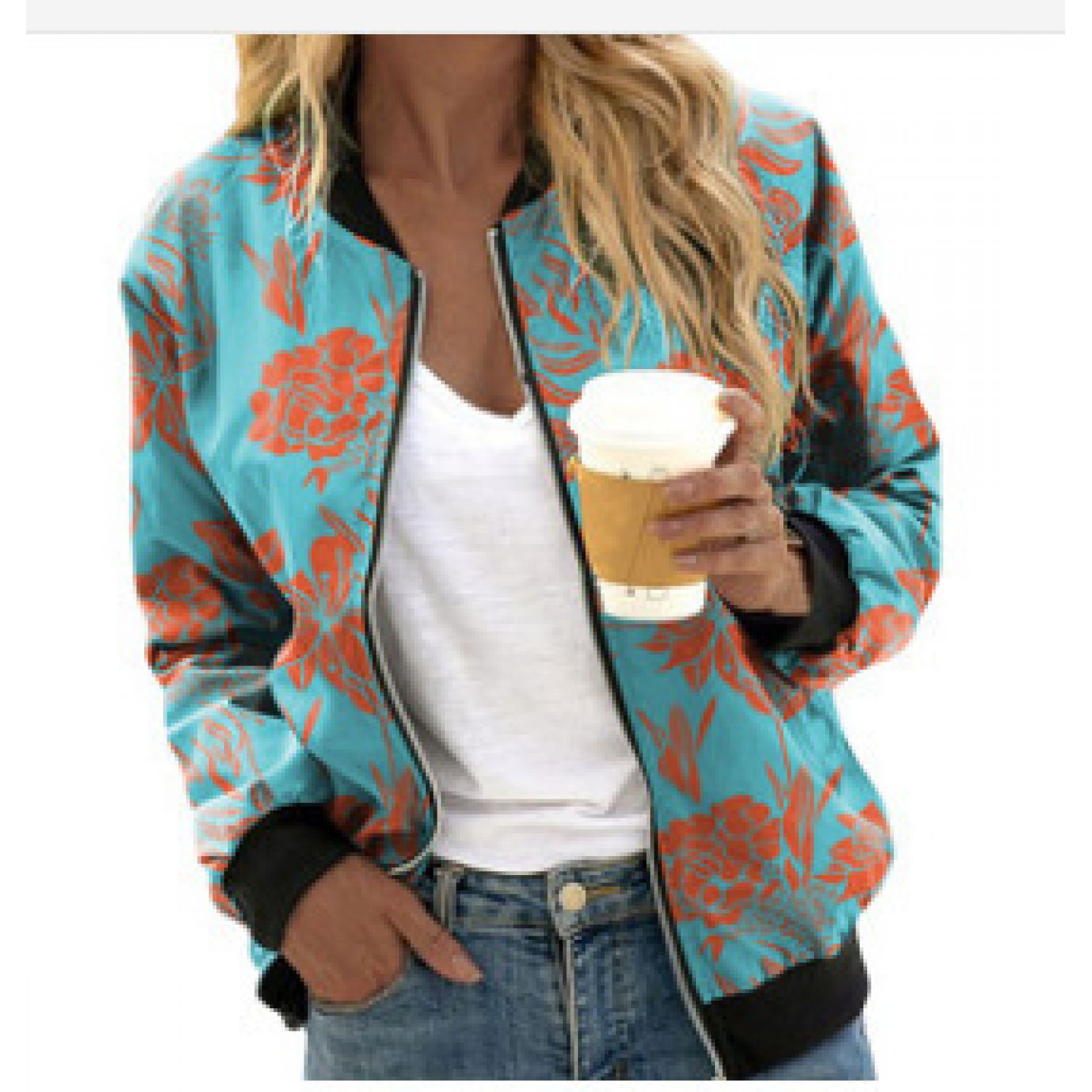 Autumn And Winter New Women's Long Sleeve Zipper Printed Jacket Coat Y190 S