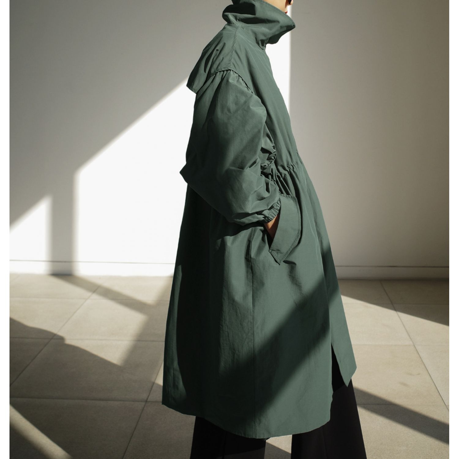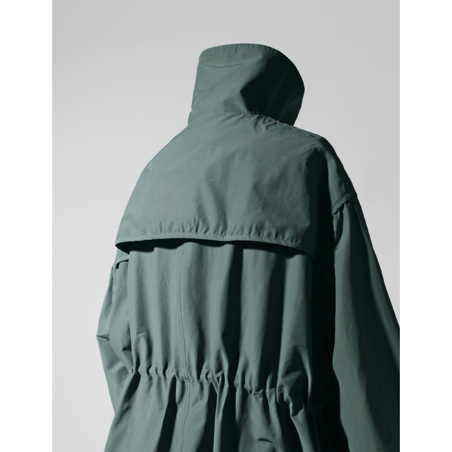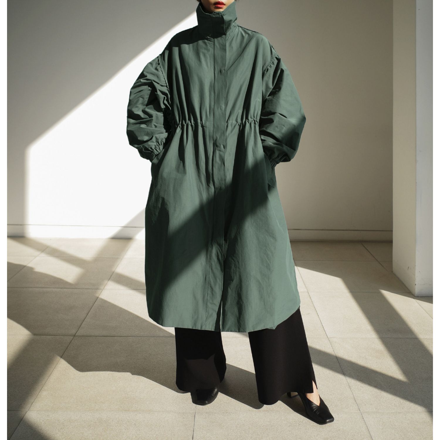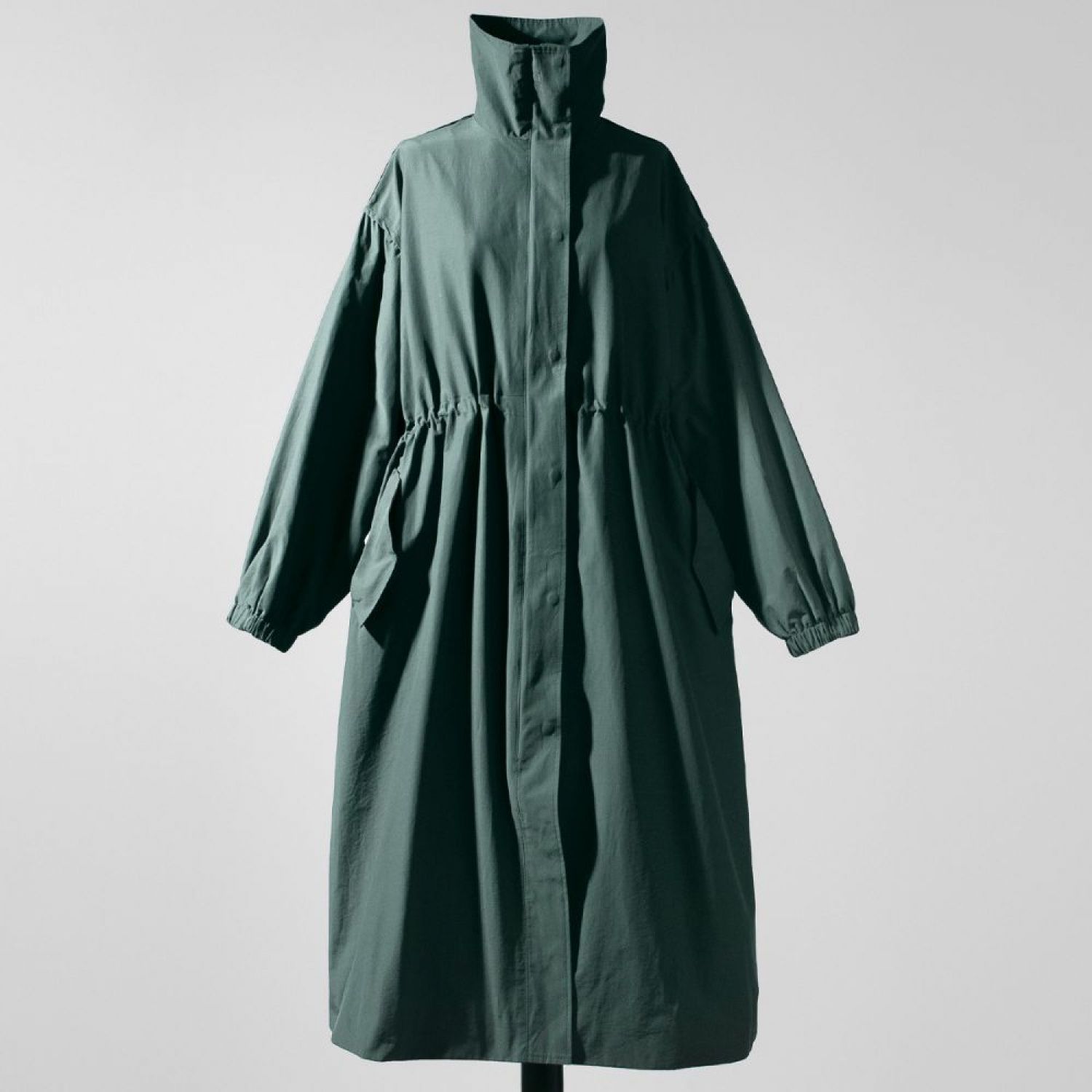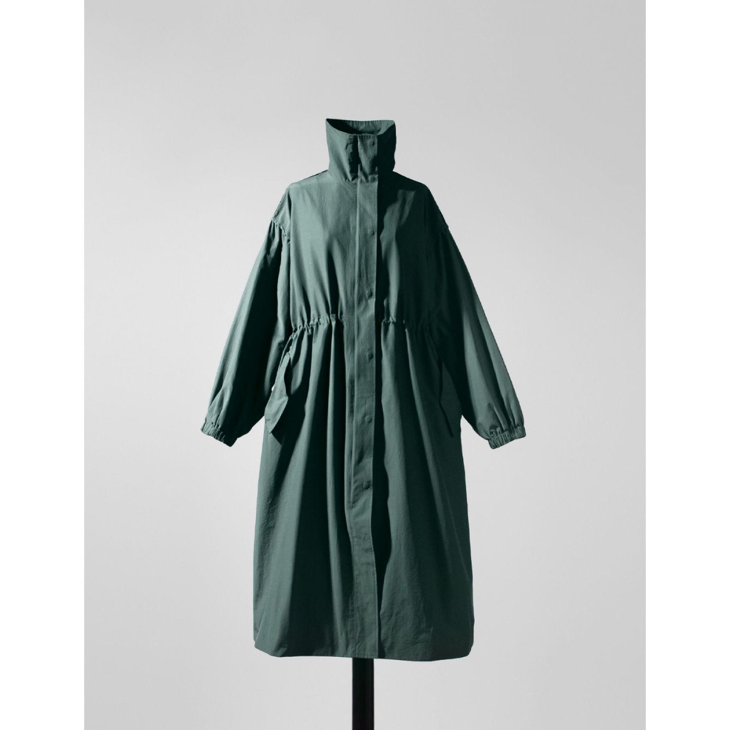 Autumn New Long Windbreaker Korean Style Stand Collar Drawstring Waist-controlled Long Sleeves Loose Trench Coat Green Average Size