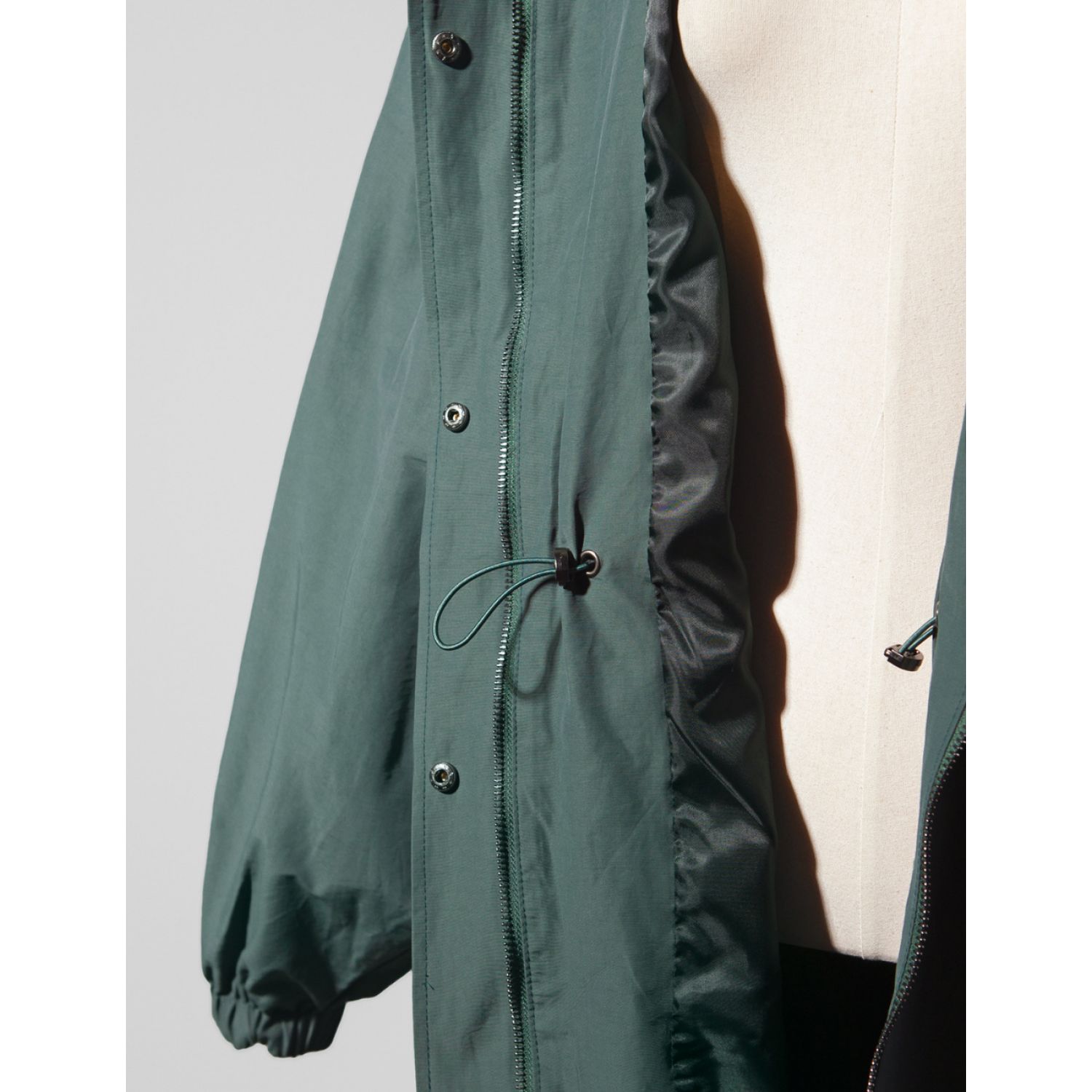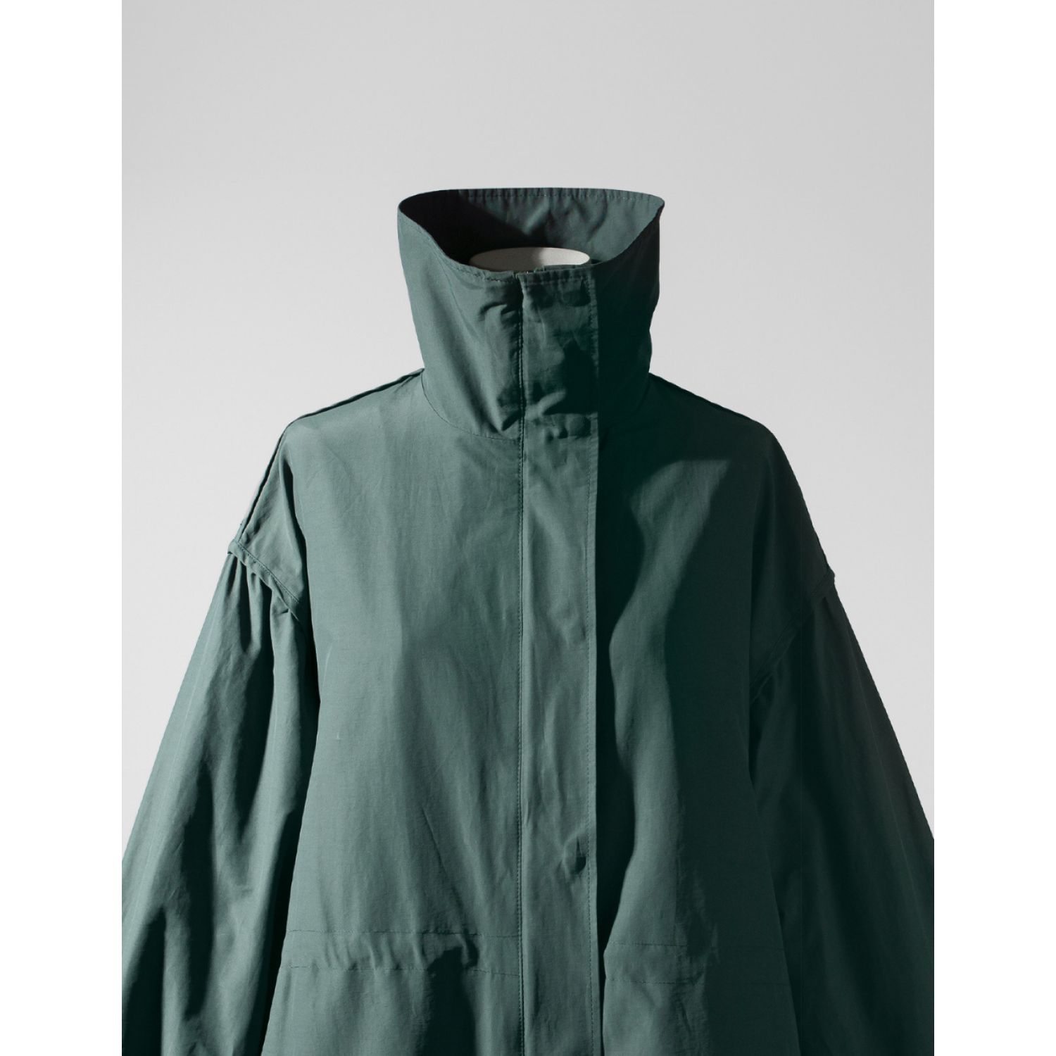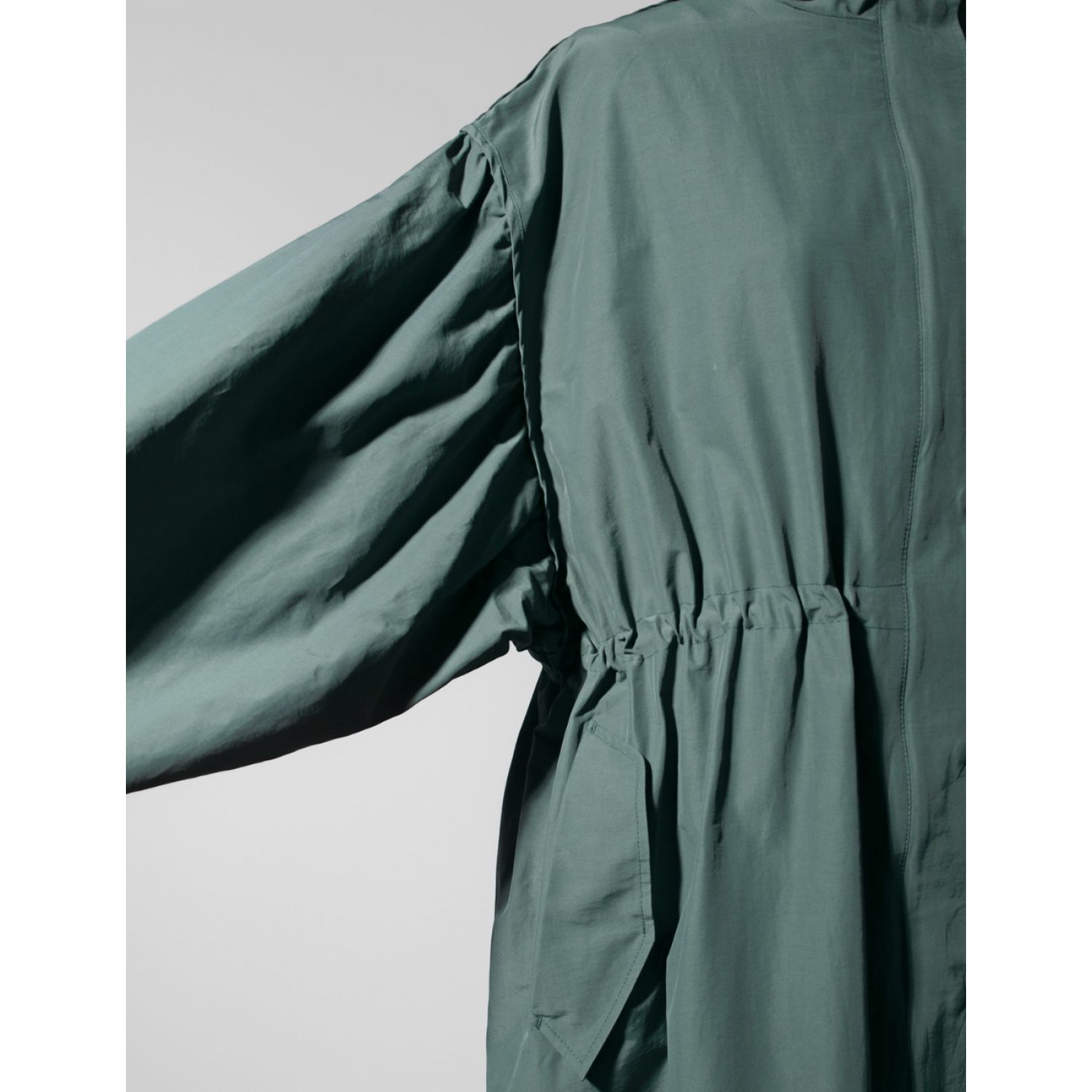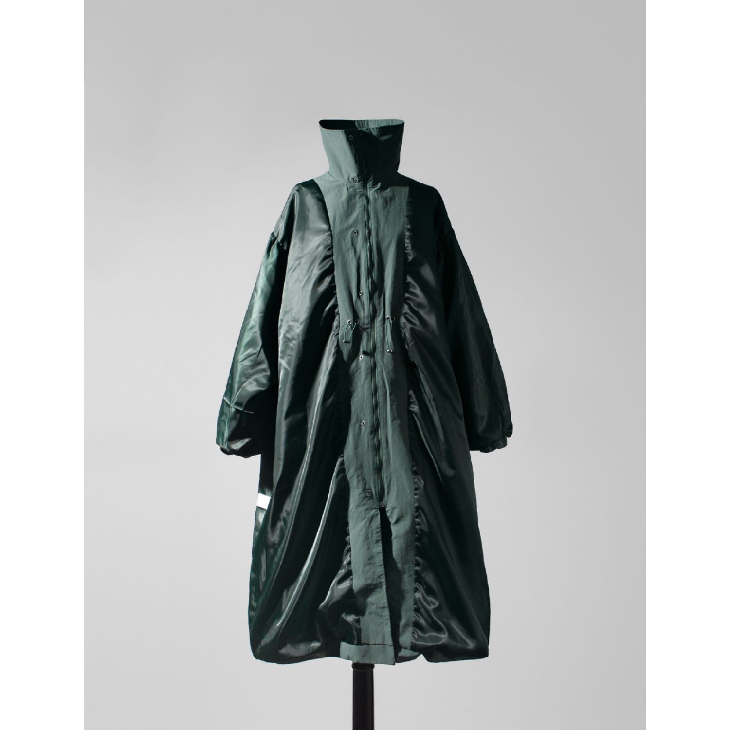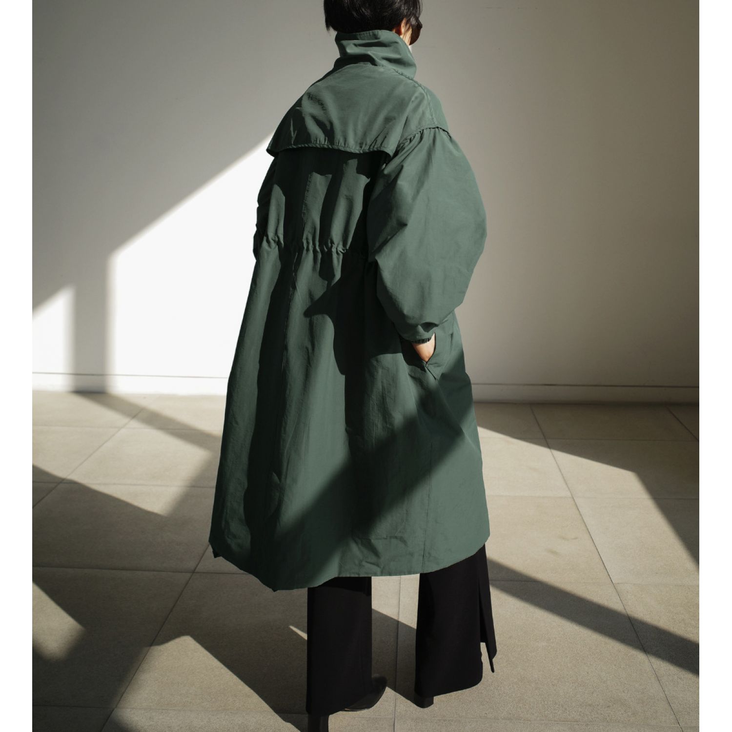 Autumn New Long Windbreaker Korean Style Stand Collar Drawstring Waist-controlled Long Sleeves Loose Trench Coat Green Average Size