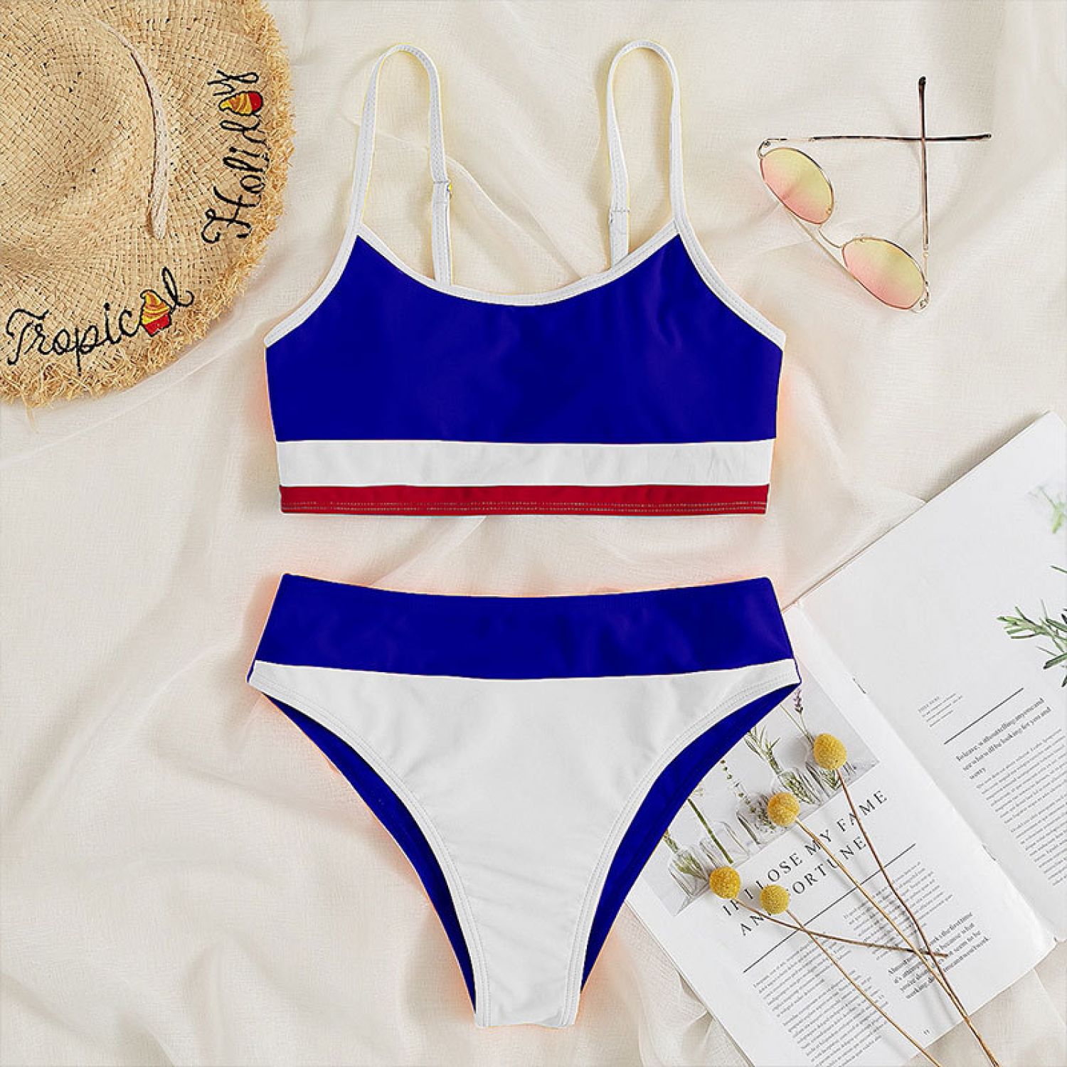 Color: yellow blue rose red, white blue red, orange