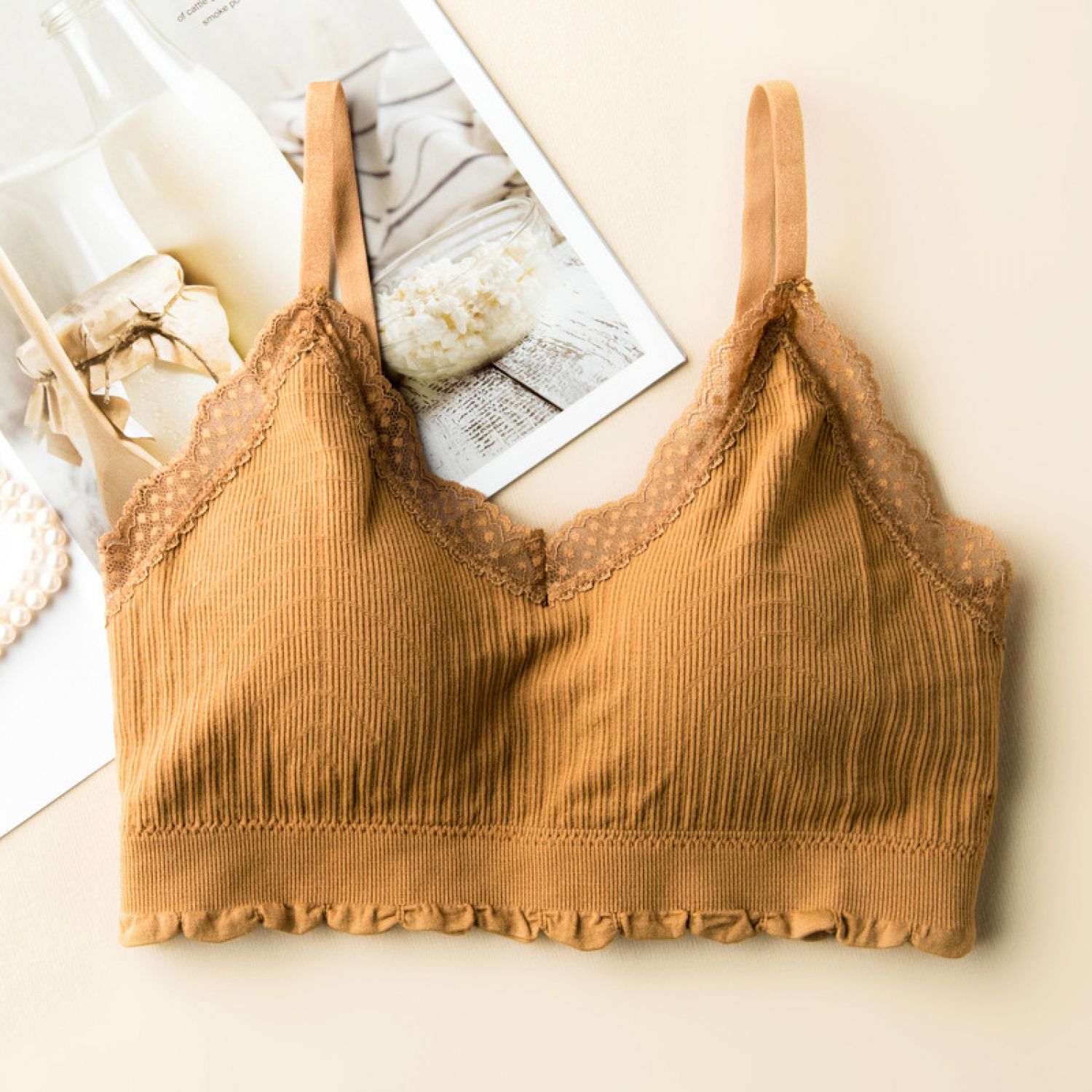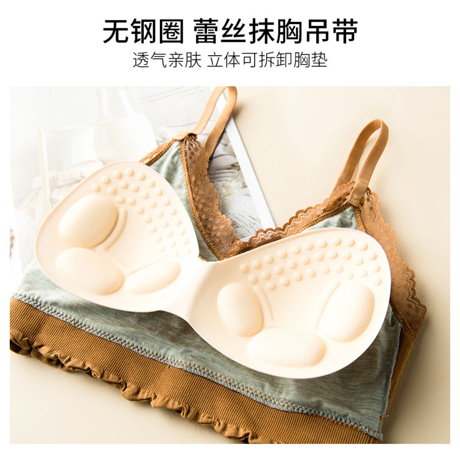 Beauty Back Sling Women's Lace Wireless Student Tube Top Push Up With Breast Pads Bra Orange Free Size