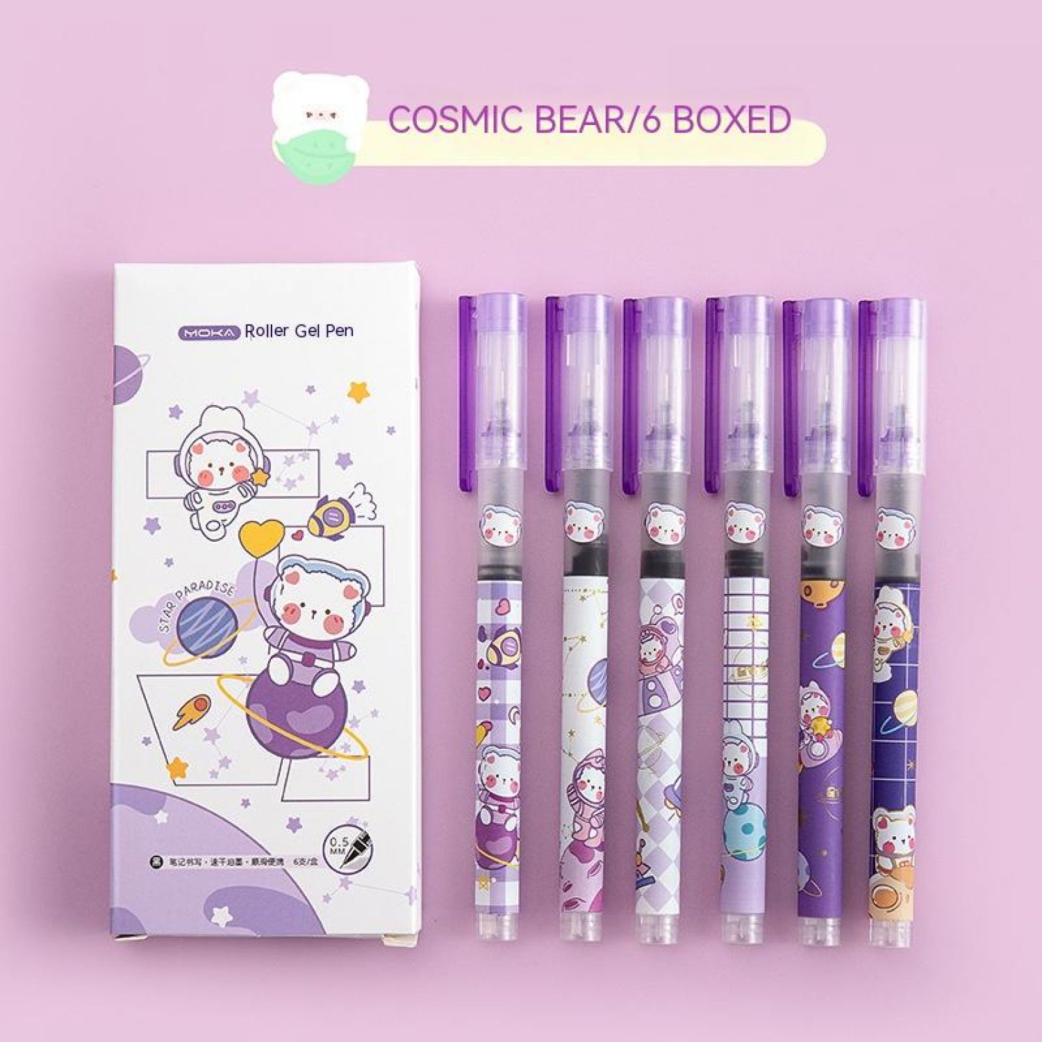Boxed Cute Cartoon Straight-liquid Quick-drying Gel Pen Cosmic Bear