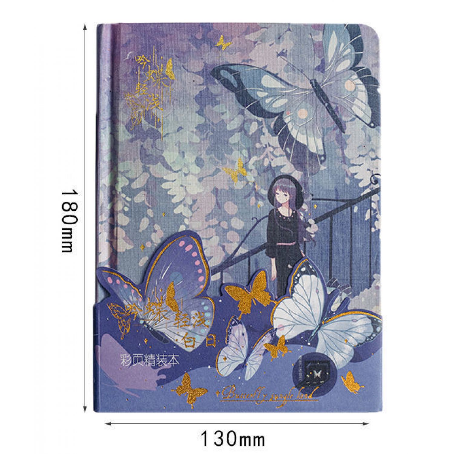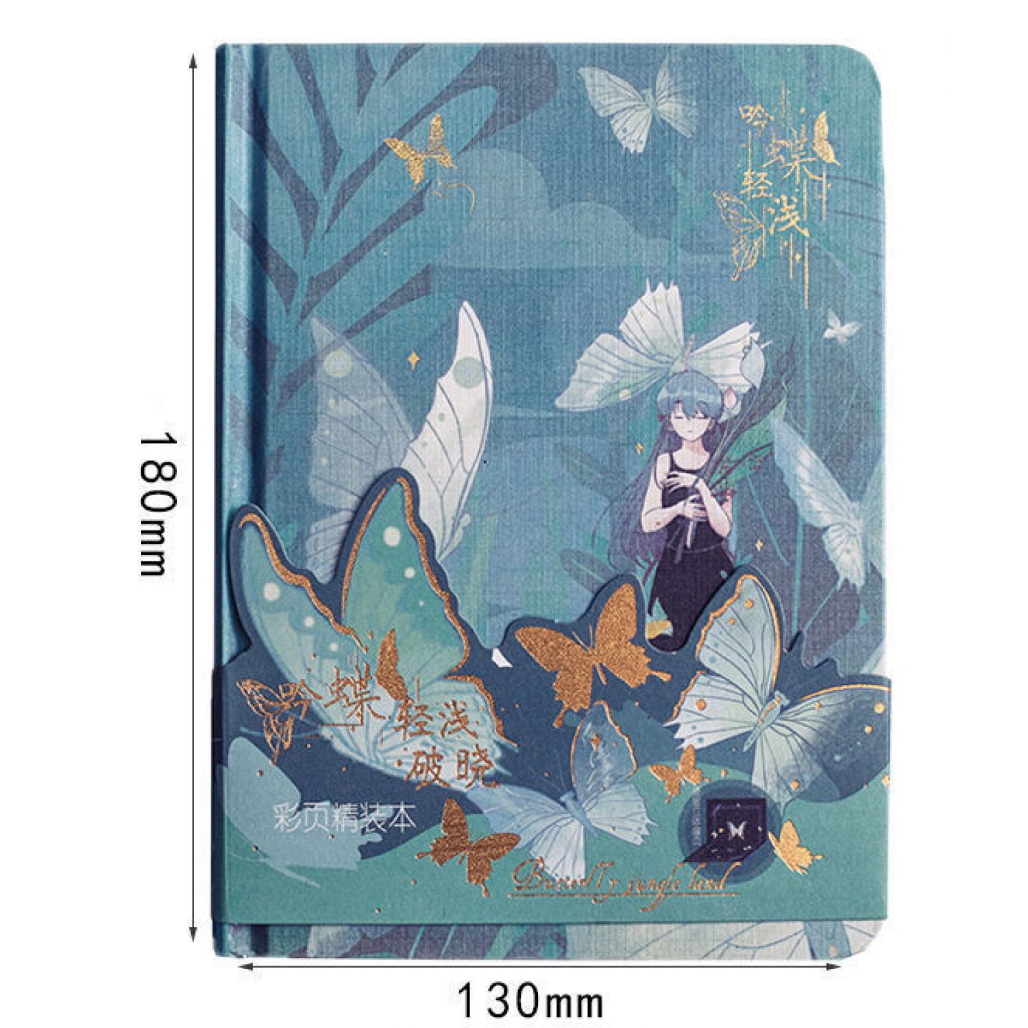 Butterfly Series Color Page Notebook Student's Diary A5 Creative Beautiful Hardcover Notebook Light cyan