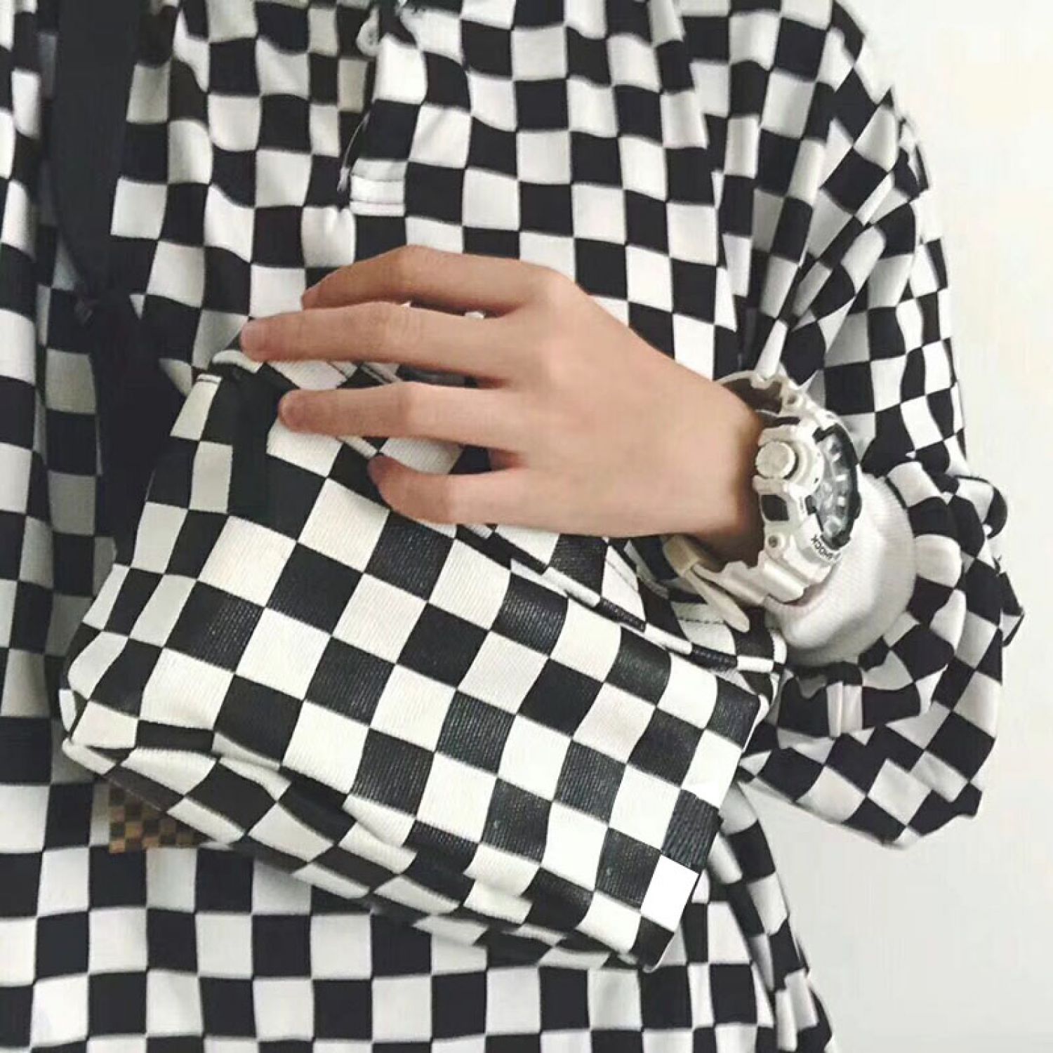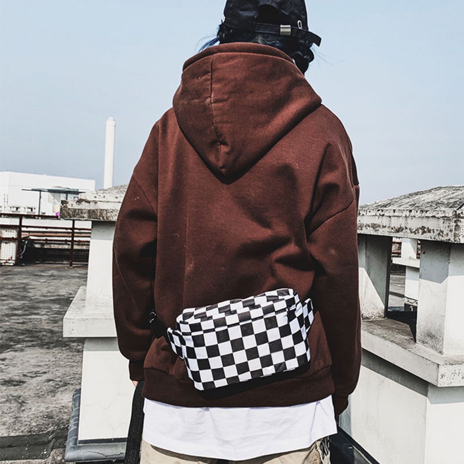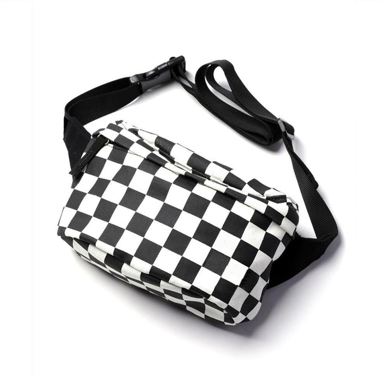 Product name: Fashion black and white plaid waist bag unisex cross body chest bag