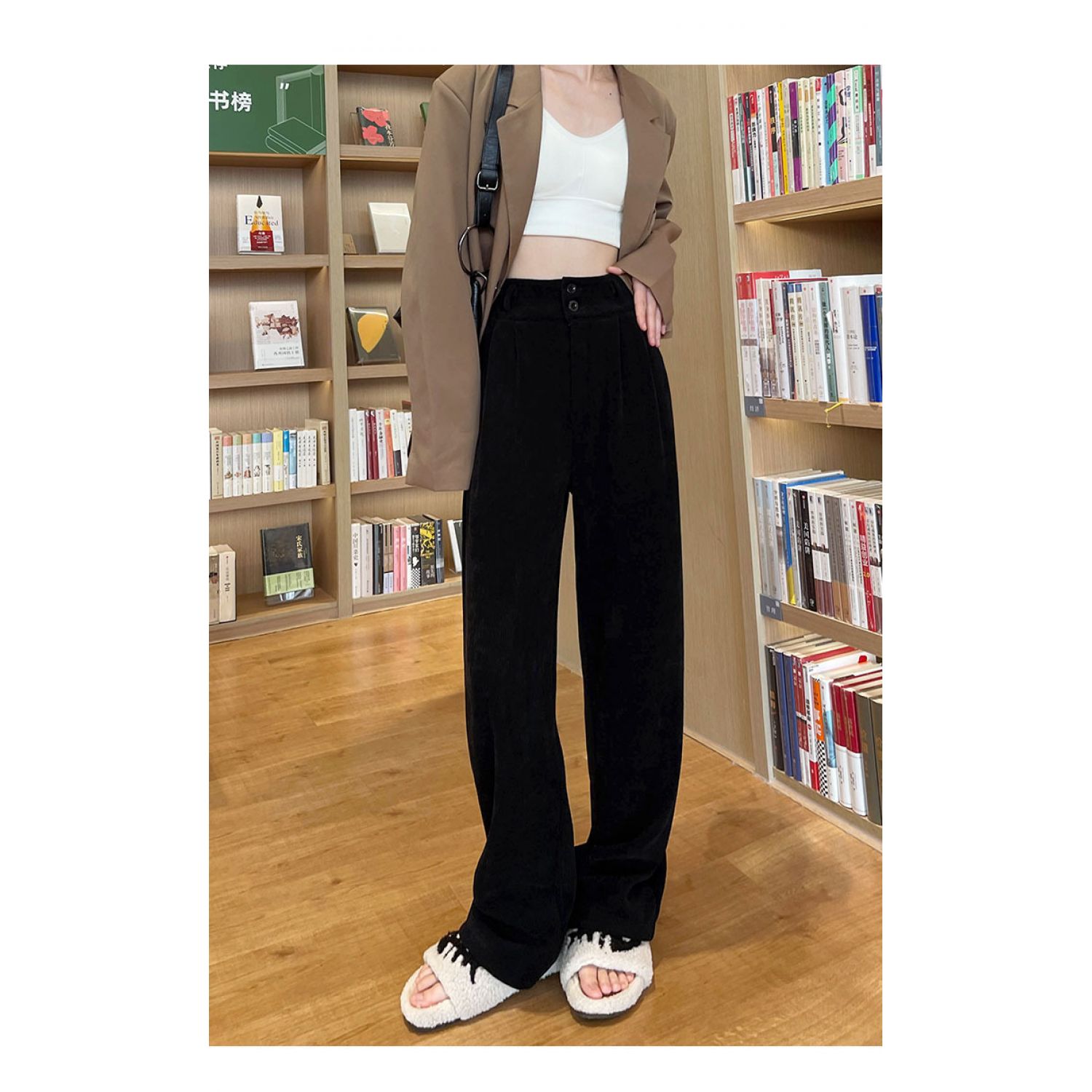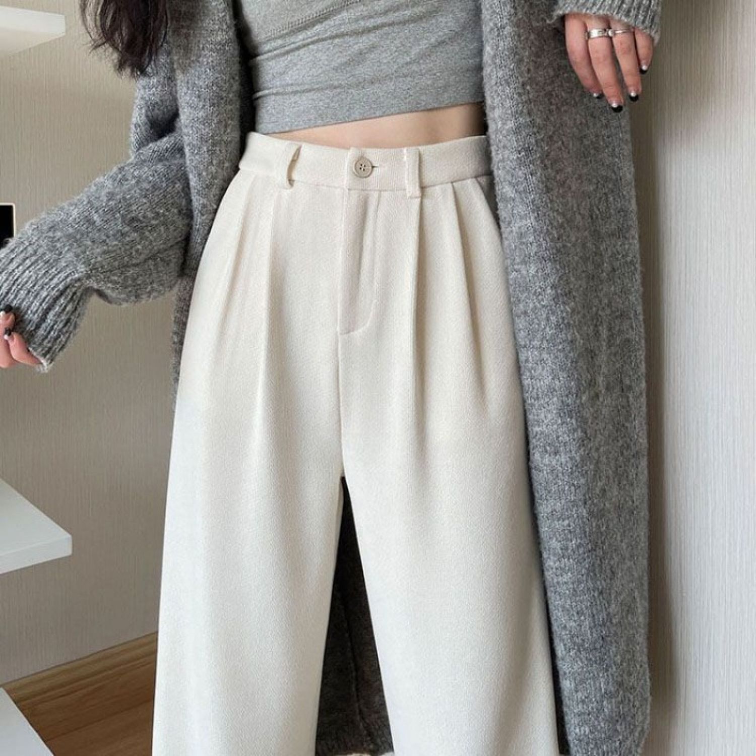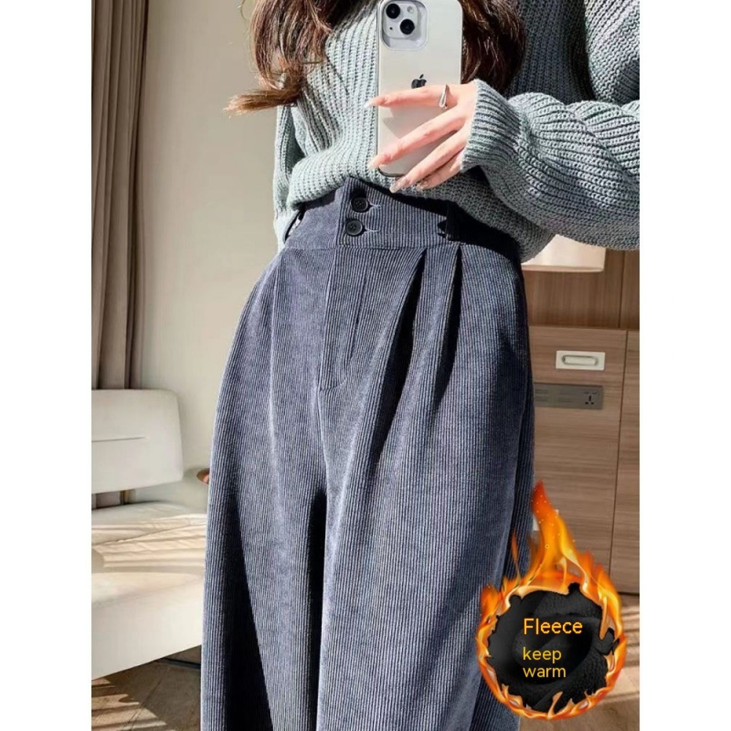 Color: 877 Milky White (regular) back elastic waist, 877 Milky White (fleece-lined thickening) back elastic waist, 877 advanced Gray (regular) back elastic waist, 877 advanced Gray (fleece-lined thickening) back elastic waist, 877 Brown (fleece-lined thickened) back elastic waist, 877 Brown (regular) back elastic waist, 877 Black (regular) back elastic waist, 877 Black (fleece-lined thickened) back elastic waist,