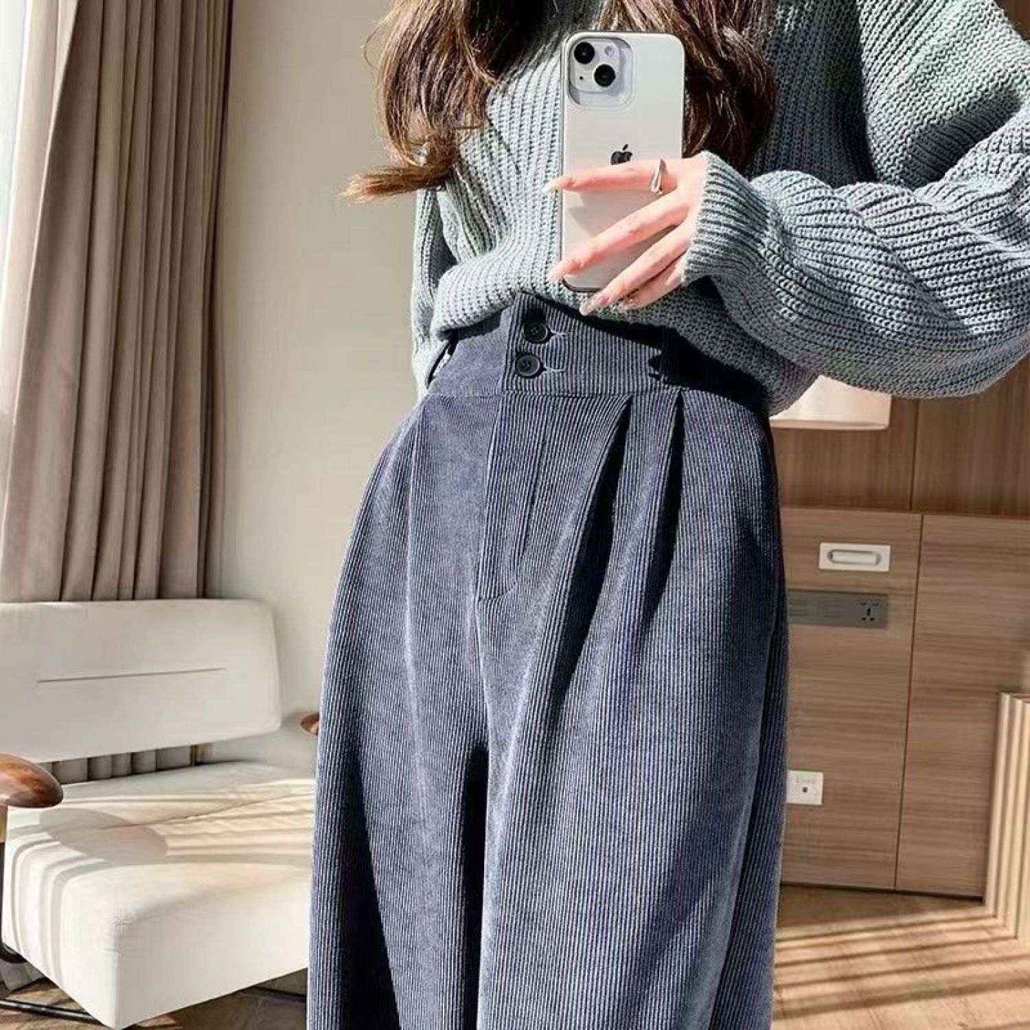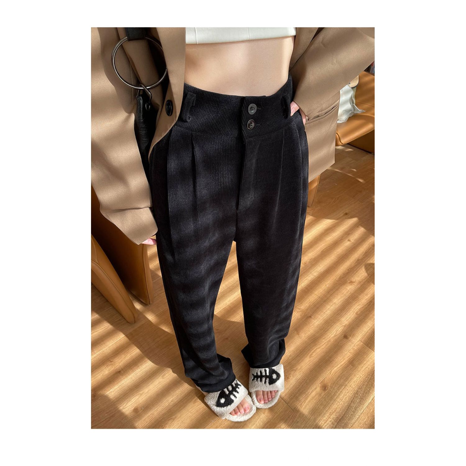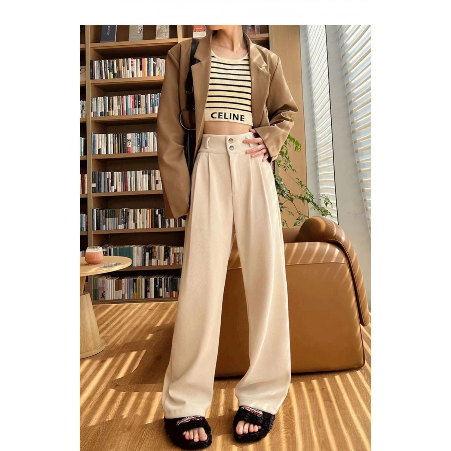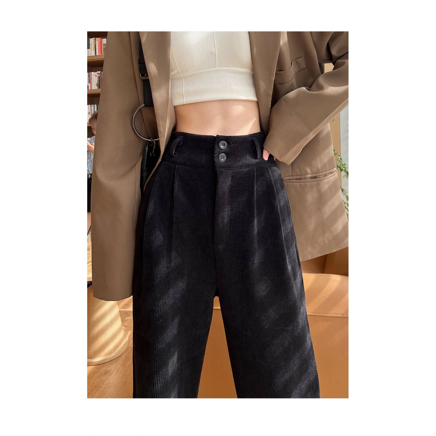 Color: 877 Milky White (regular) back elastic waist, 877 Milky White (fleece-lined thickening) back elastic waist, 877 advanced Gray (regular) back elastic waist, 877 advanced Gray (fleece-lined thickening) back elastic waist, 877 Brown (fleece-lined thickened) back elastic waist, 877 Brown (regular) back elastic waist, 877 Black (regular) back elastic waist, 877 Black (fleece-lined thickened) back elastic waist,