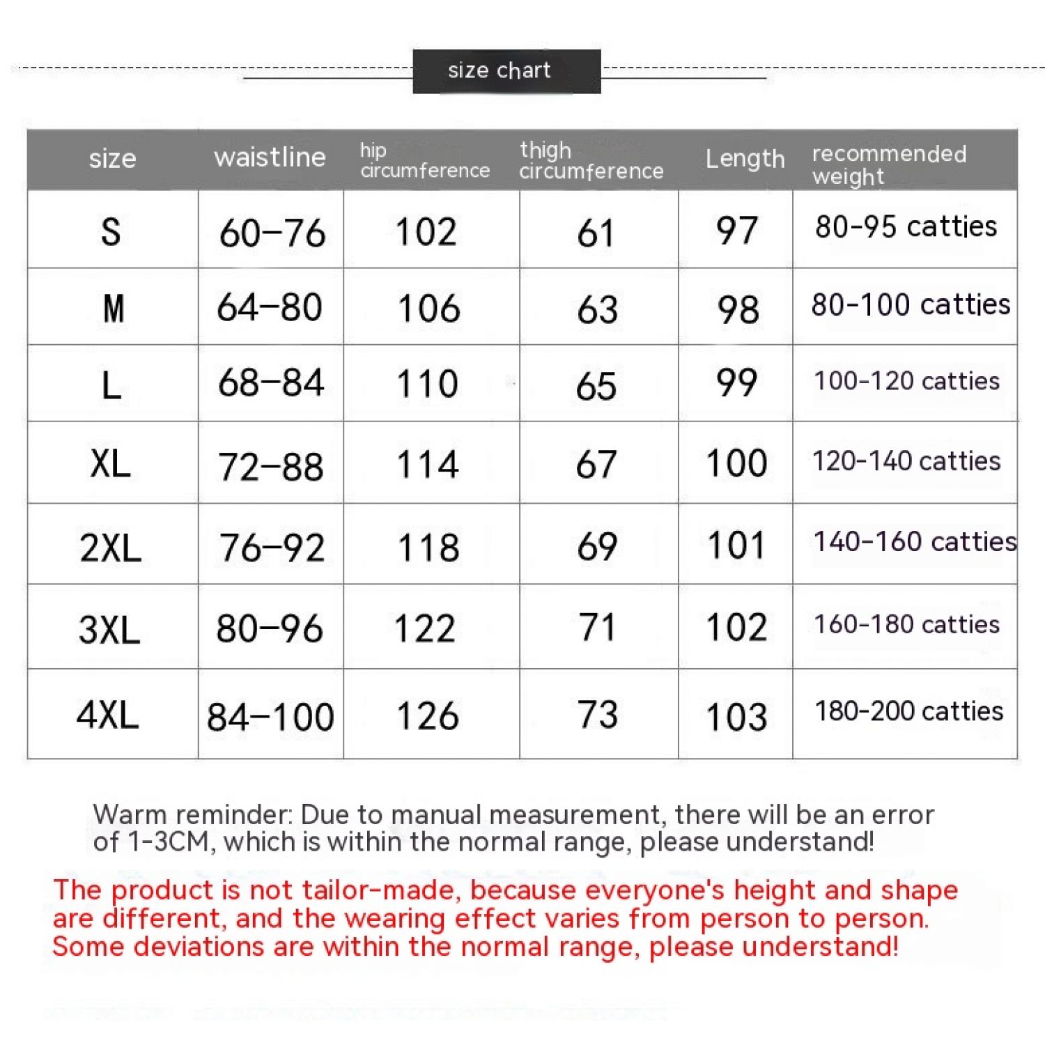 Size: S recommend 40.00kg-45.00kg,M recommend 42.50kg-50.00kg,L recommend 50.00kg-6200kg, XL recommend 6200kg-70.00kg,2XL recommend 70.00kg-80.00kg,3XL recommend 80.00kg-90.00kg,4XL recommend 90.00kg-100.00kg