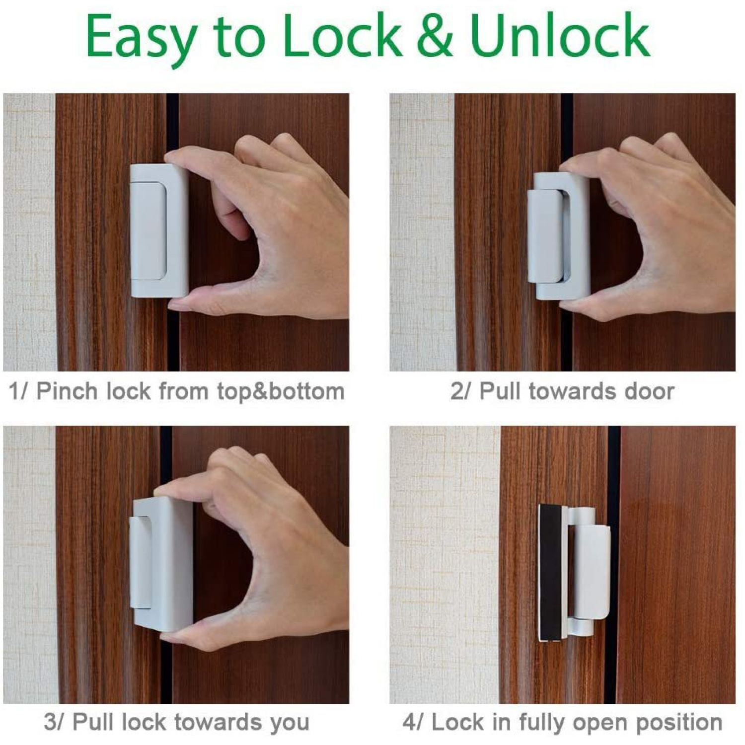 Child Safety Door Reinforced Lock With 3 Inches Stop Aluminum Alloy Hinge Upgrade Night Lock Silver
