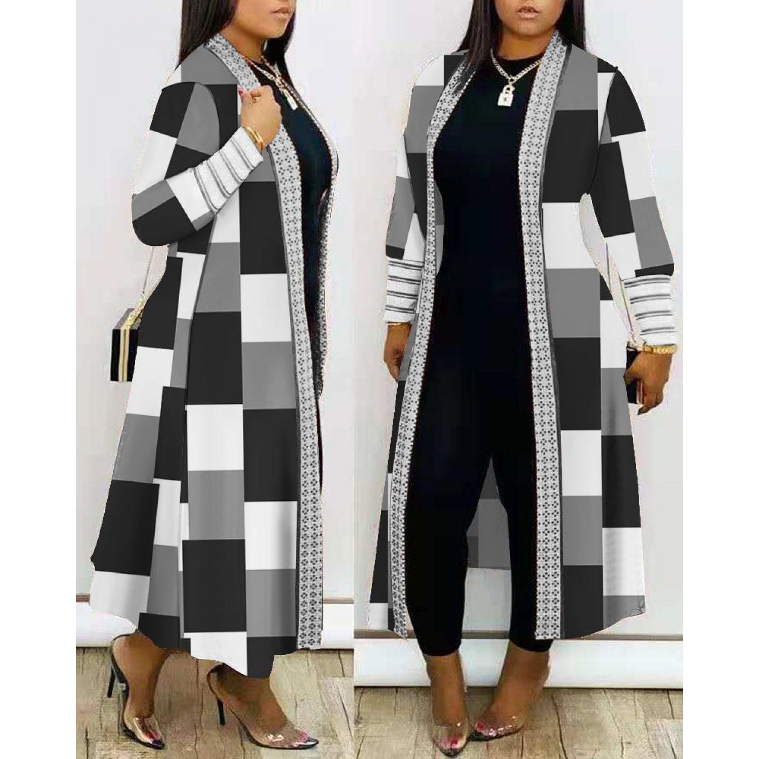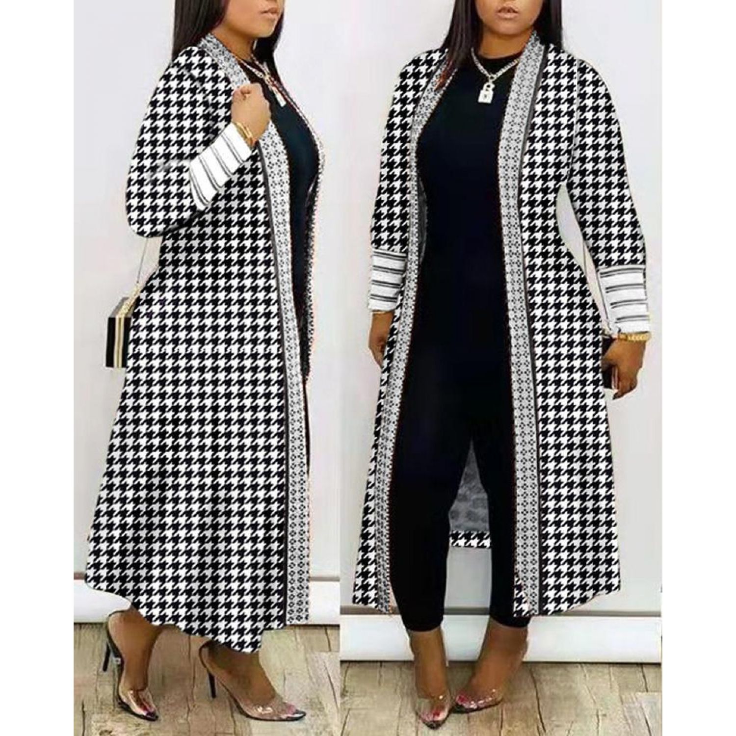 Color: black and white plaid printing, red printed, denim blue, houndstooth, apricot