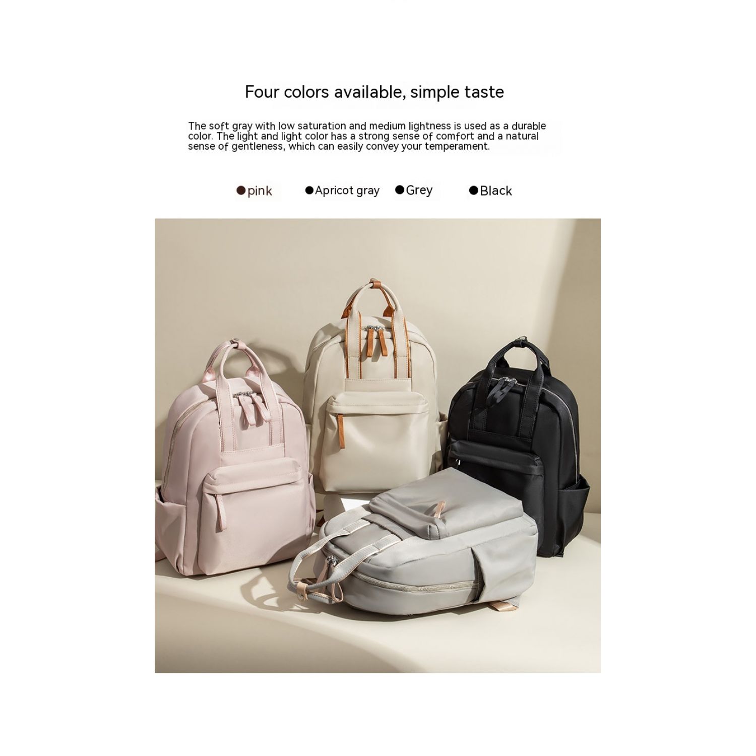 Color: Dirty Pink, apricot with Brown, almond color, classic black