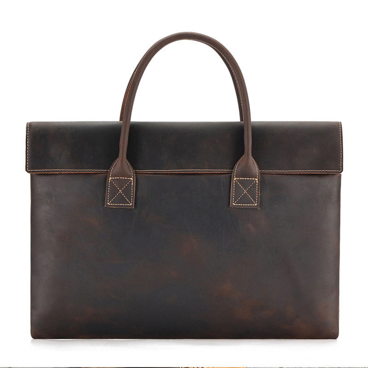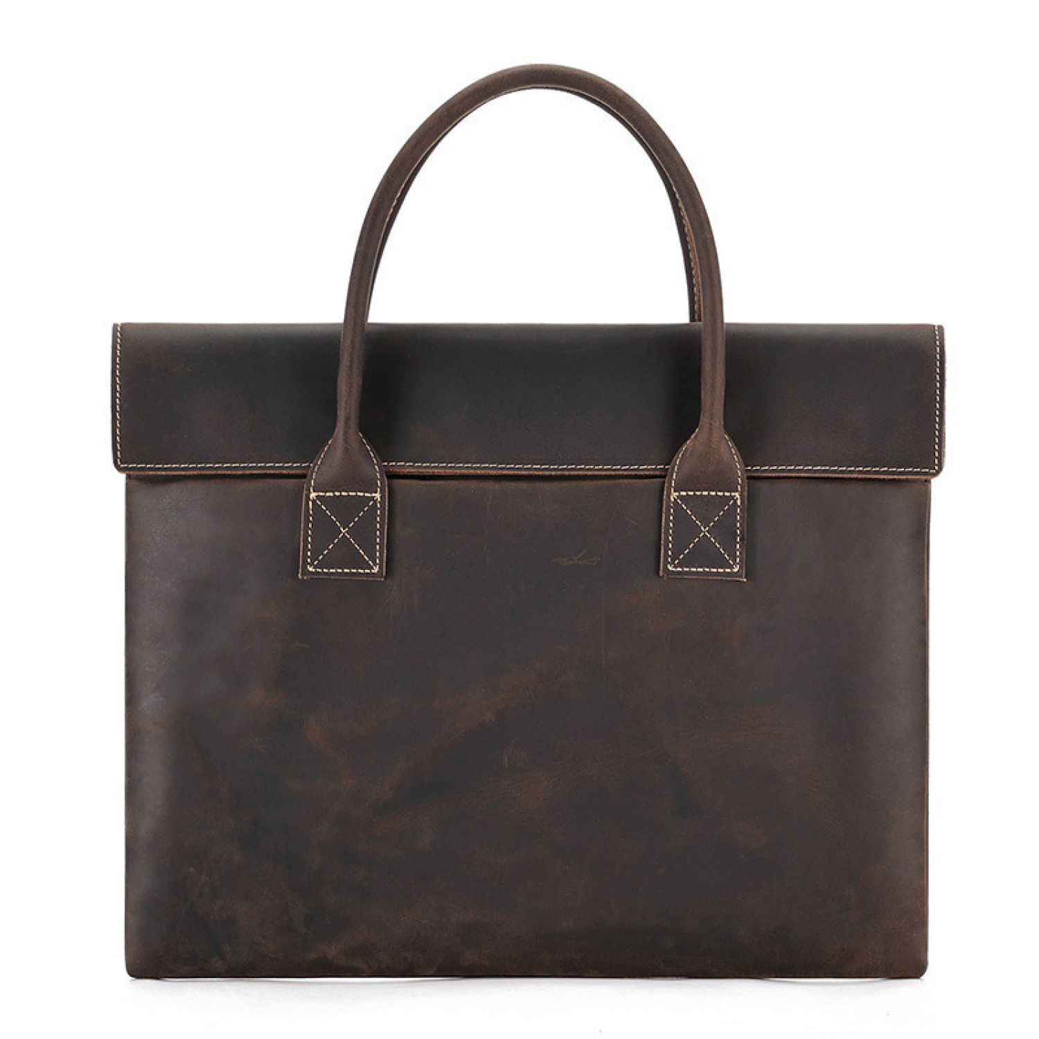 Crazy Horse Leather Men's Handbag Thin And Portable Coffee S