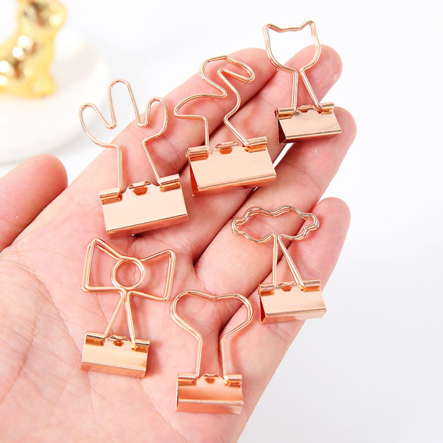Creative Plating Gold Small Clip Office Style Long Tail Metal Flamingo