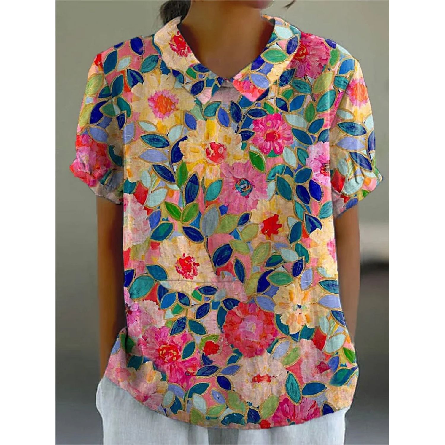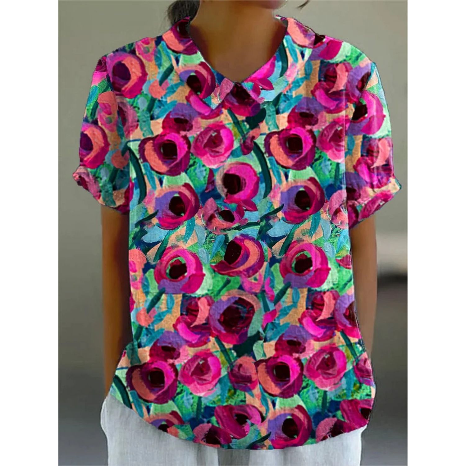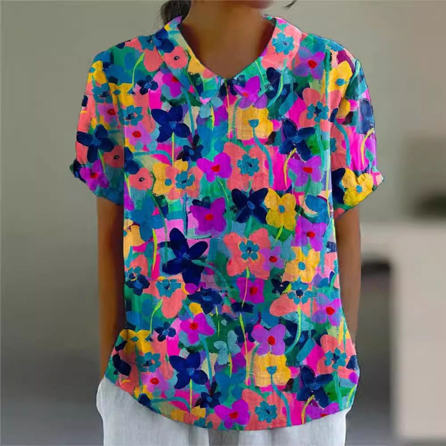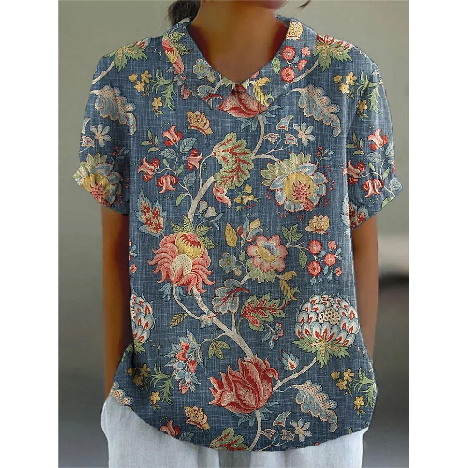 Creative Retro Floral Cute Style Short Sleeve T-shirt 1Style M