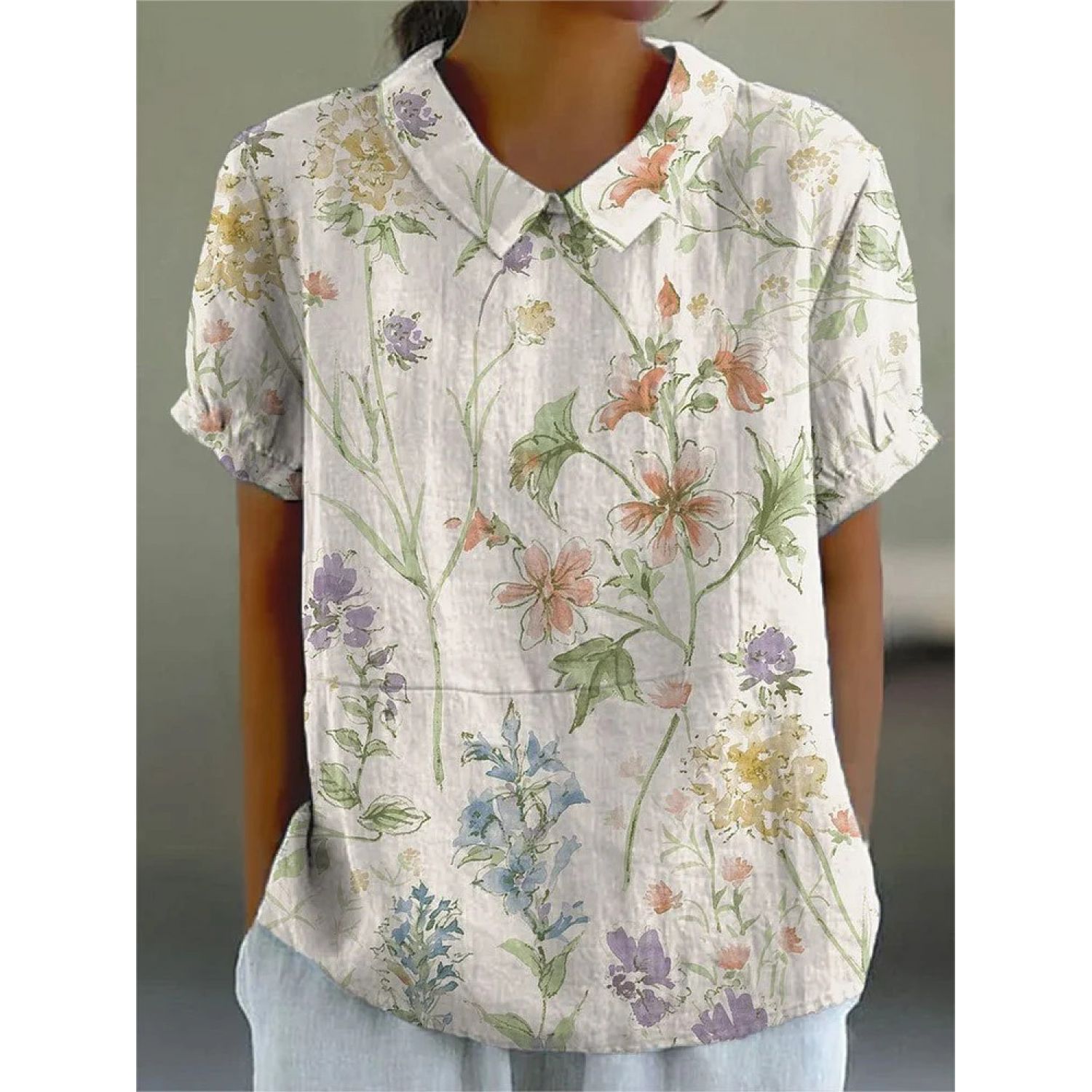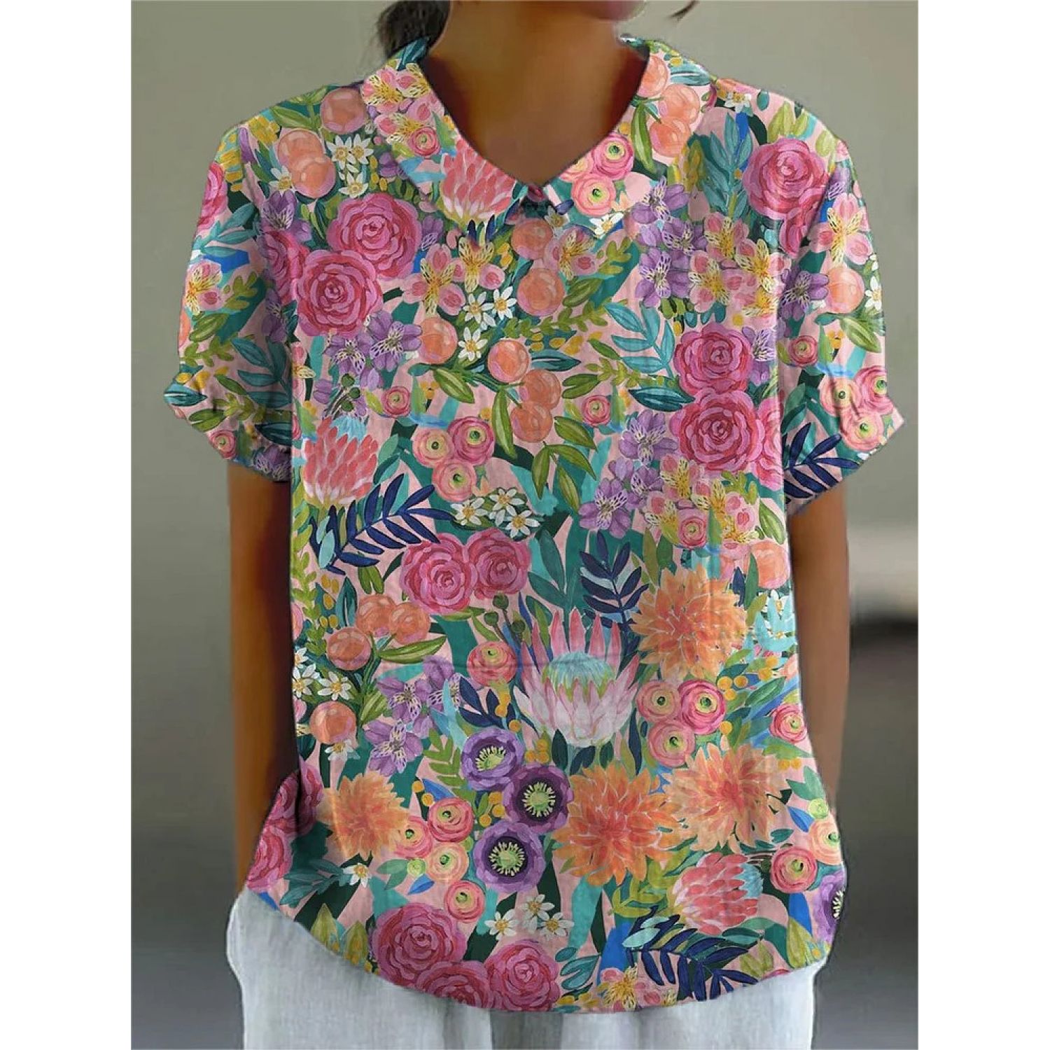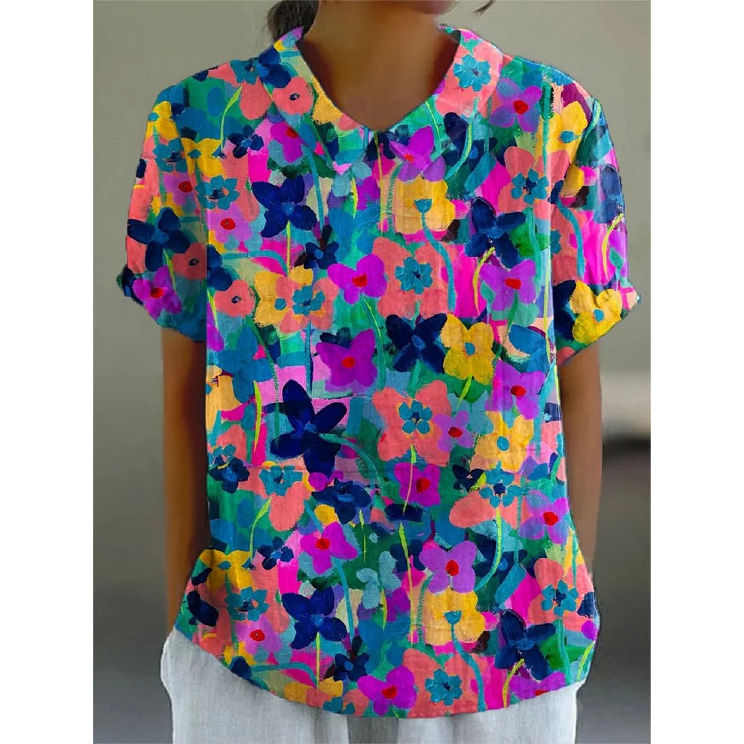 Creative Retro Floral Cute Style Short Sleeve T-shirt 1Style M