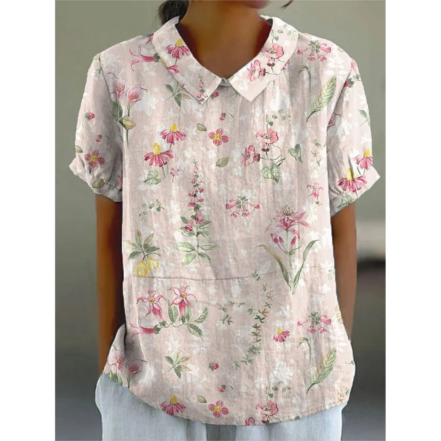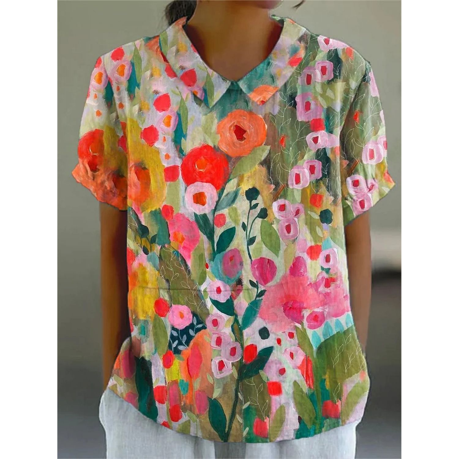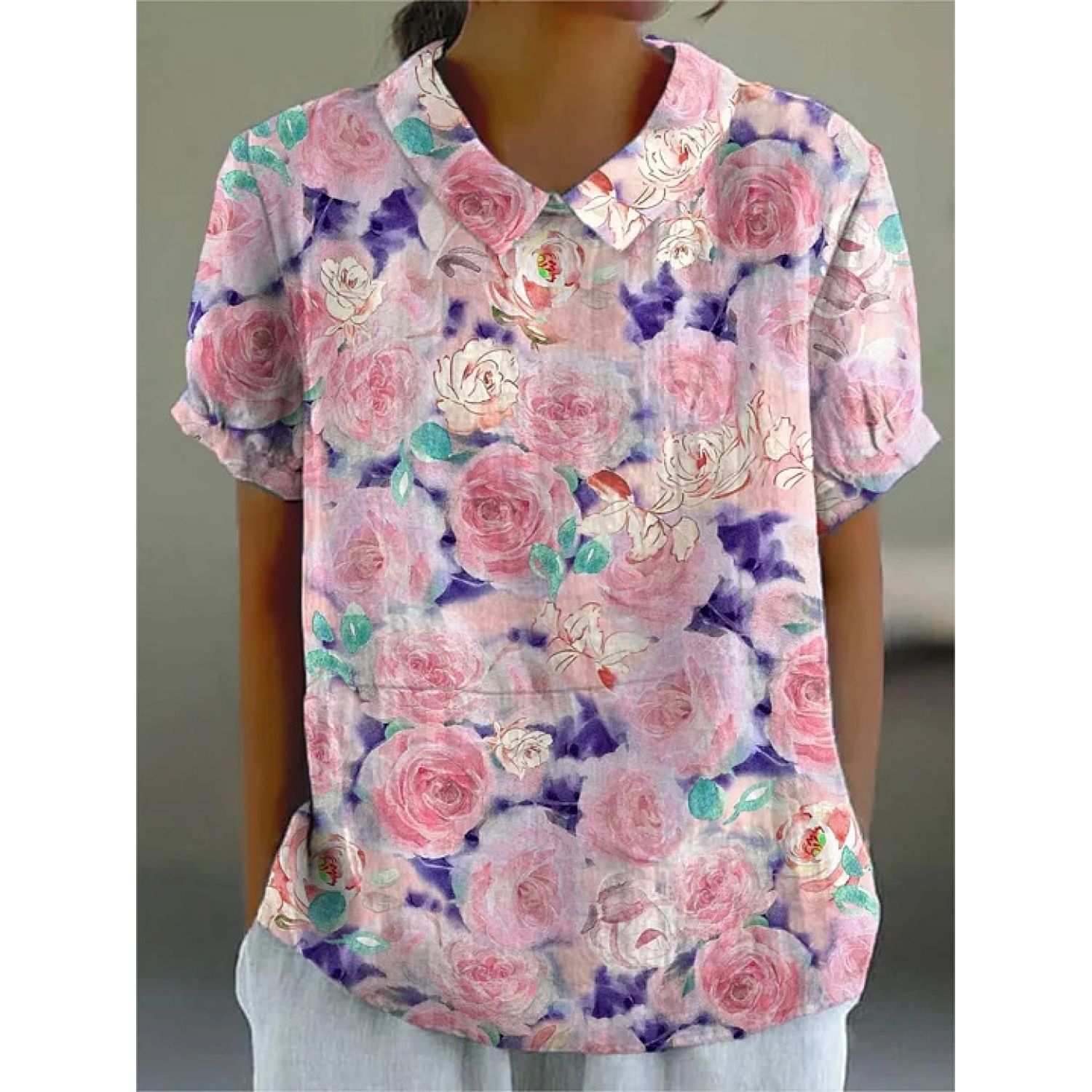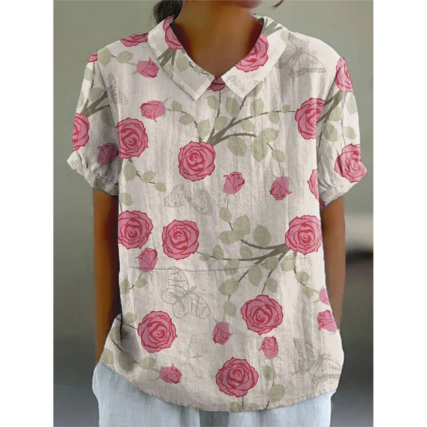 Creative Retro Floral Cute Style Short Sleeve T-shirt 1Style M