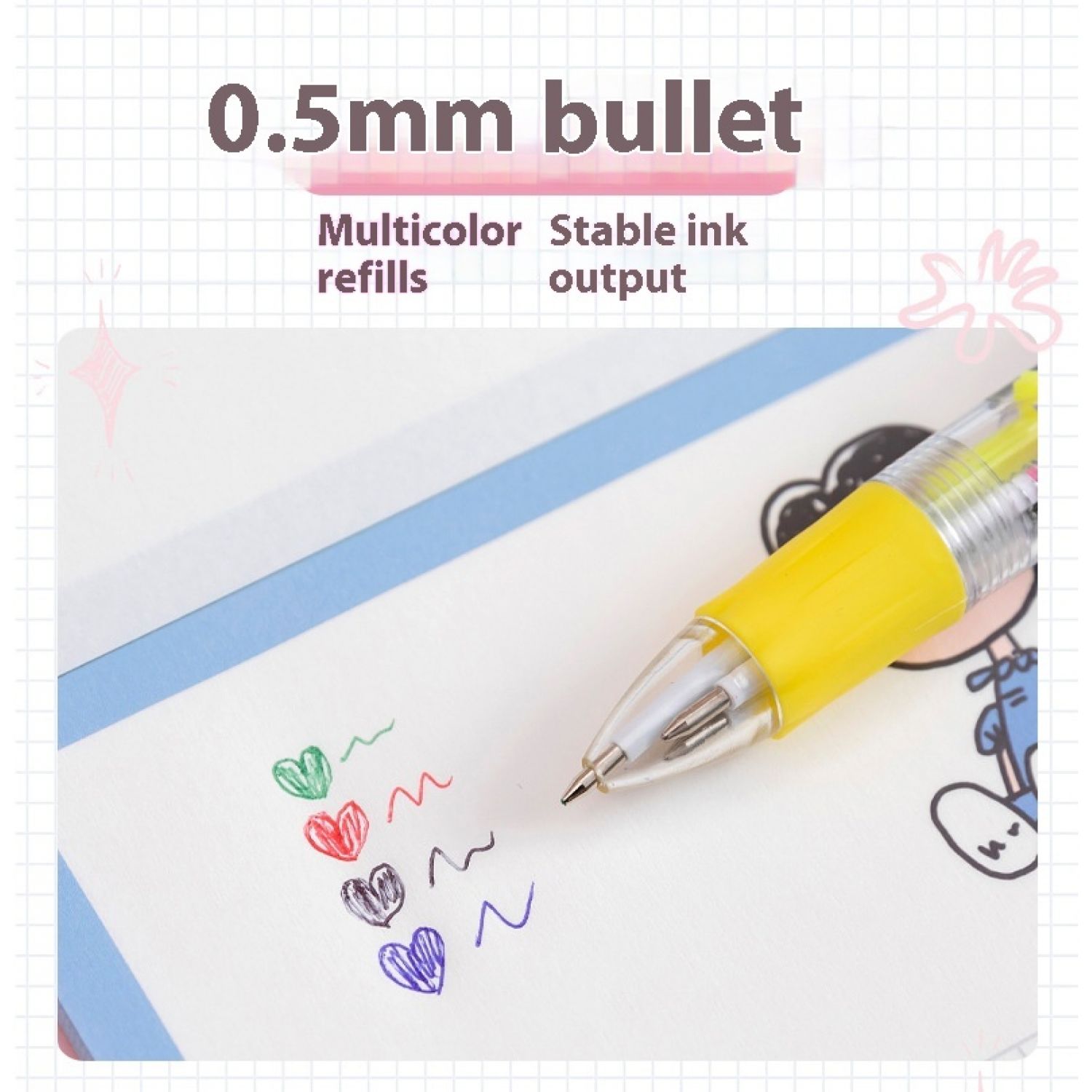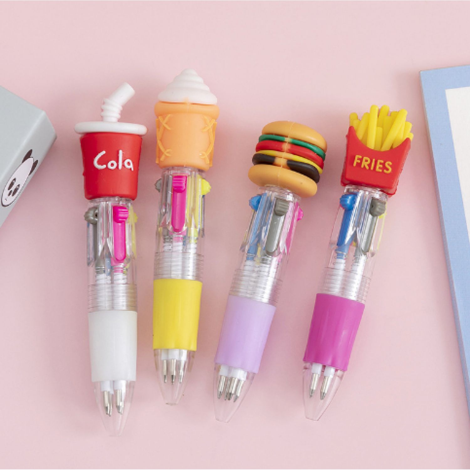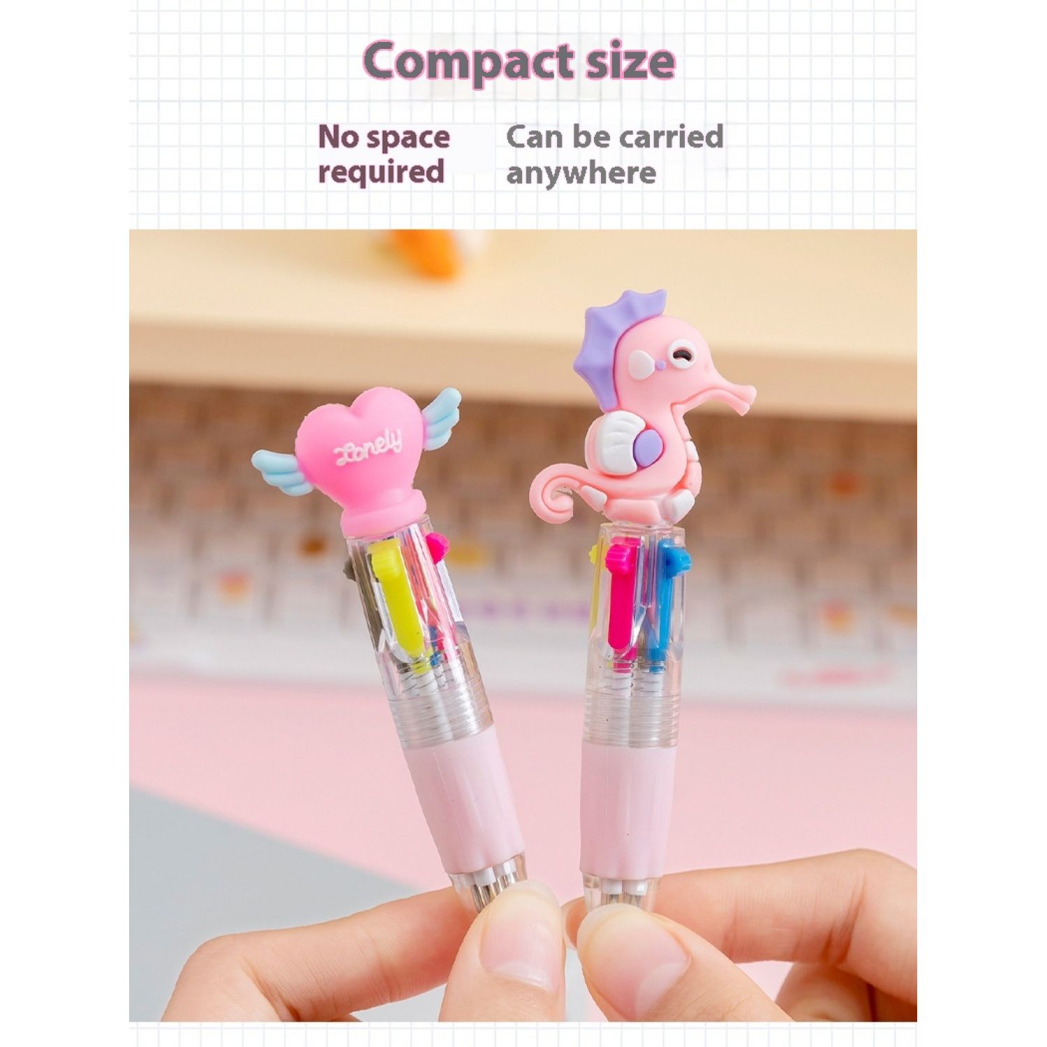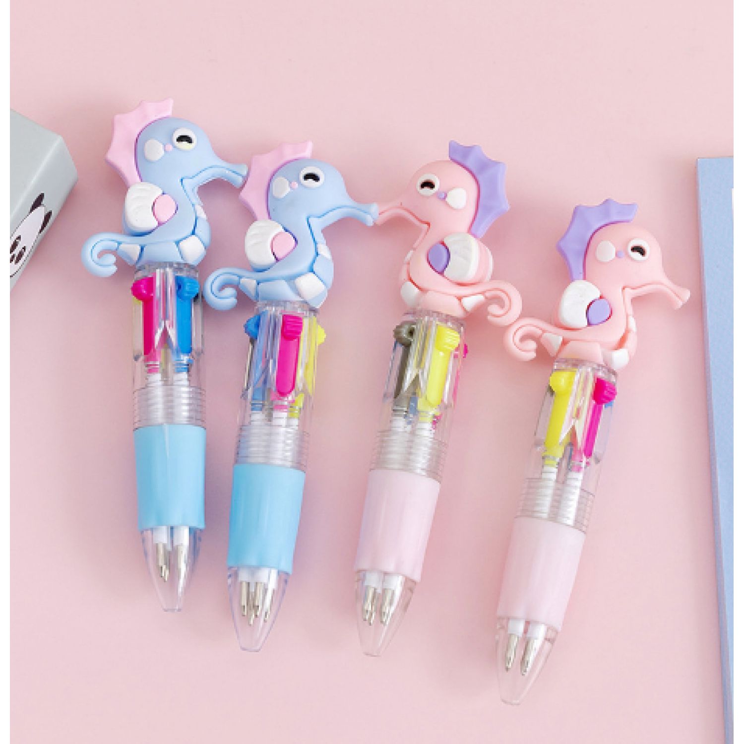 Pen refill colors: random fruit and vegetable baby four color pens, random seahorse four color pens, random heart wing four color pens, random cactus four color pens, random fast food four color pens