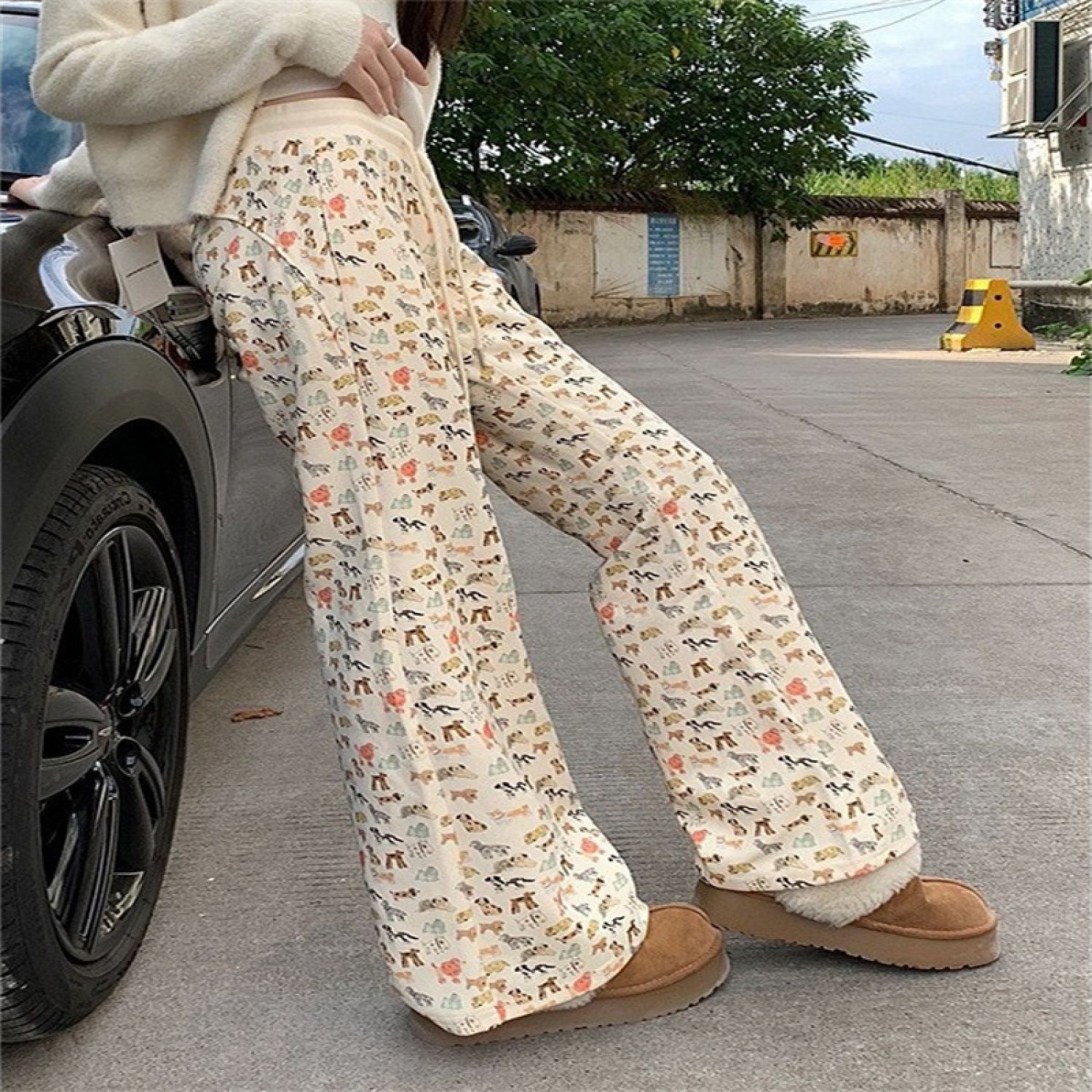 Drooping Straight Loose Mop Pants Apricot M