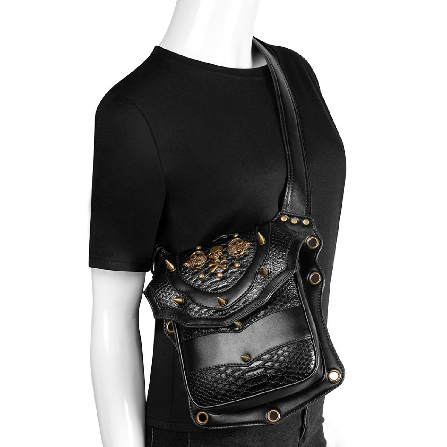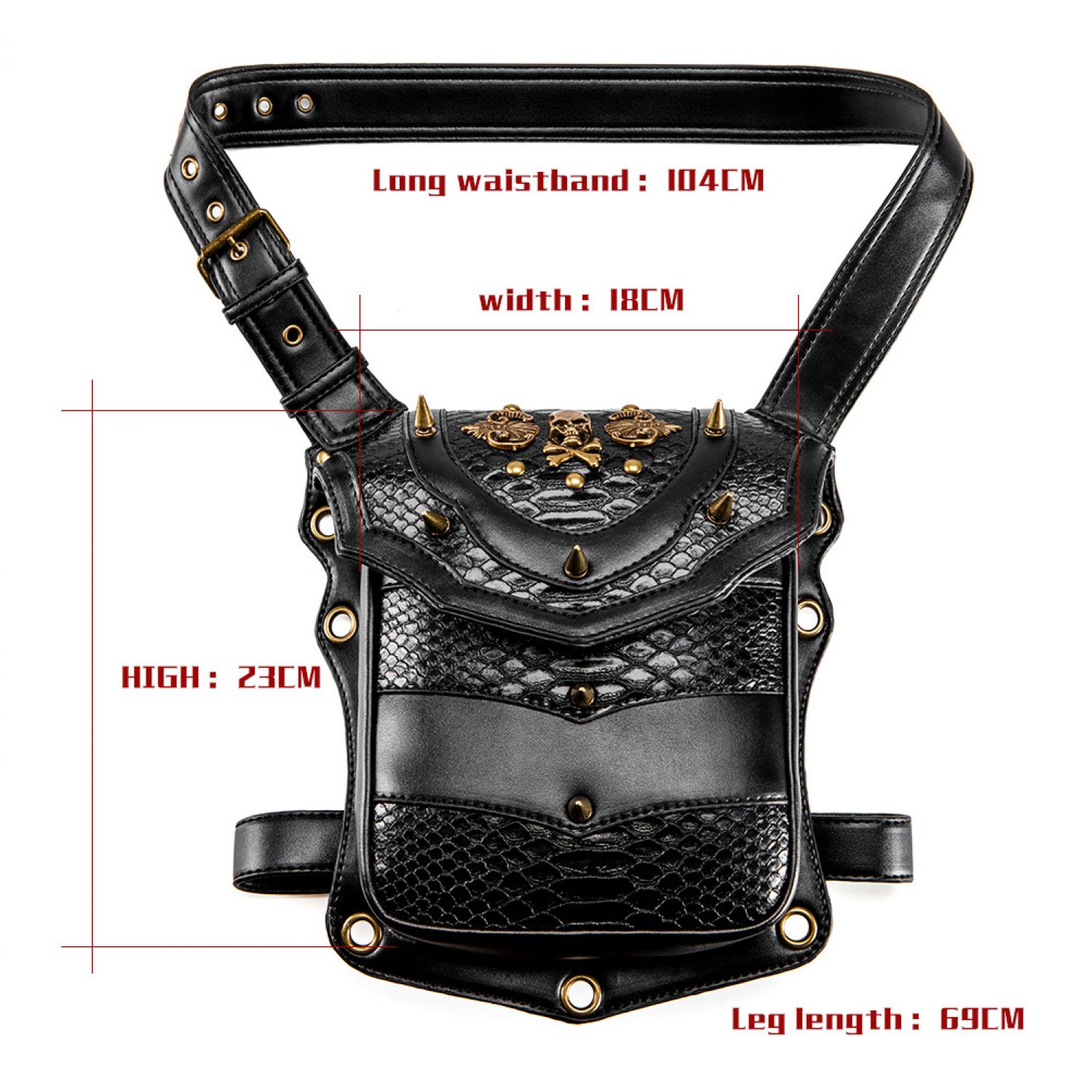 Euro American Punk Skull locomotive neutral outdoor waist bag Black