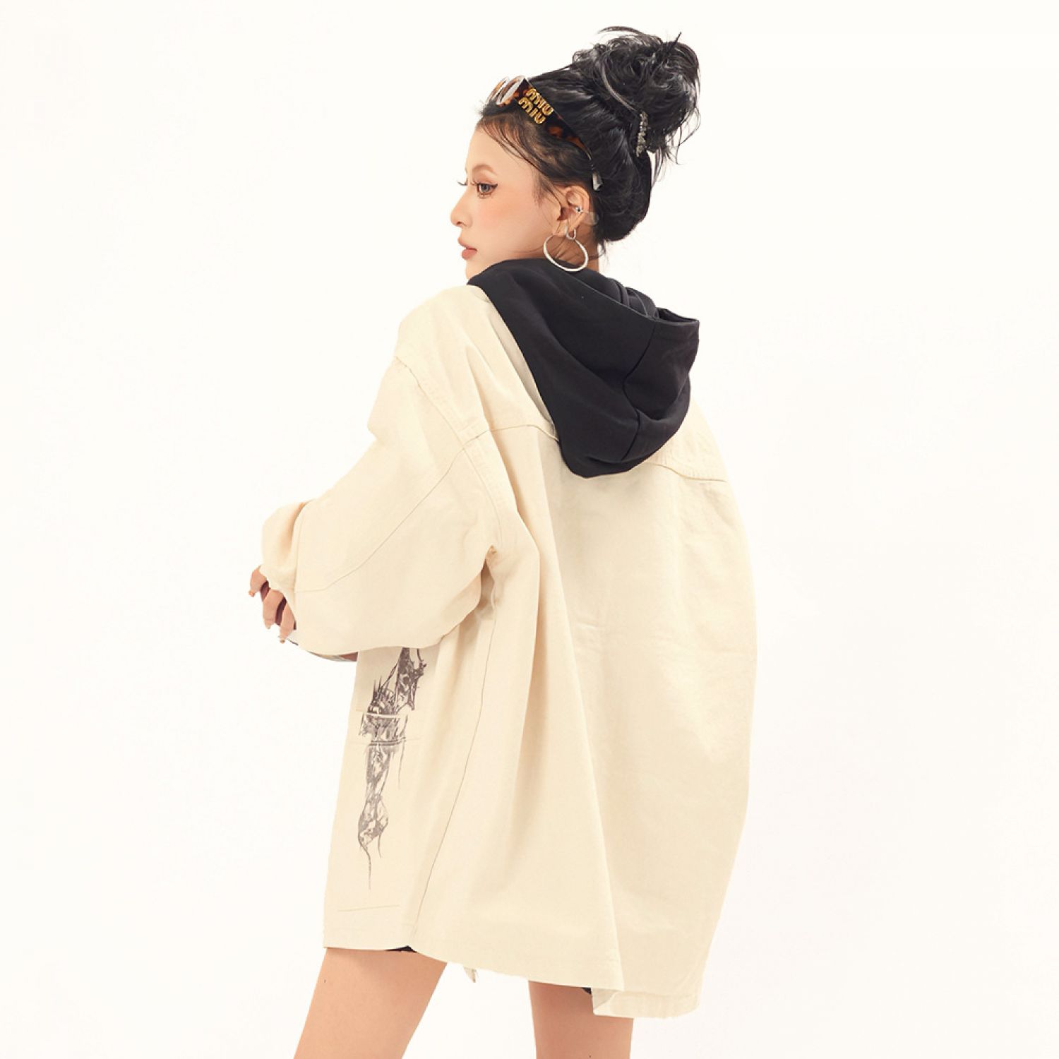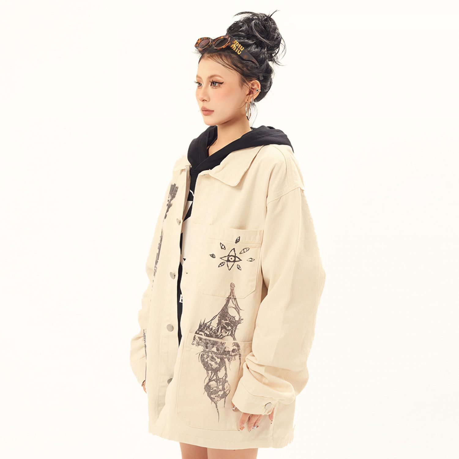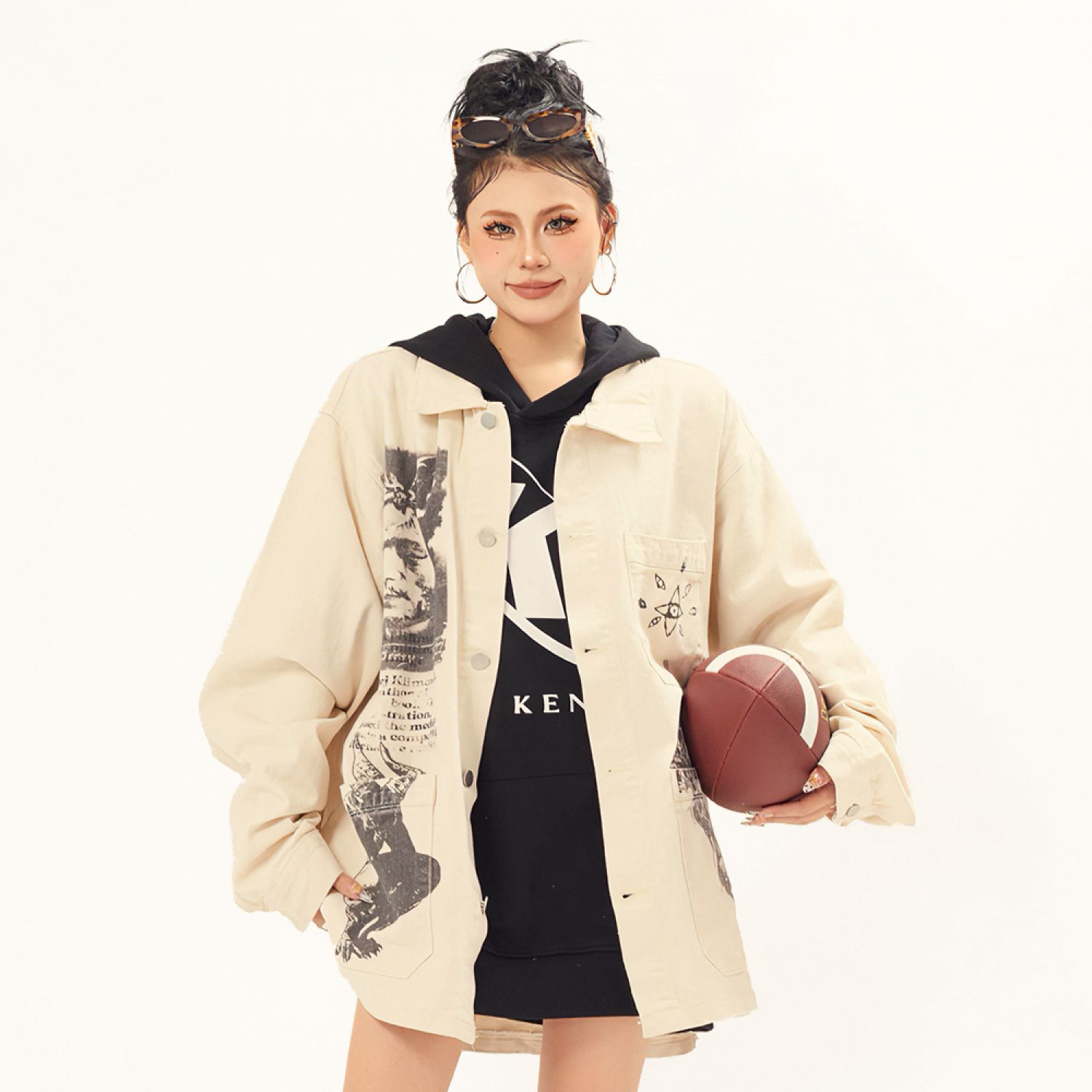 Fashion Graffiti Denim Coat For Men And Women Apricot M