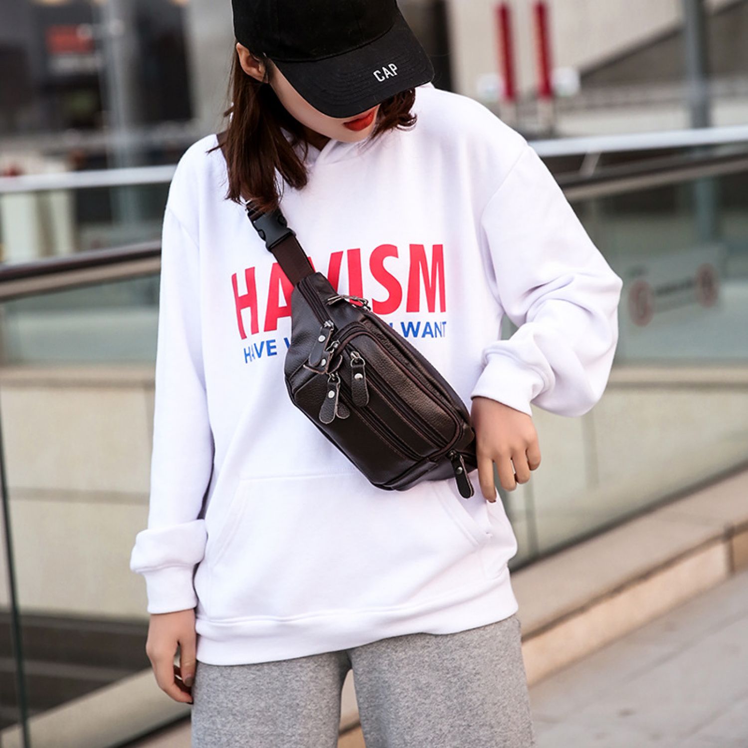 Fashion New Men's Leather Belt Bag Messenger Bag Black