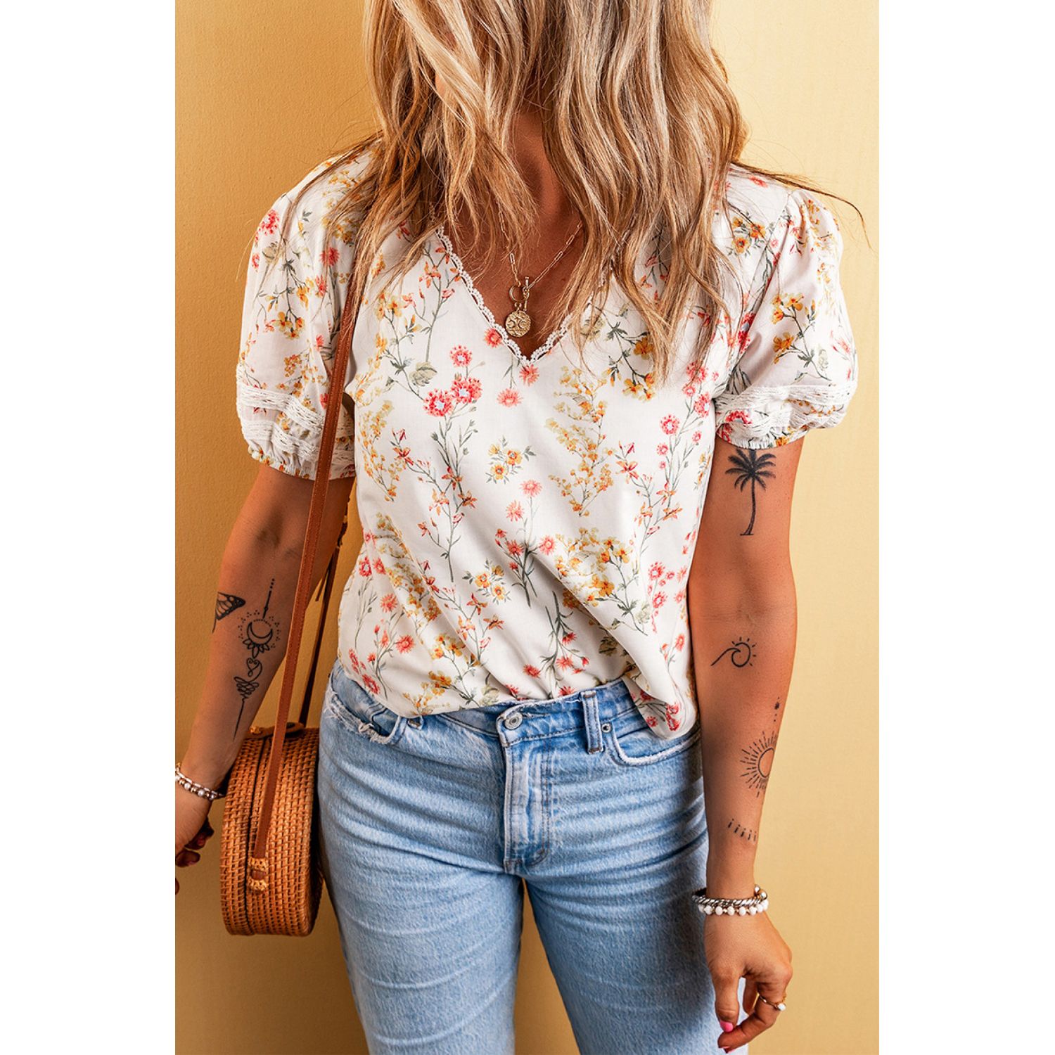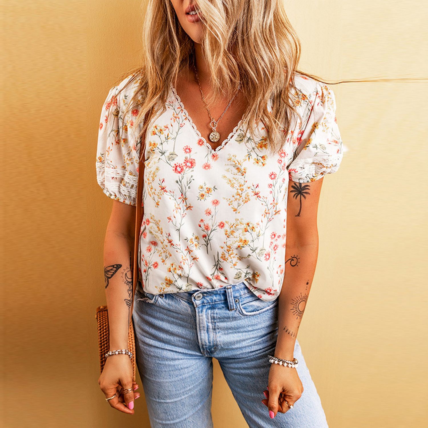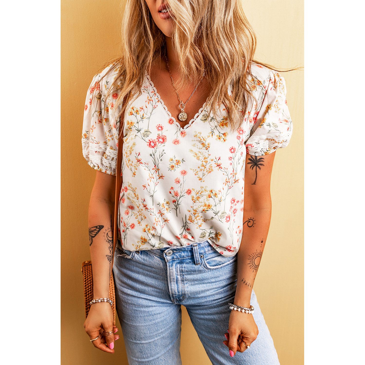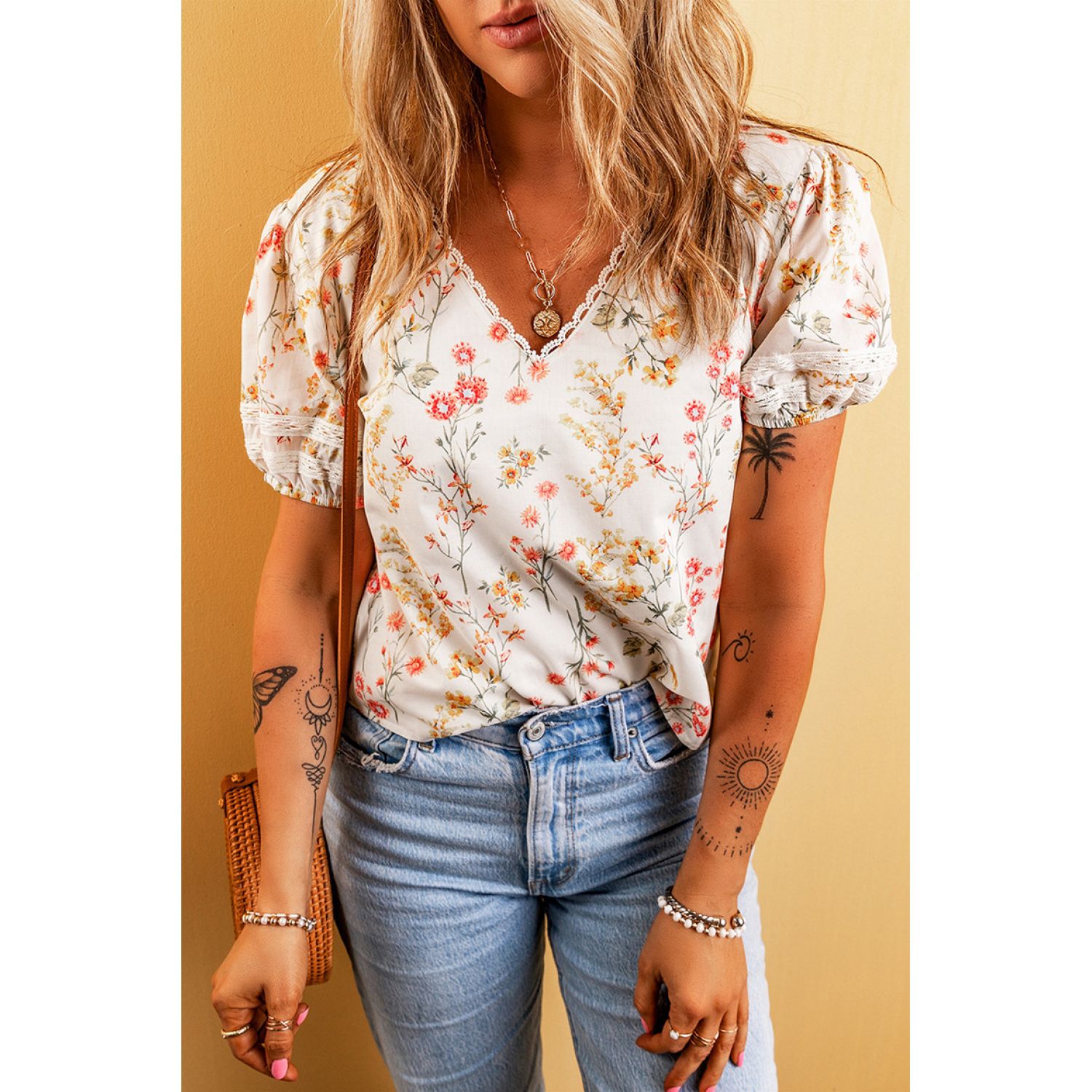 Fashion Personalized Floral T-shirt For Women LC25127473 Apricot S