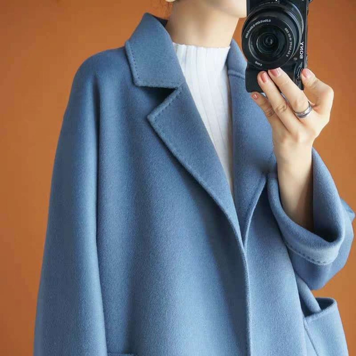 Fashionable loose and thin woolen overcoat Khaki XXL