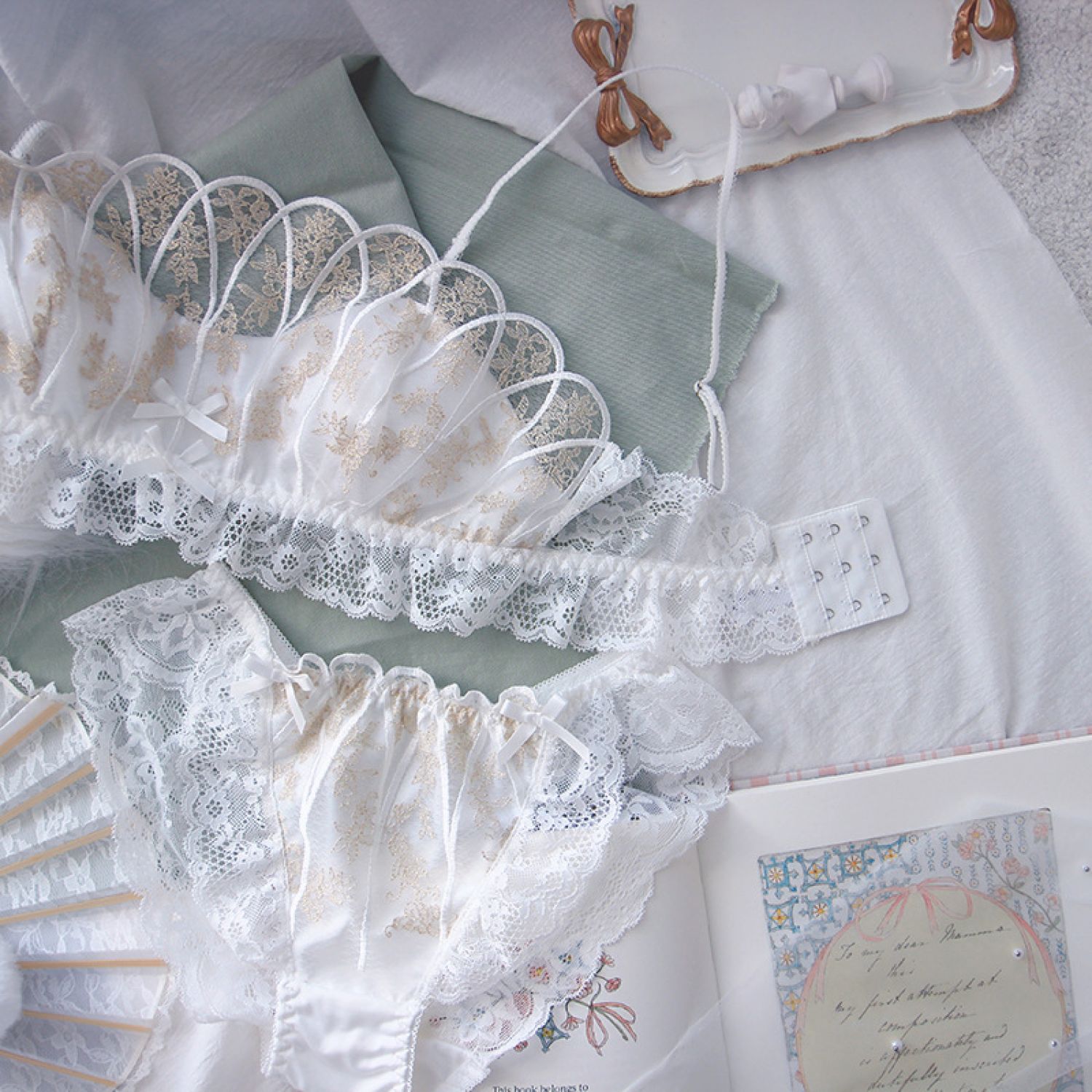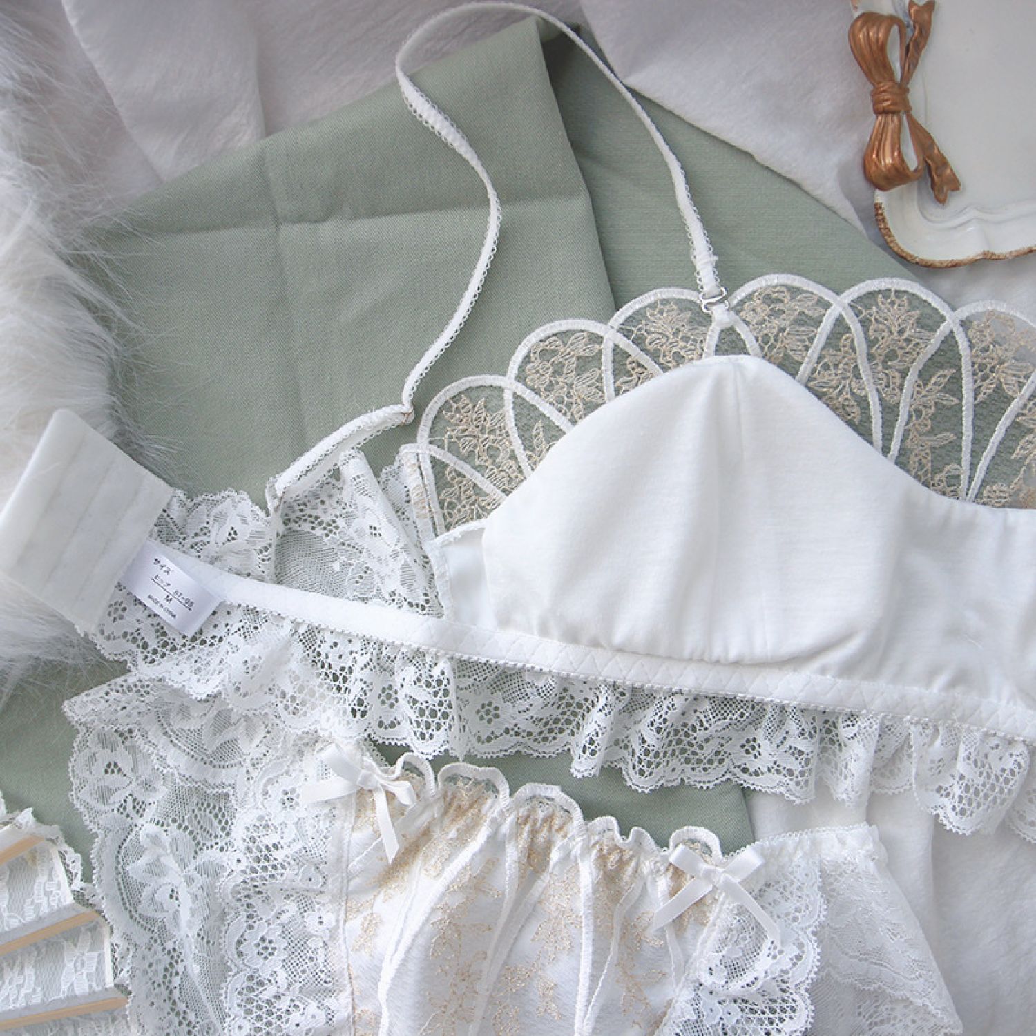 French Lace Underwear Retro Wireless Bra Set White L