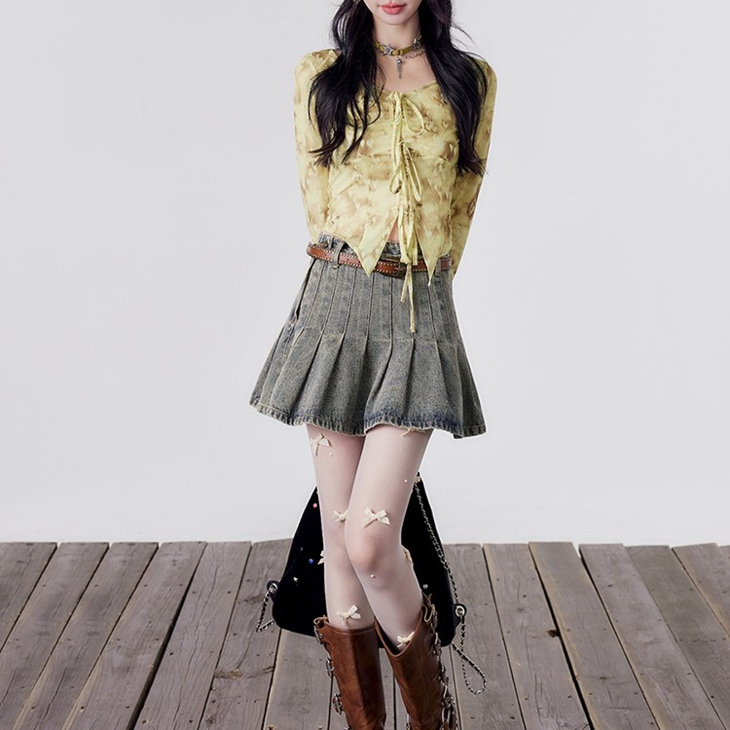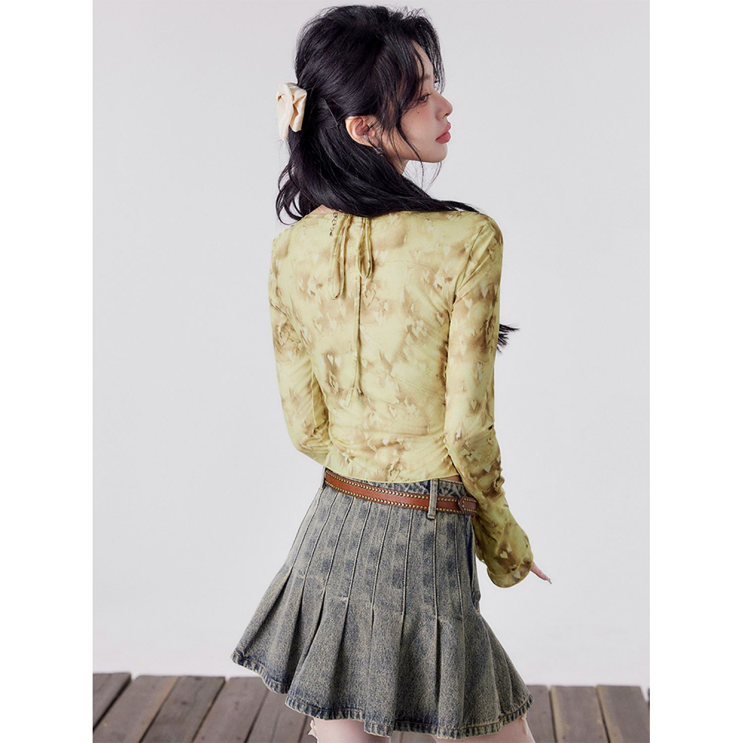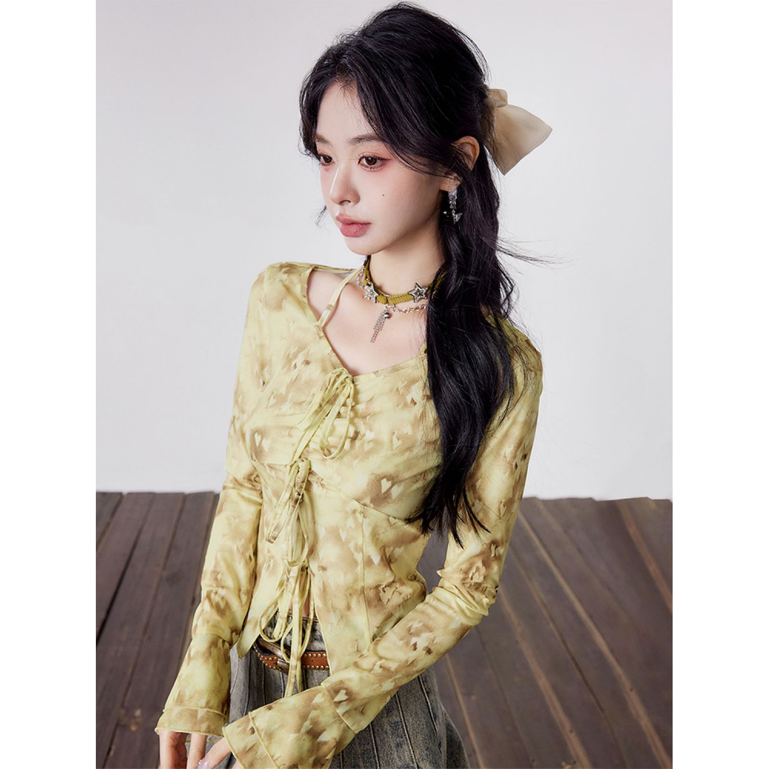 Full Printed Bell Sleeve Light Hot Girl Shirt Lemon Candy Yellow S