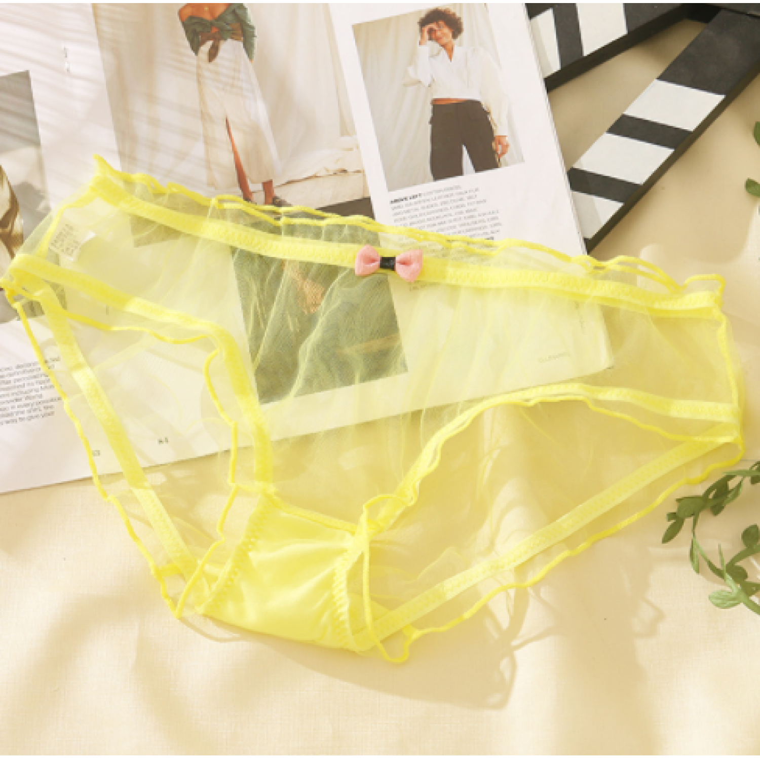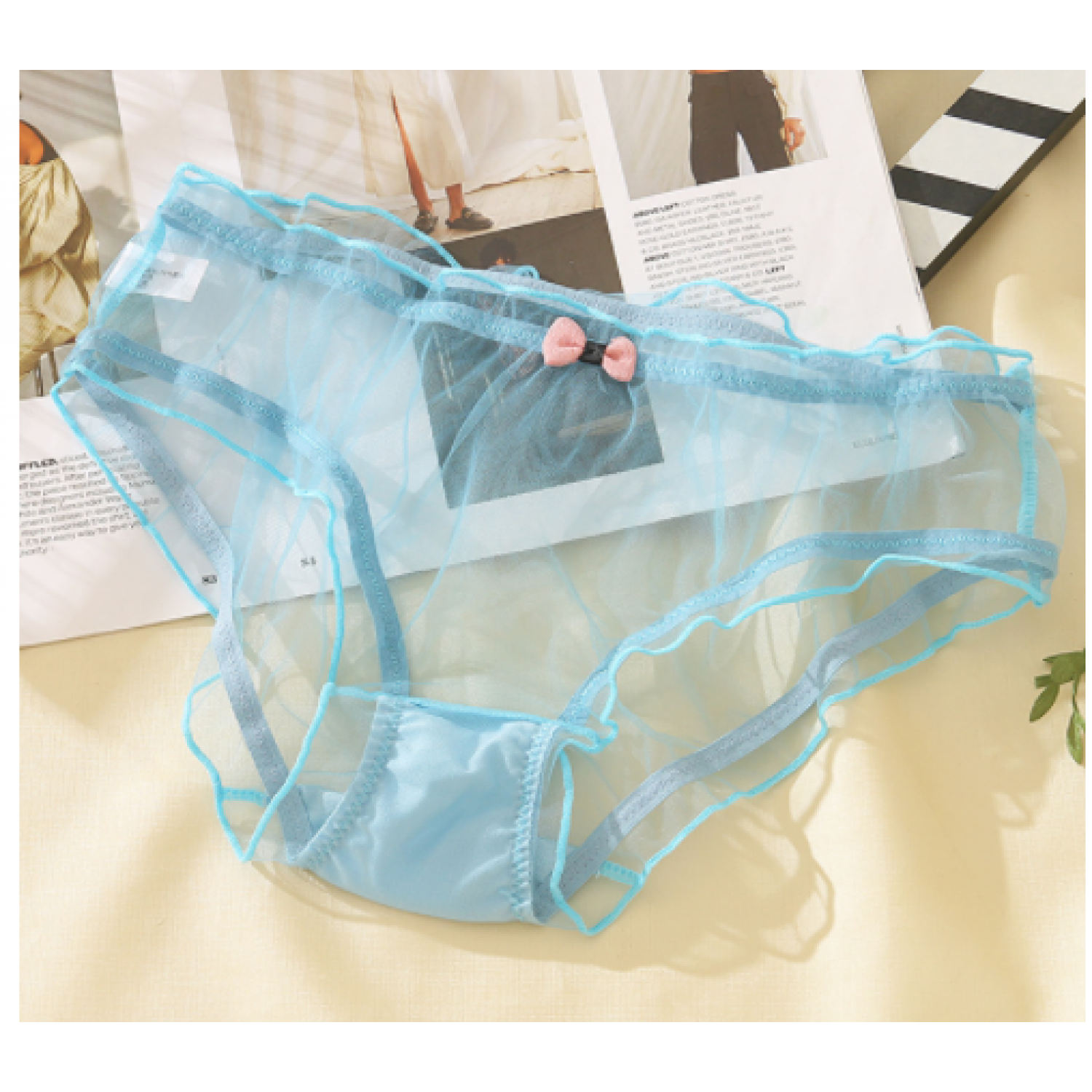 Full Transparent Bag Hip Low Waist Solid Color Mesh Girl Underwear White One size