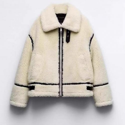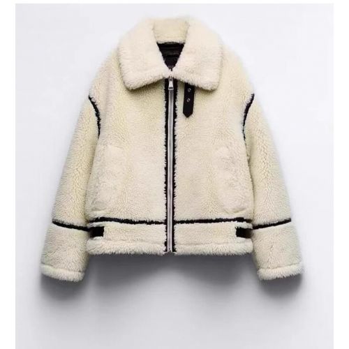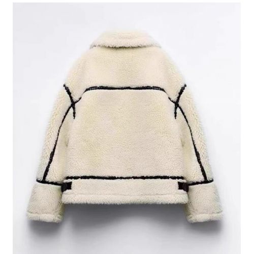 Fur Integrated Fashion Casual Lambswool Warm Coat 6944 White XS